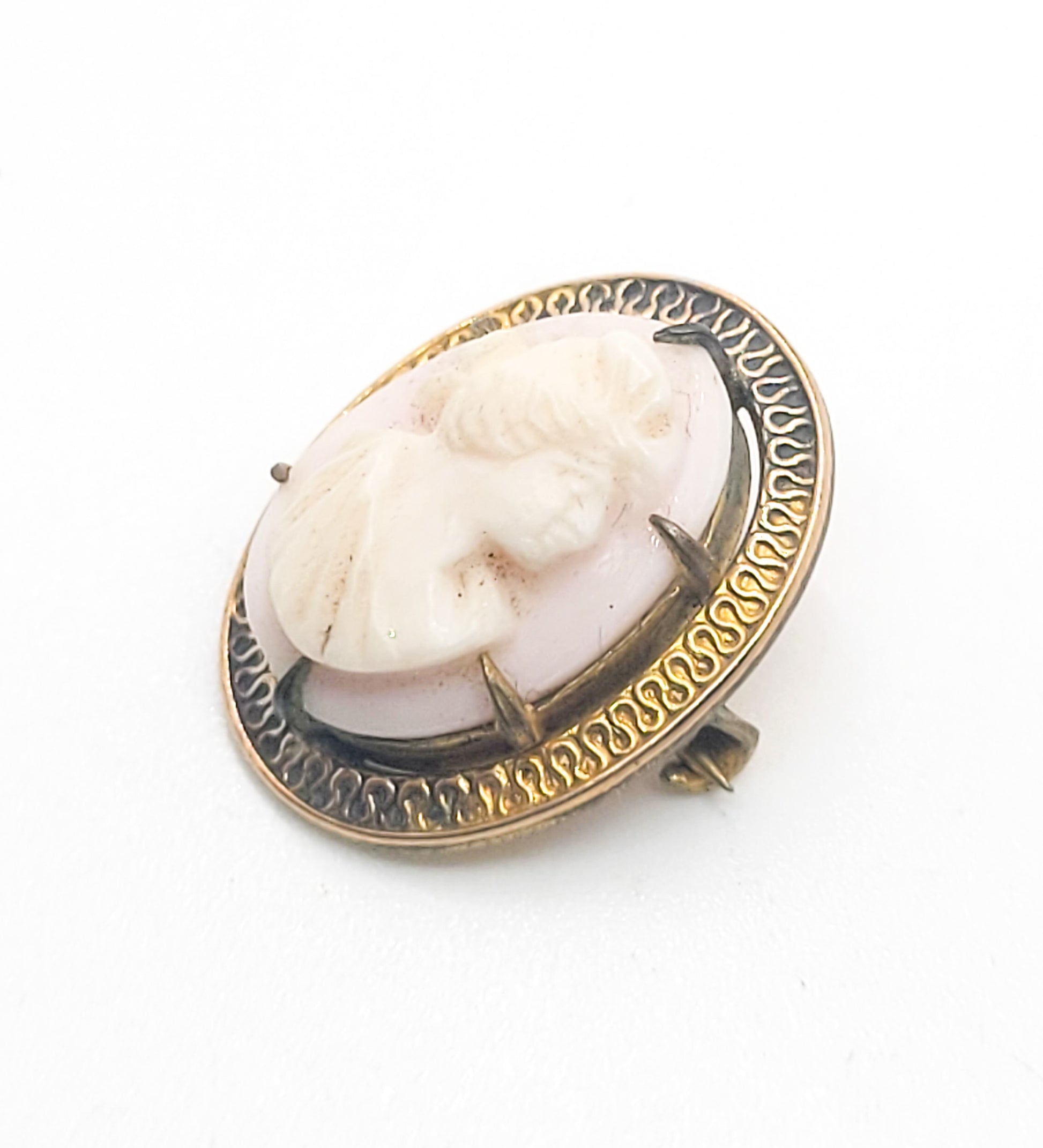 John H Peckham JHP antique pink glass small gold filled cameo brooch