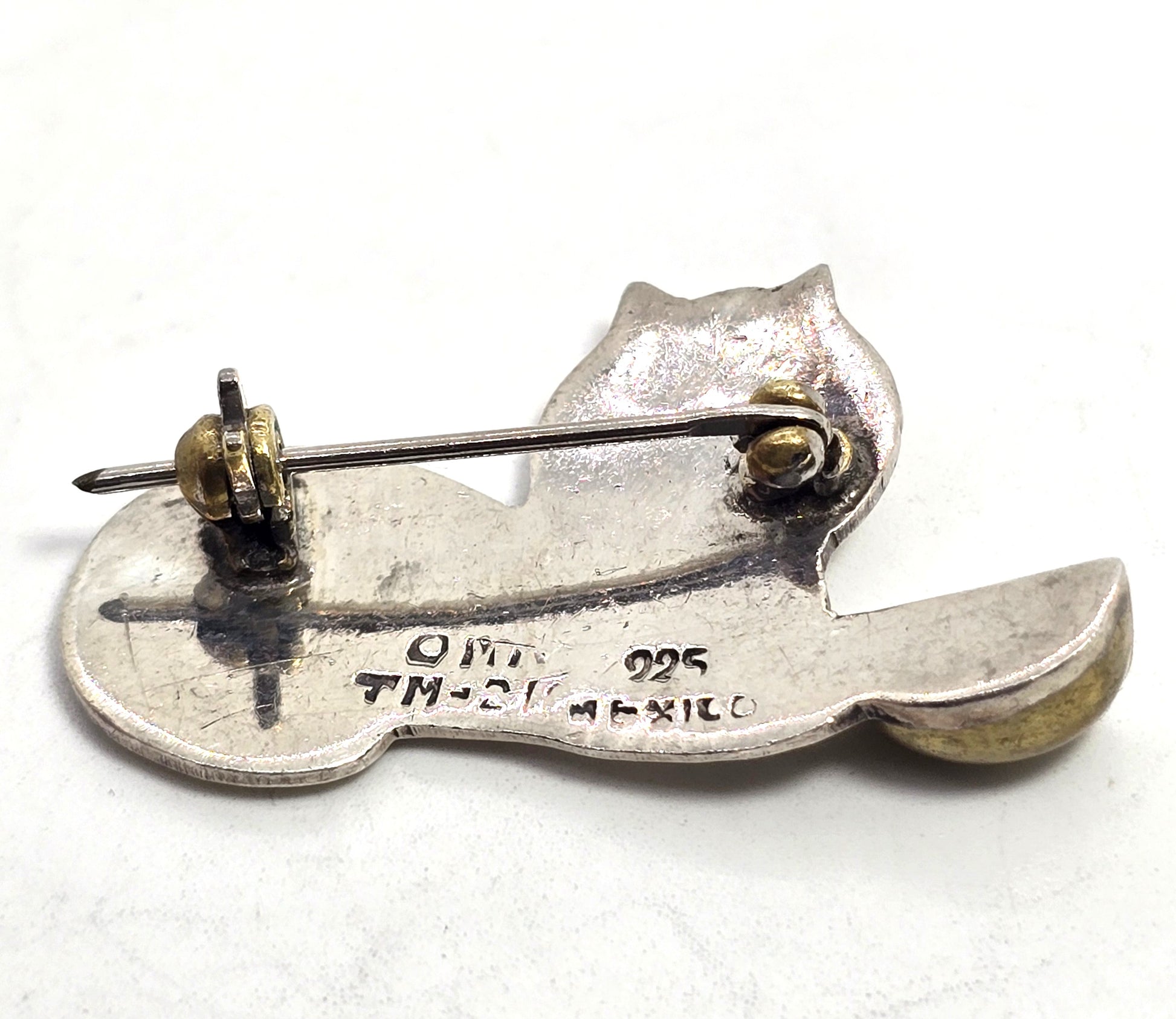 Taxco Mexico Kitty Cat and bow vintage signed sterling silver brooch TM-211