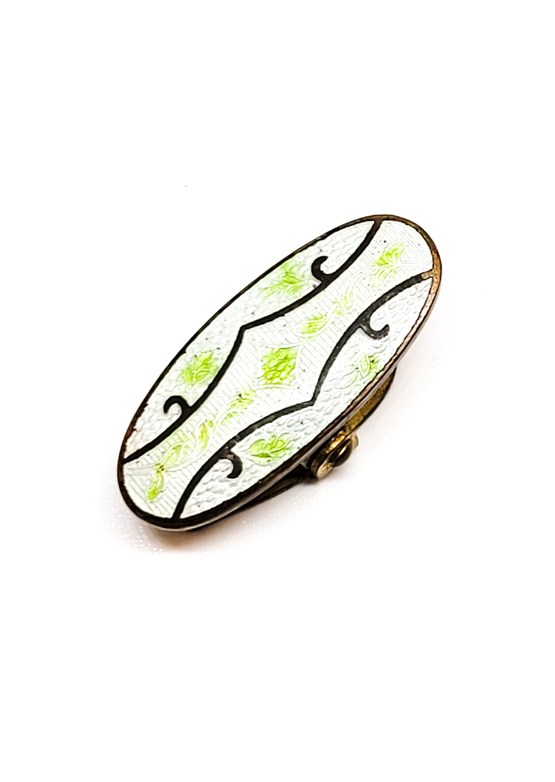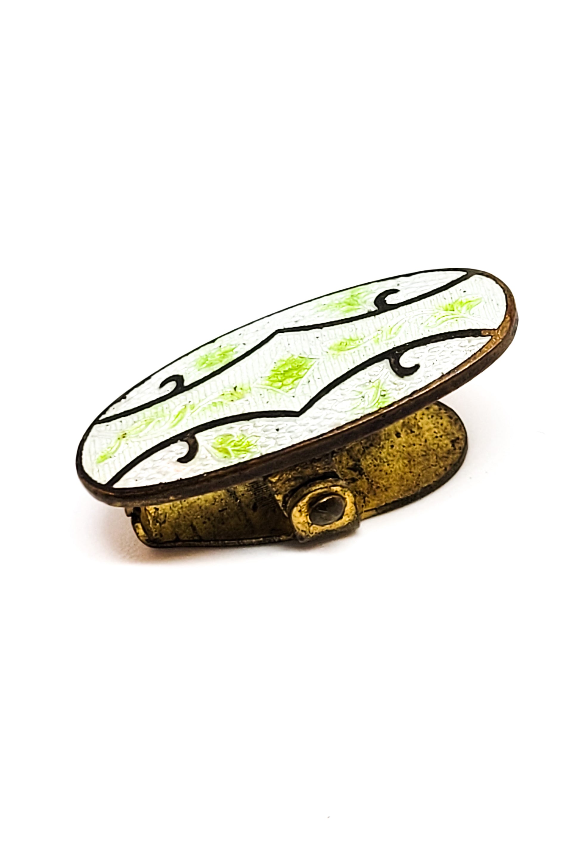 King Edwardian antique enamel guilloche Green white tie clip lingerie clip