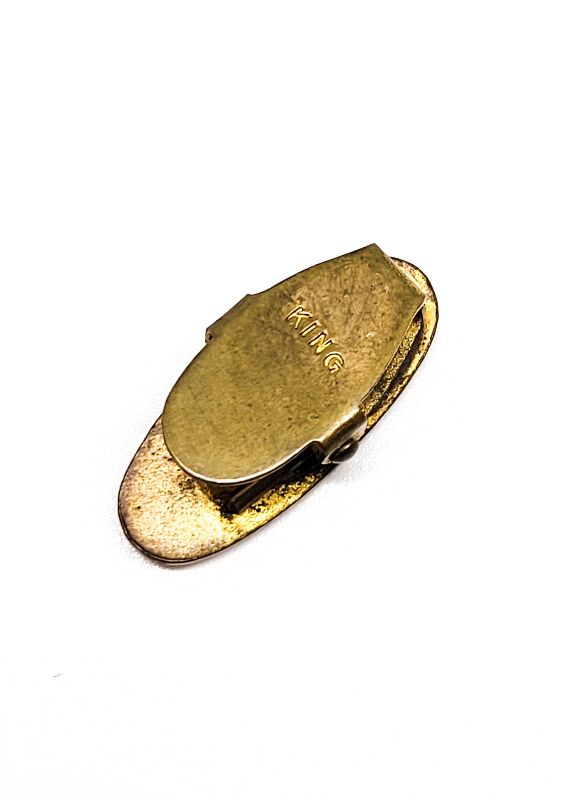 King Edwardian antique enamel guilloche Green and white tie clip short bar. Beautiful enamel guilloche work on this signed King tie clip. Enamel is in great condition with little signs of wear. Brass fastening. Signed King on the back