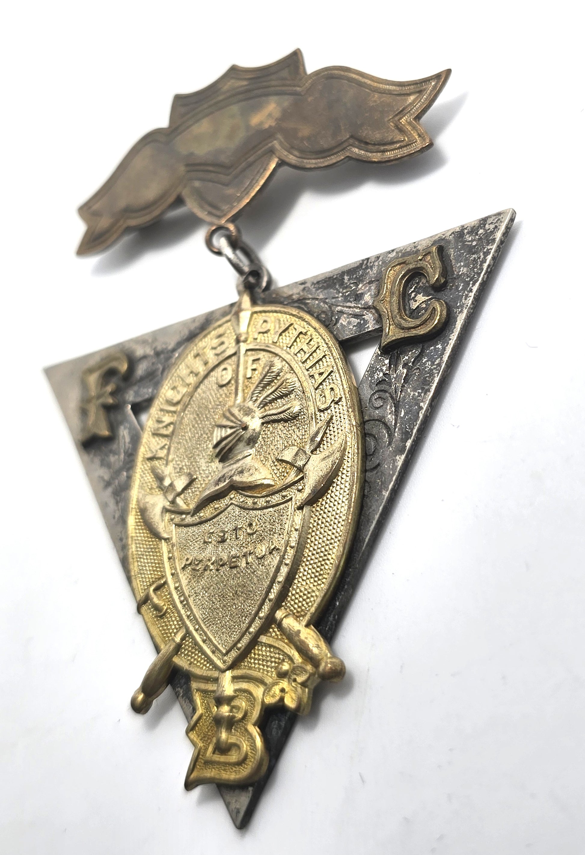 Knights Of Pythias F.C.B. Silver Pin Medal Davies SC 1874 triangle