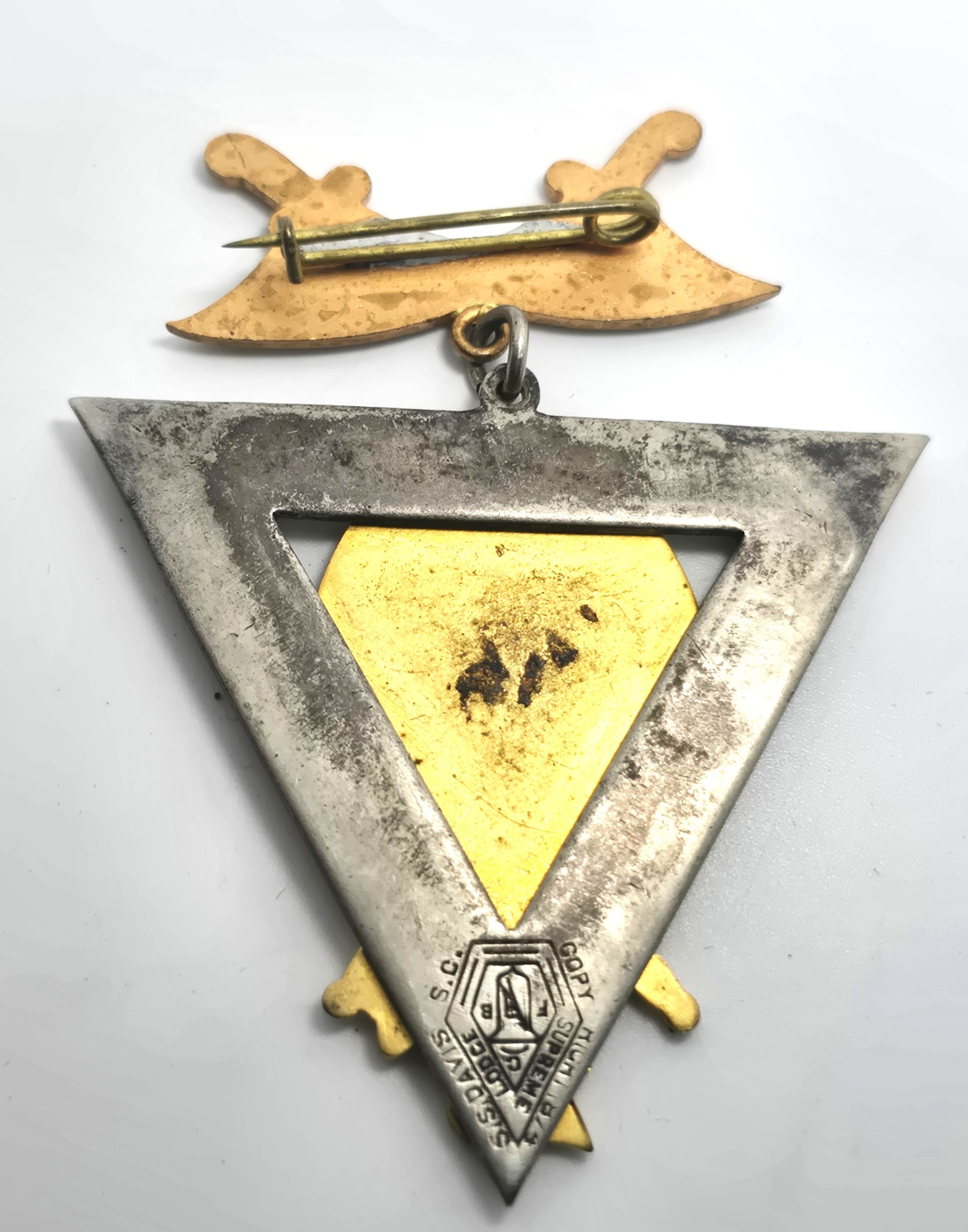 Knights Of Pythias F.C.B. Silver Pin Medal Saladin Temple Davies SC 1874 triangle