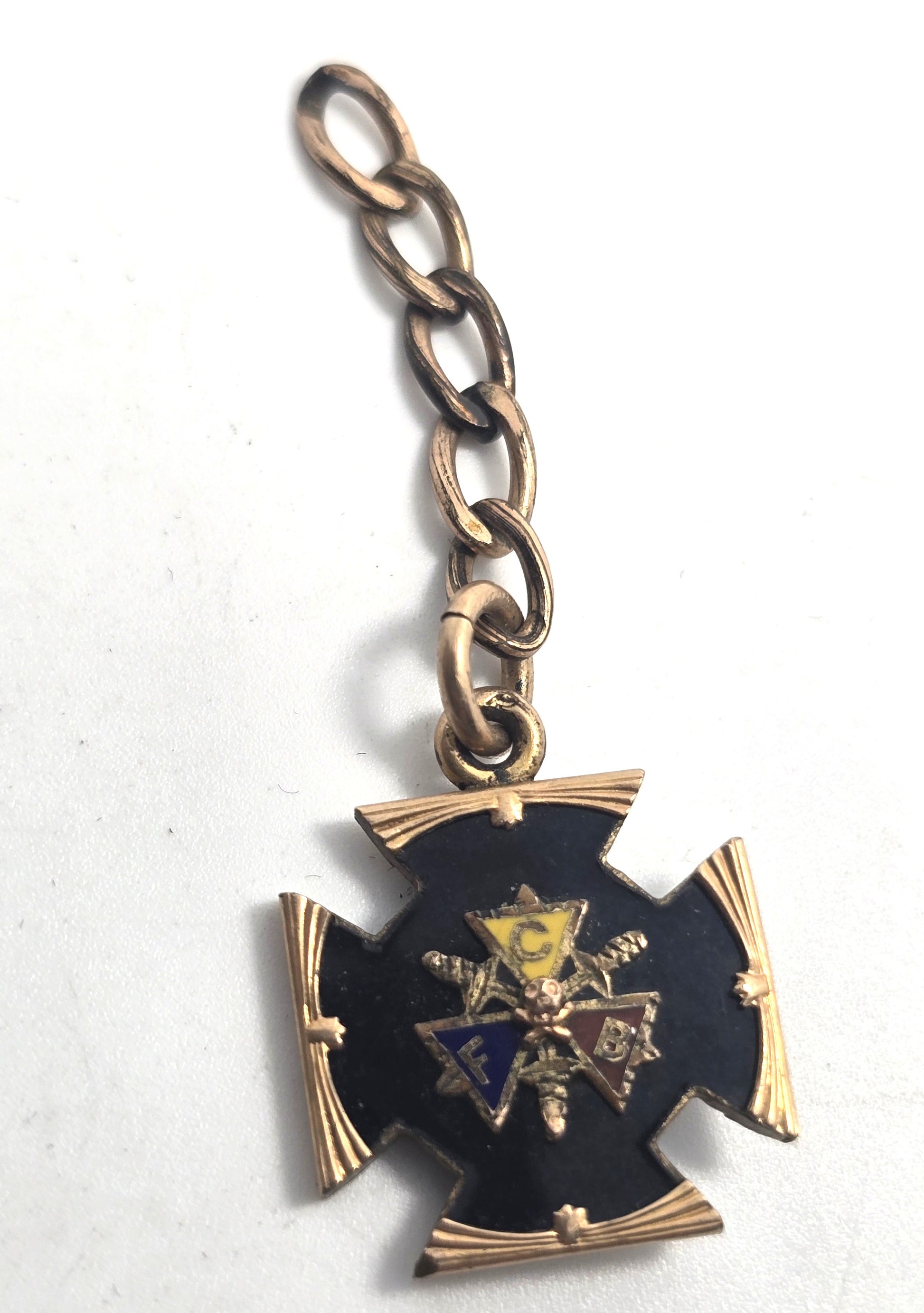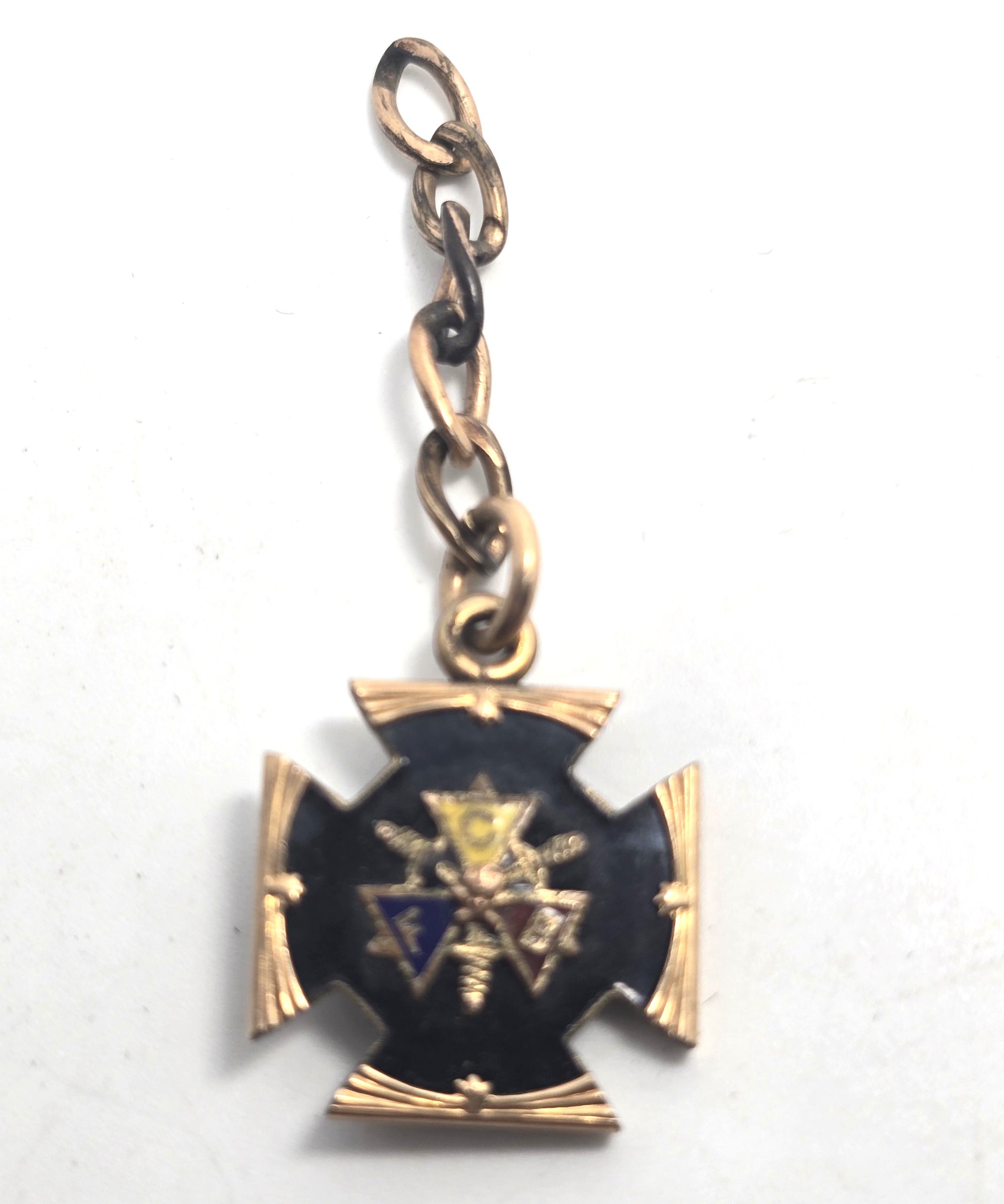 Knights of Pythias Gold filled enamel antique watch fob pendant skull