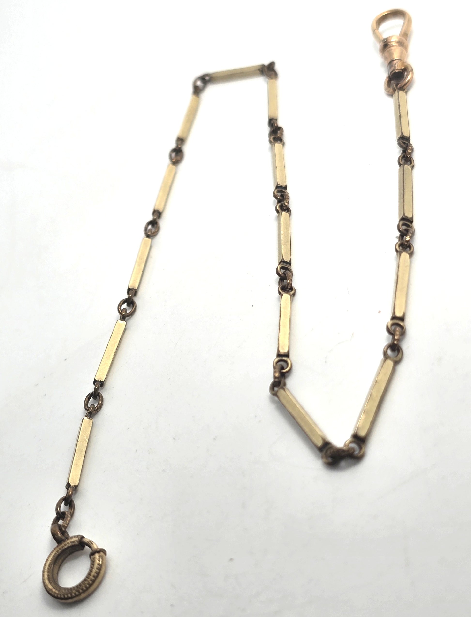 Art Deco antique yellow gold filled embossed bar link 12.5 inch long watch fob chain
