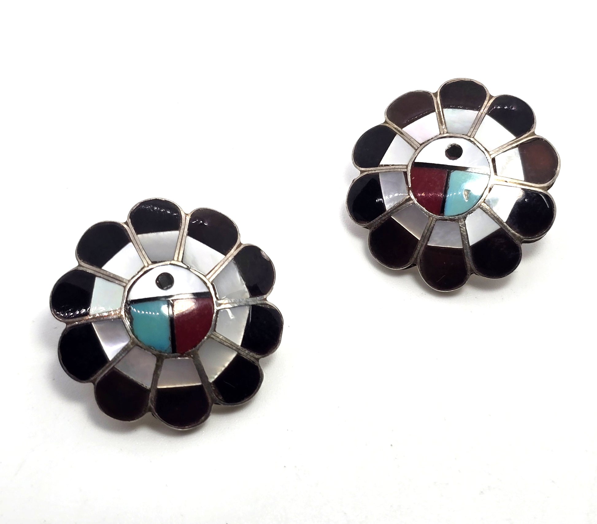 L.L. Dickson Larry and Lorinda Natie American Zuni Sterling sun face earrings