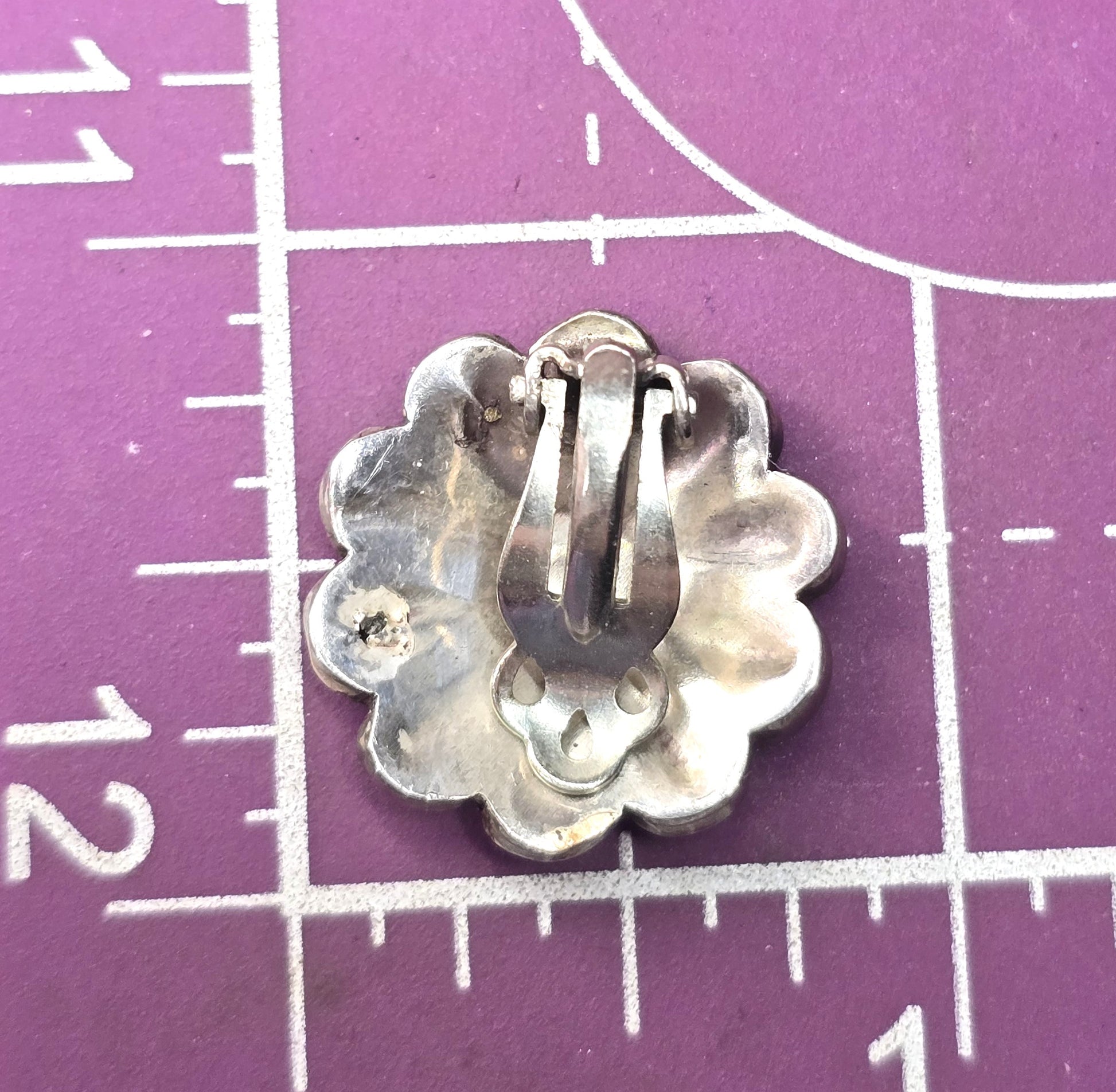 Earrings measure 7/8ths of an inch across.