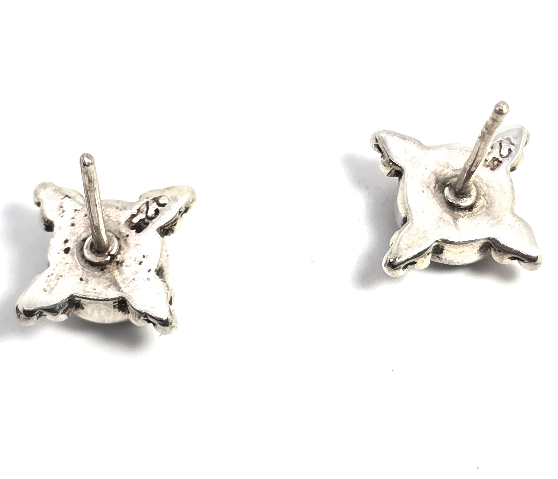 Labradorite shadow Bali tribal sterling silver vintage small earrings. Good vintage condition with little to no signs of normal vintage wear. Great patina. Stamped 925 on the reverse. All post earrings come with new sterling silver butterfly earrings backings.