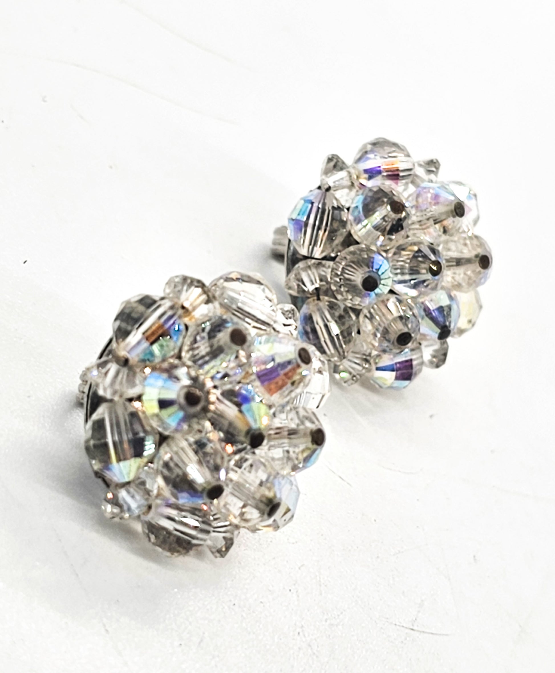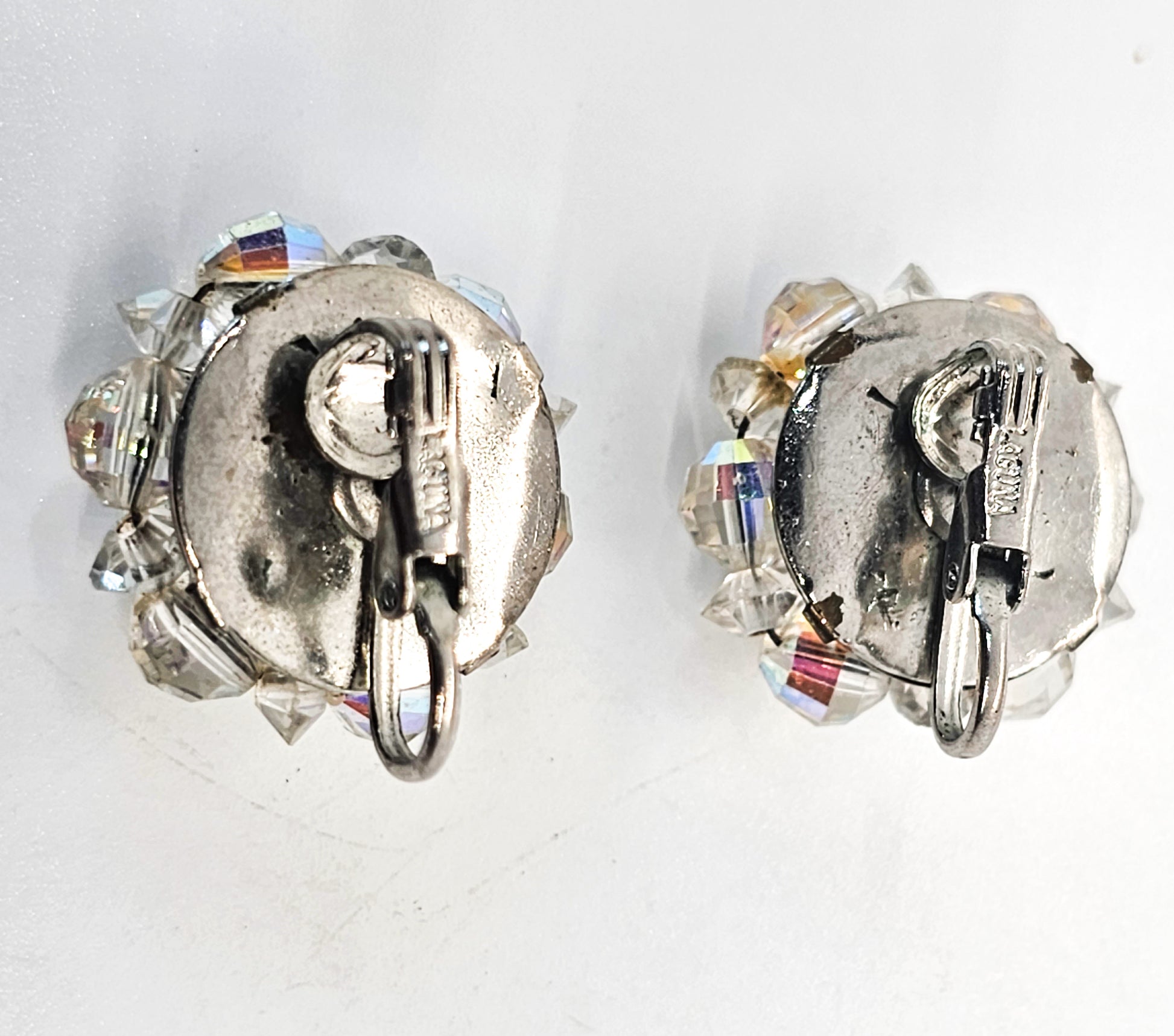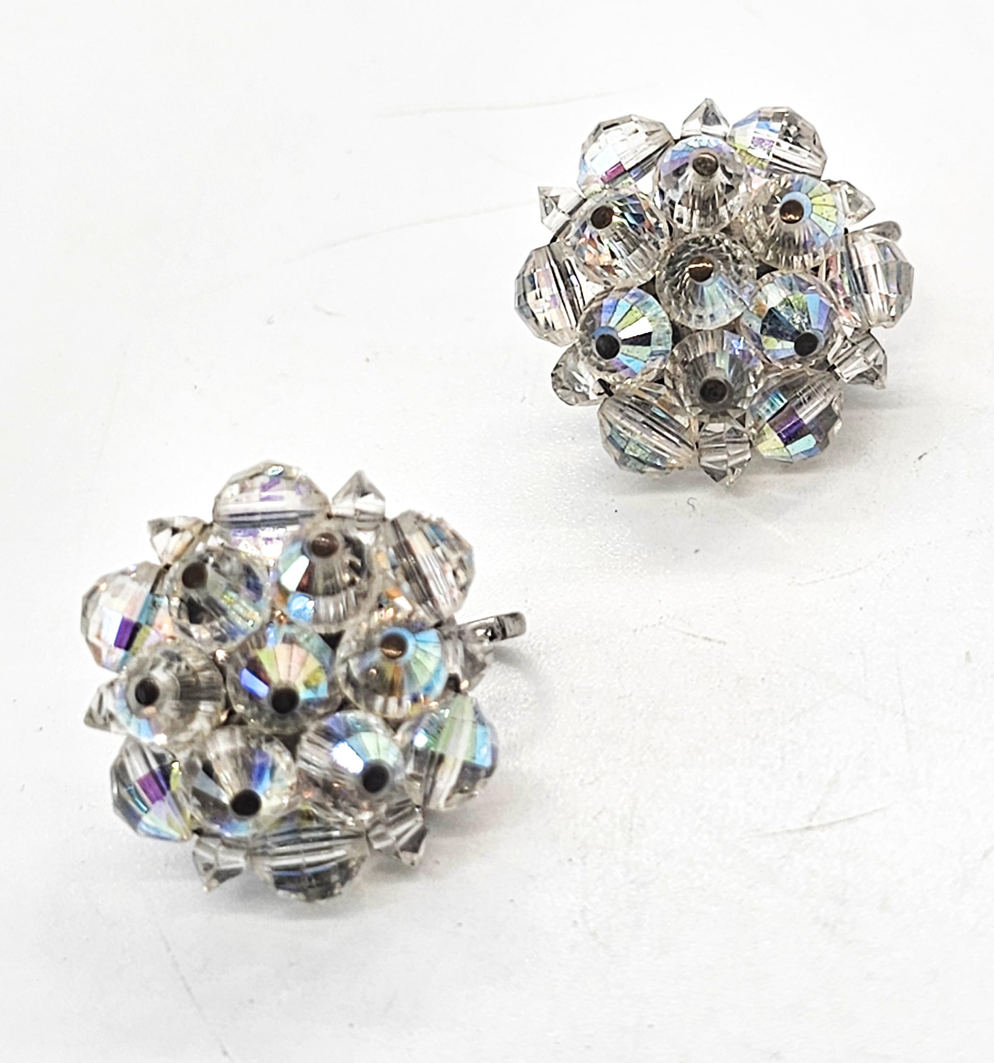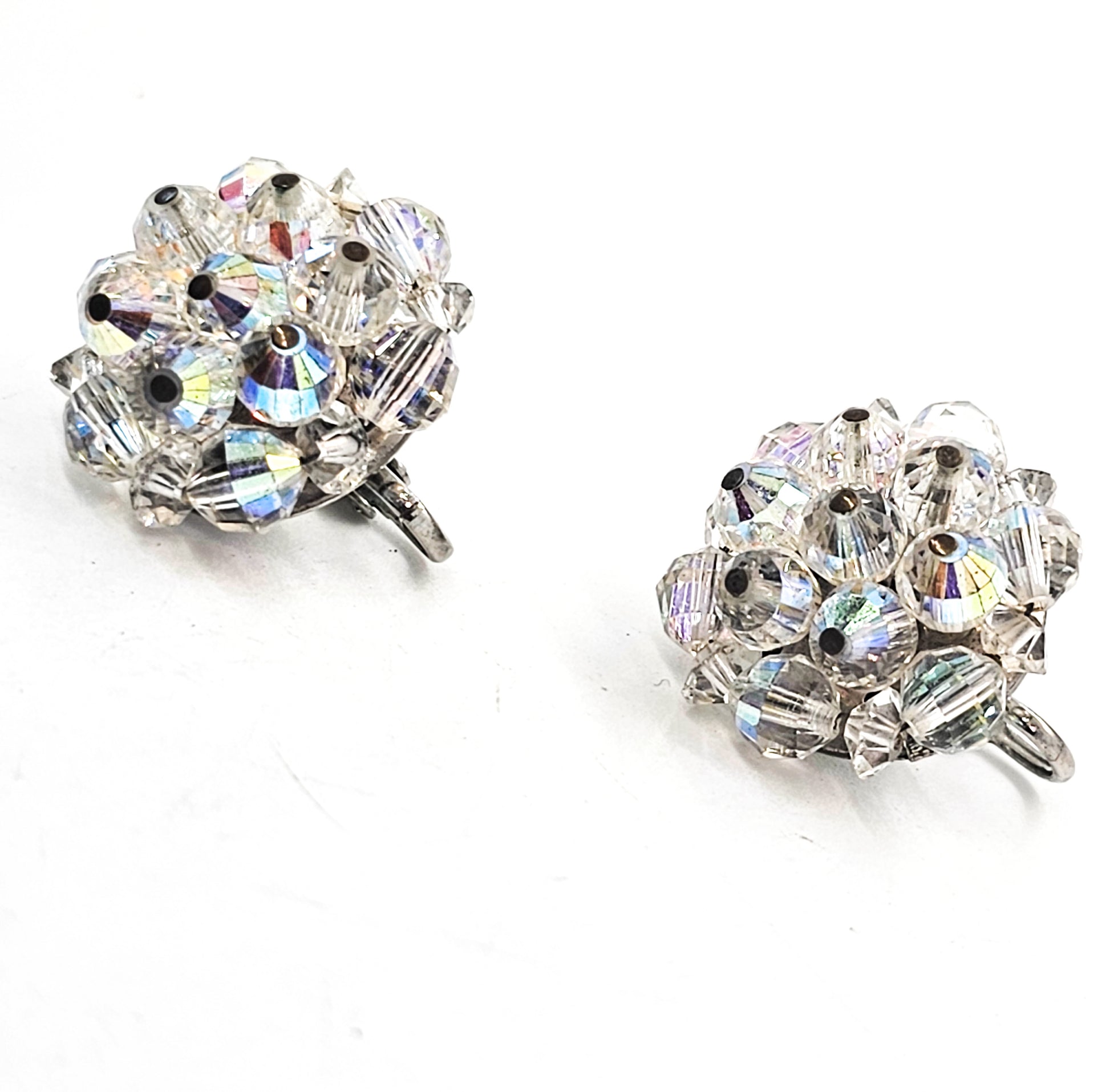 Laguna Austrian crystal Aurora Borealis beaded vintage clip on earrings