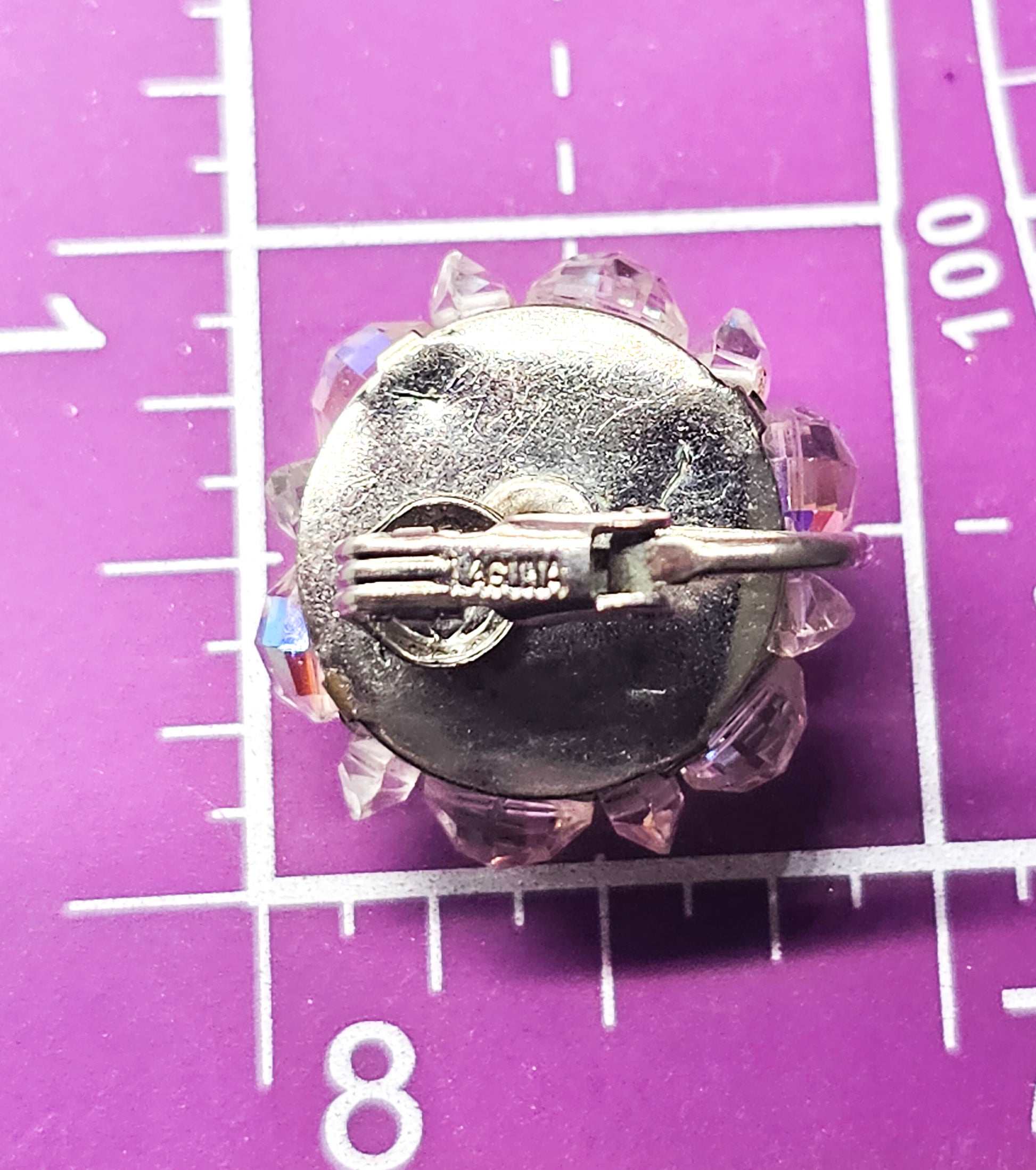 Laguna Austrian crystal Aurora Borealis beaded vintage clip on earrings. Good vintage condition with little to no signs of normal vintage wear. Stamped on the back of the clip Laguna.