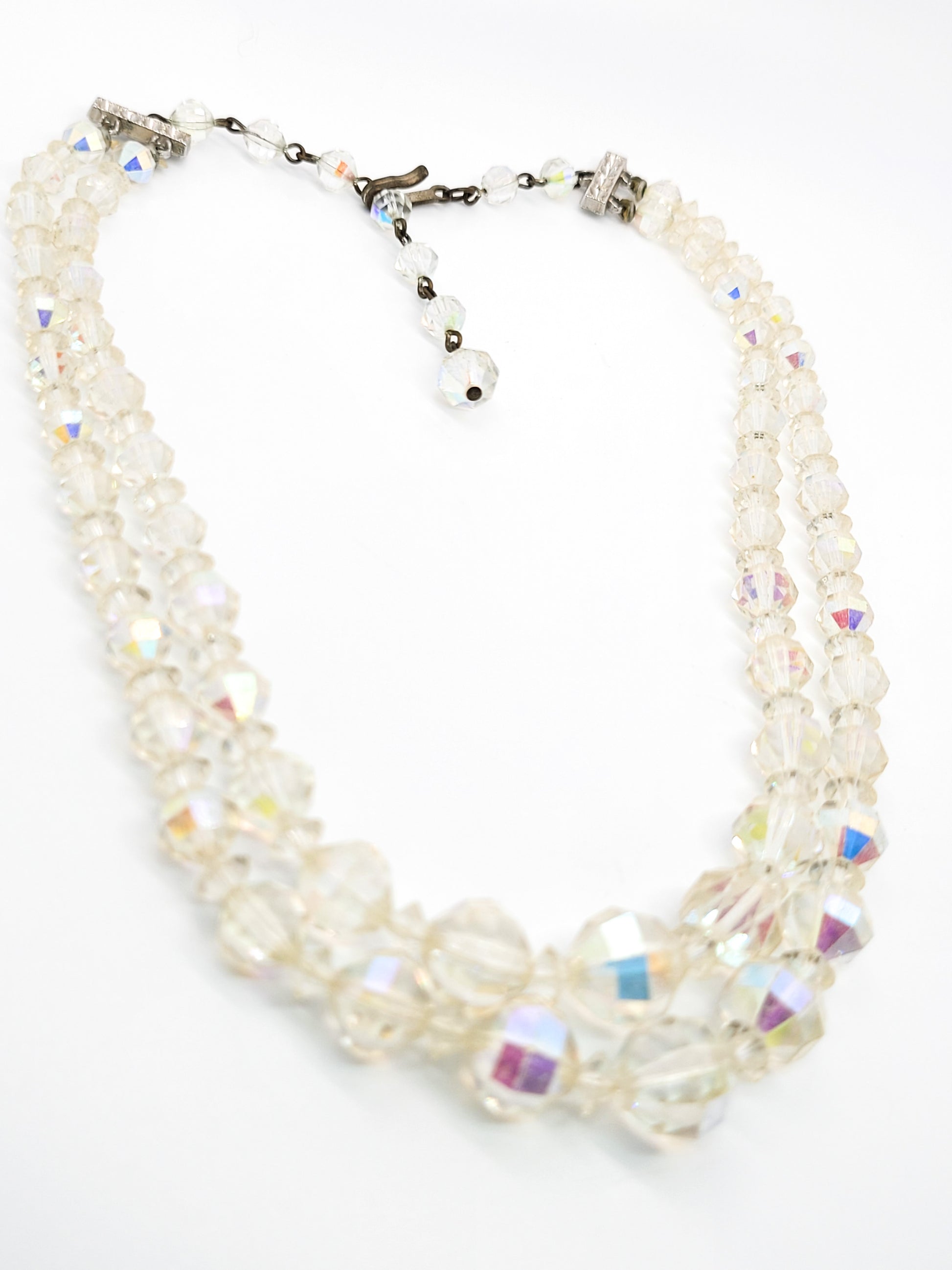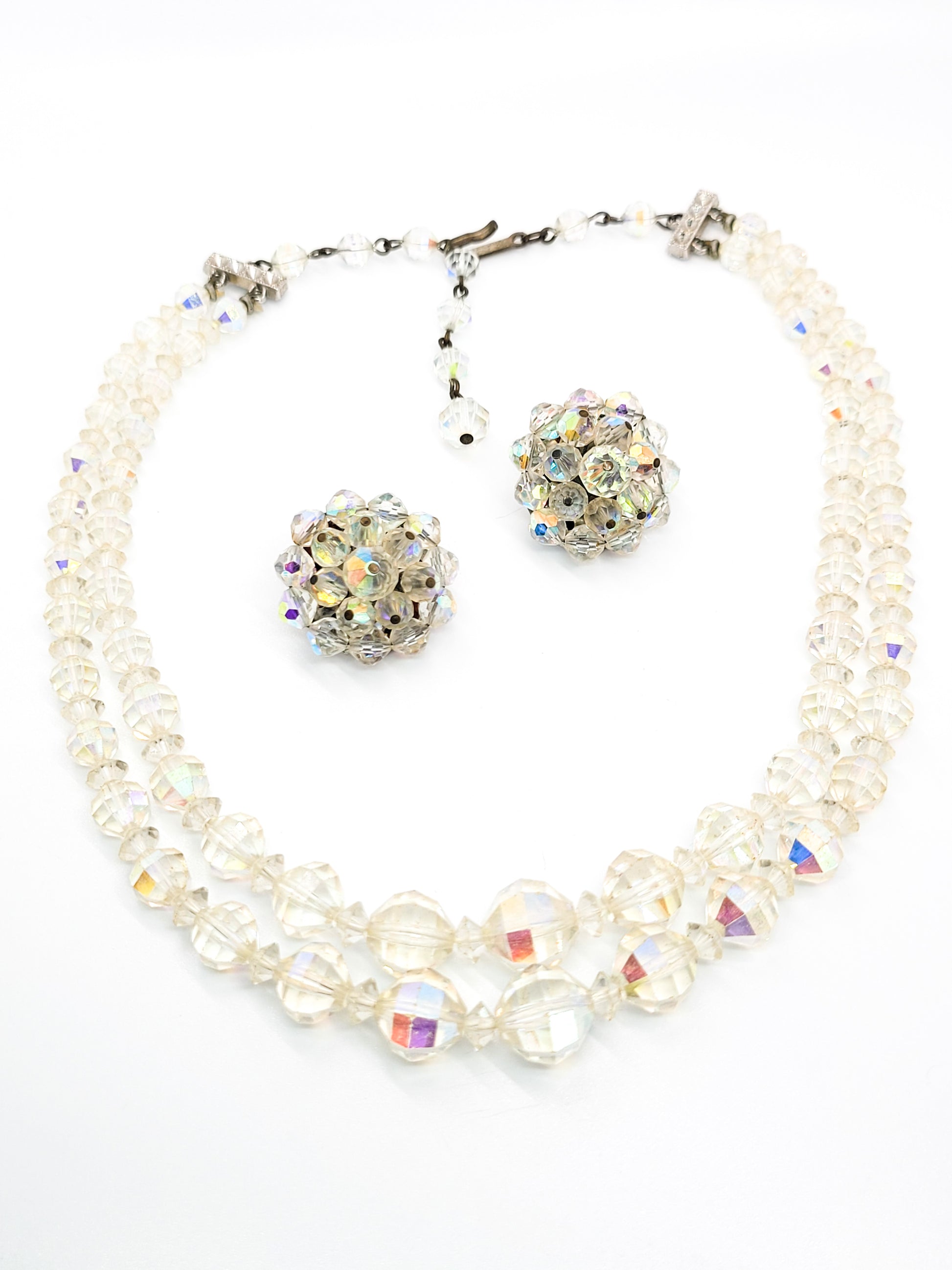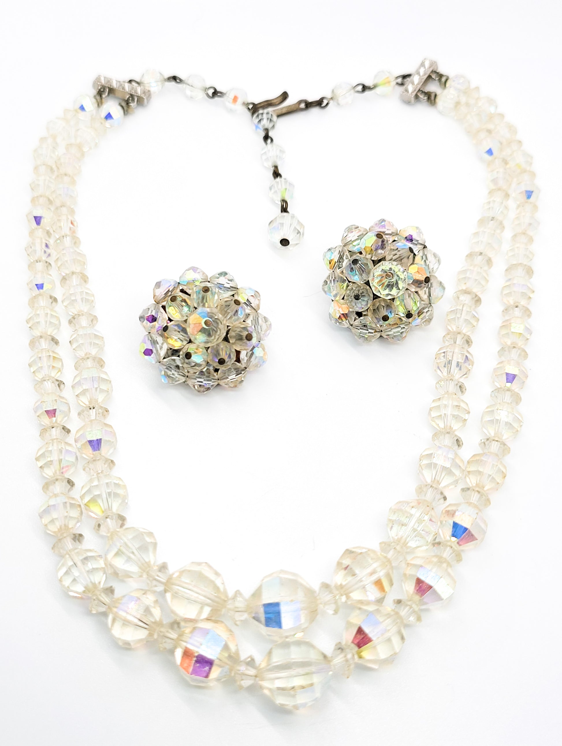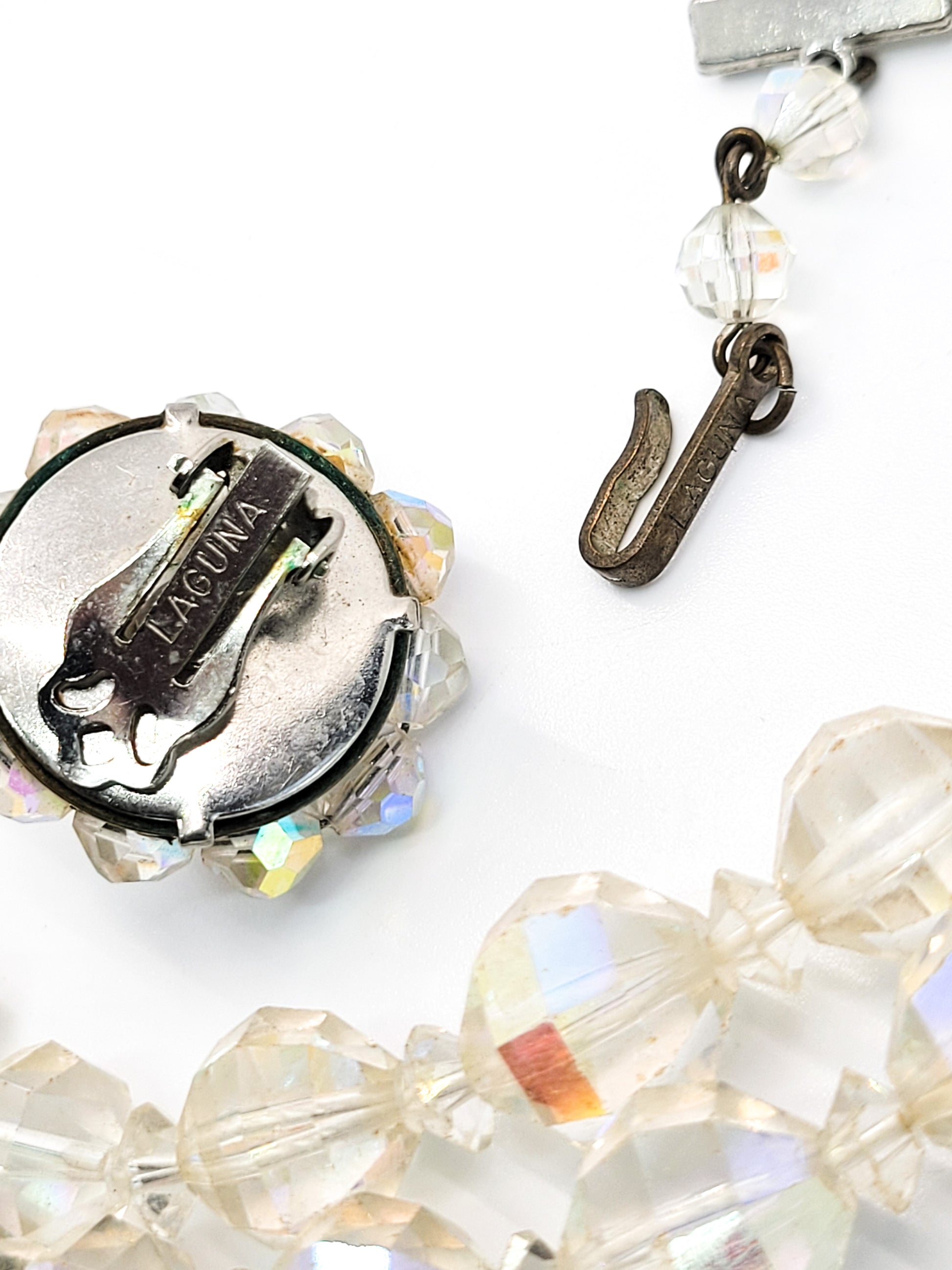 Laguna Faceted rainbow aurora borealis beaded vintage necklace and earrings set