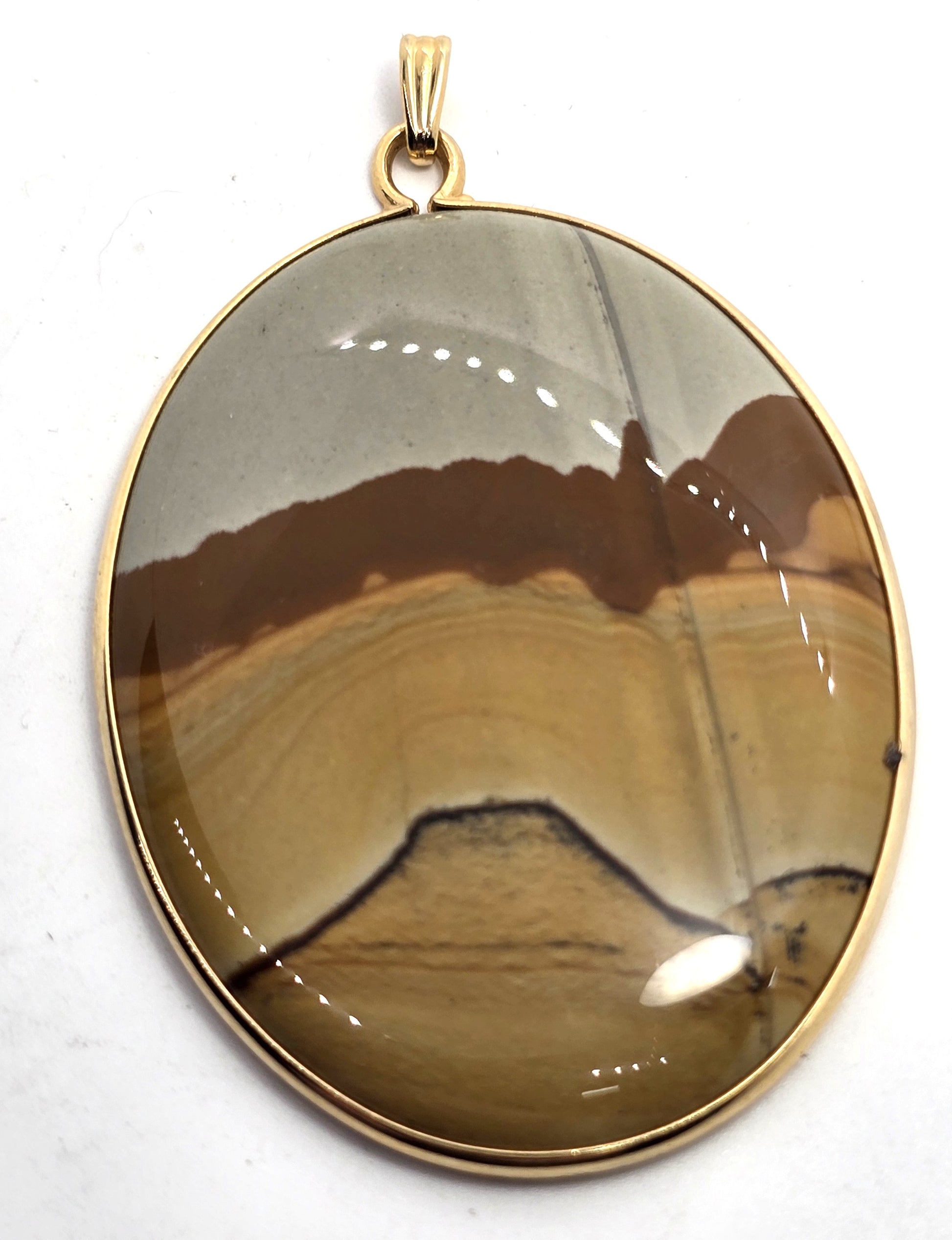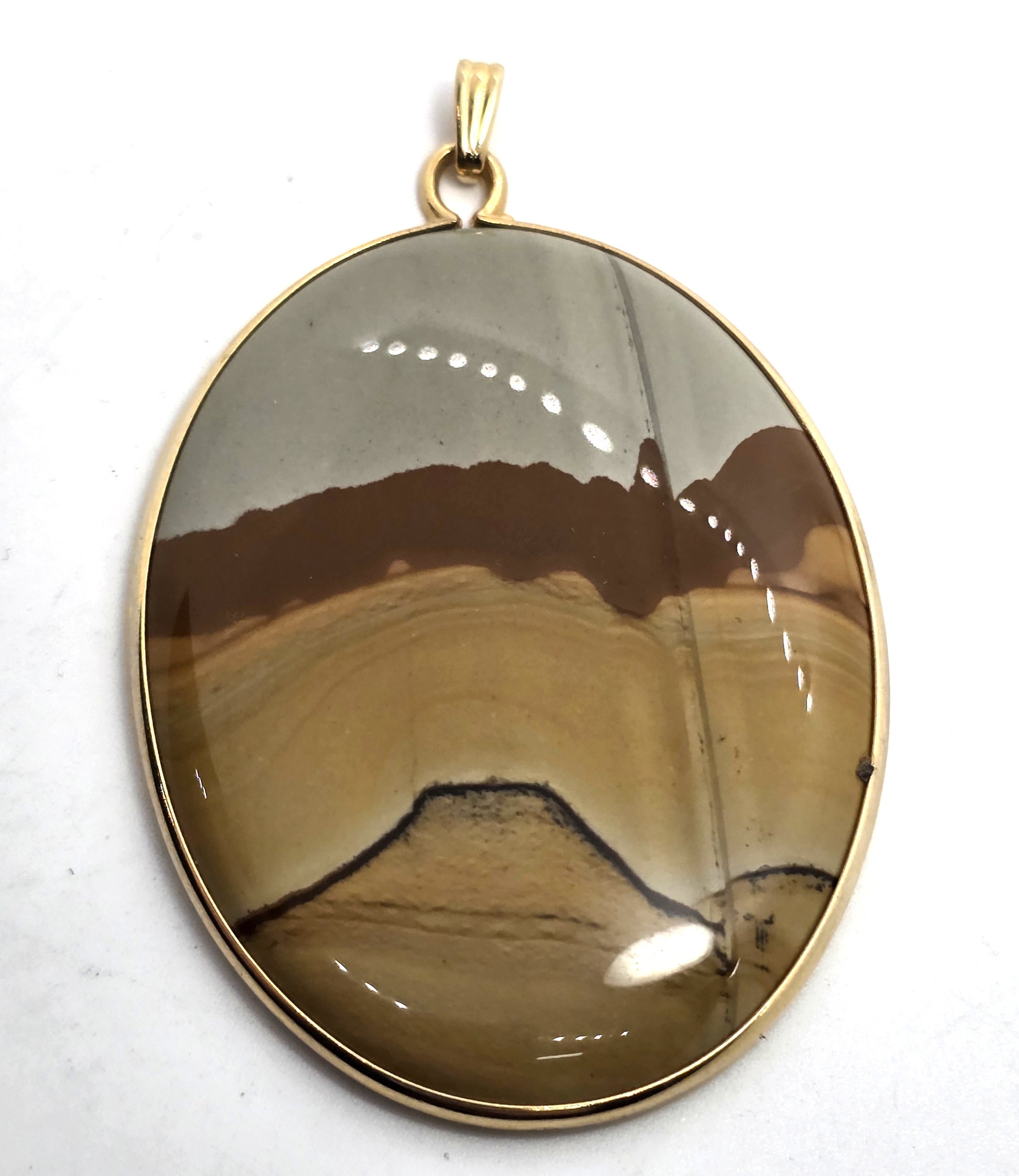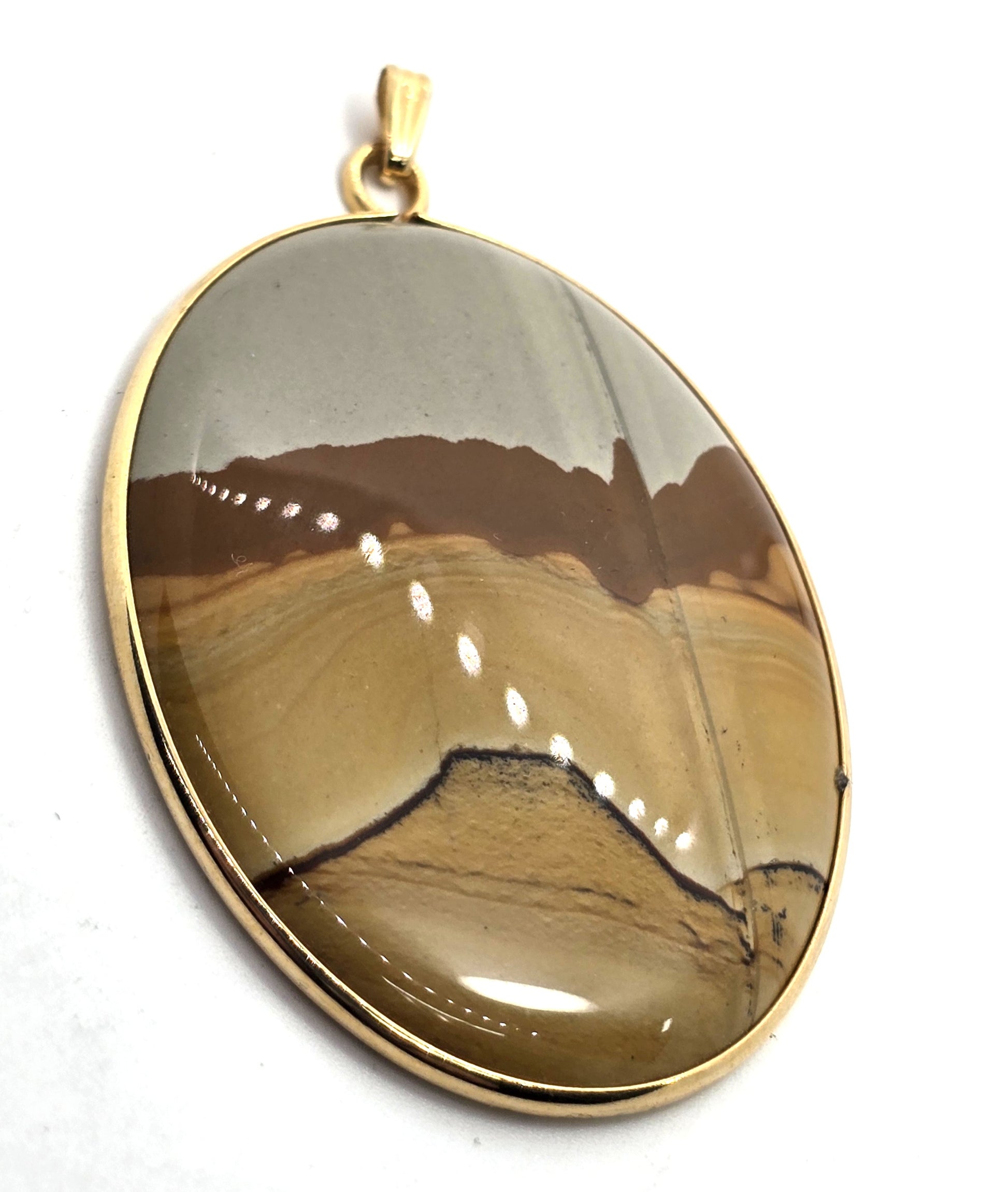 Scenic Landscape jasper vintage large gemstone 12k yellow gold filled pendant