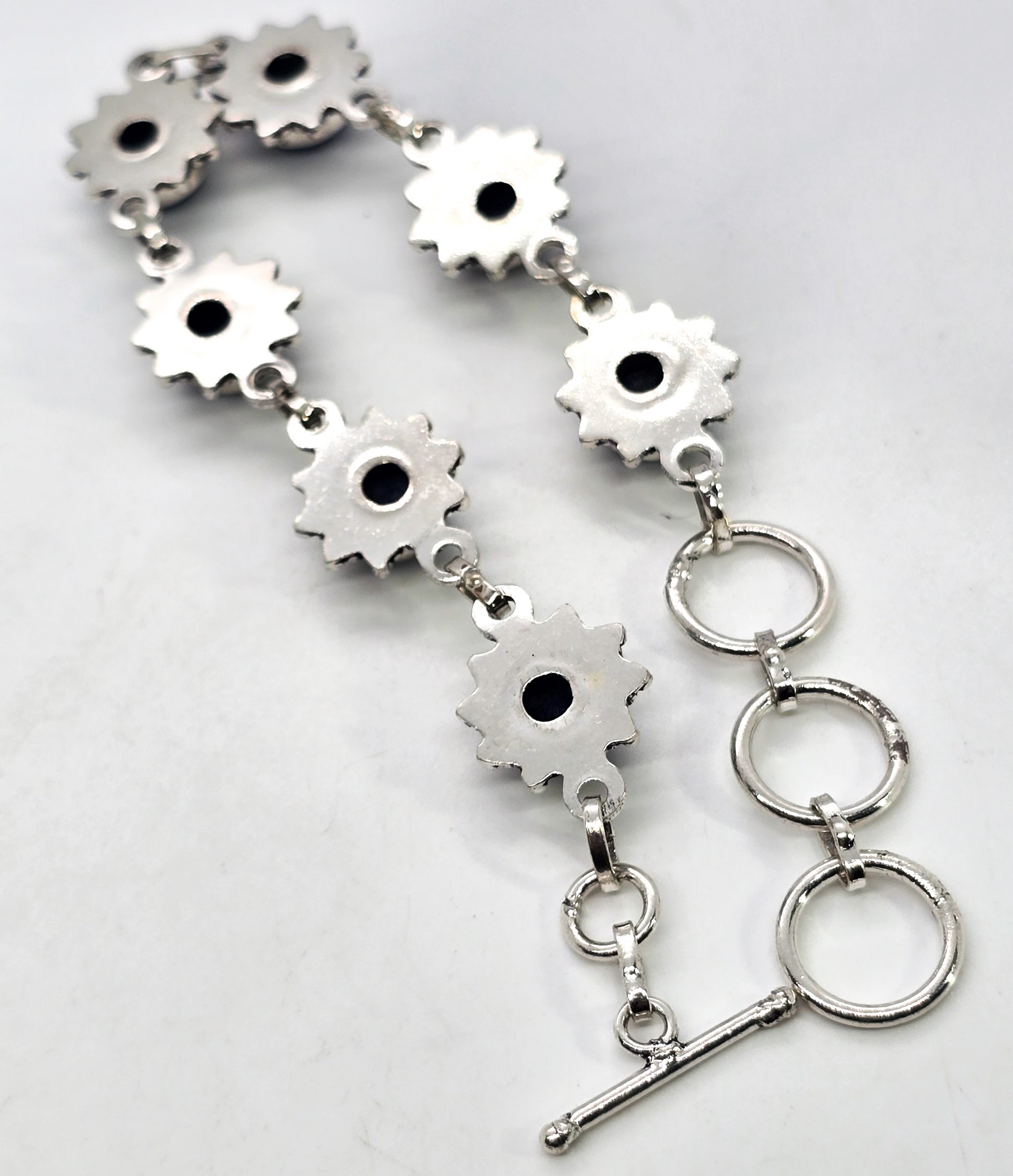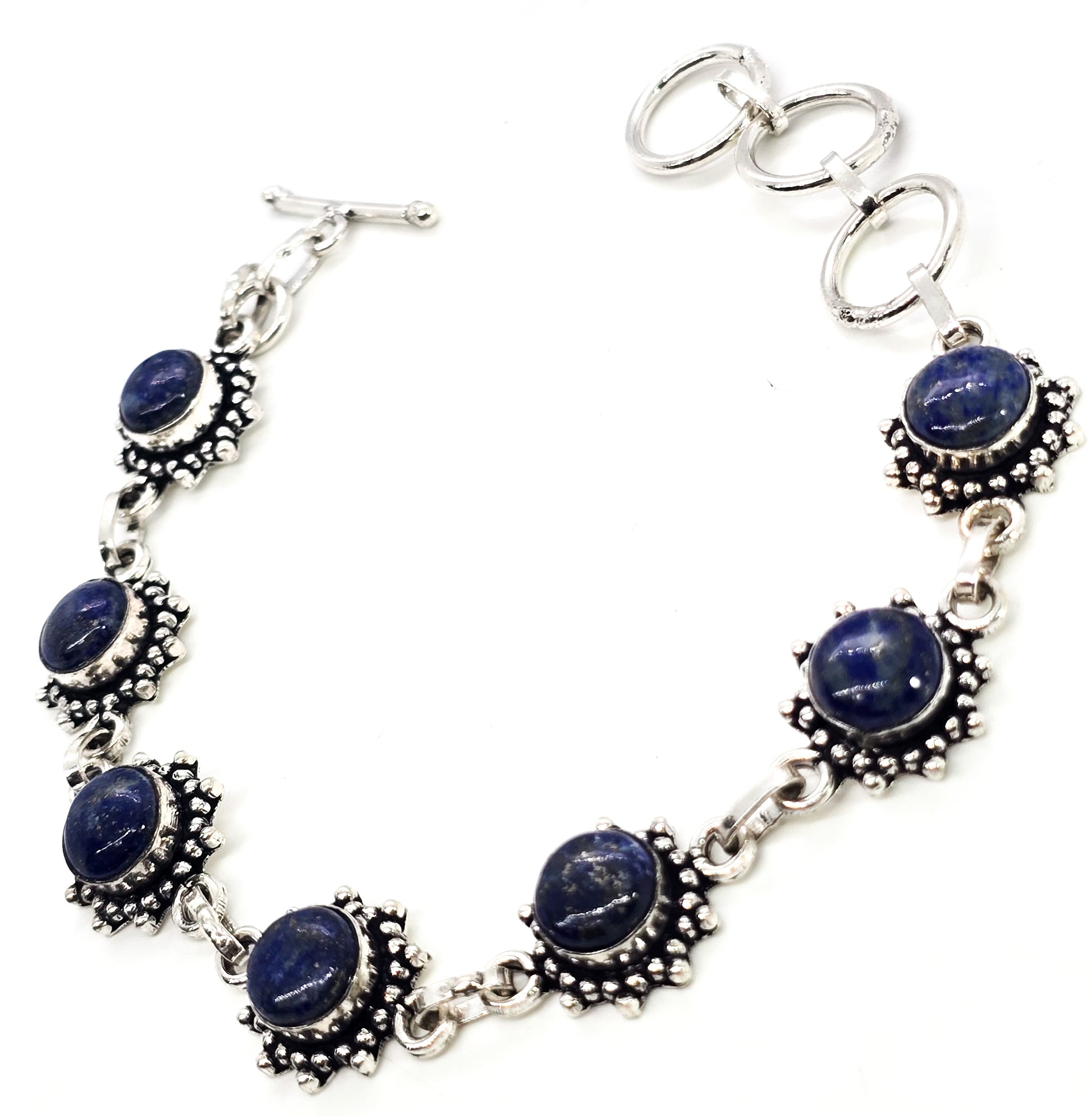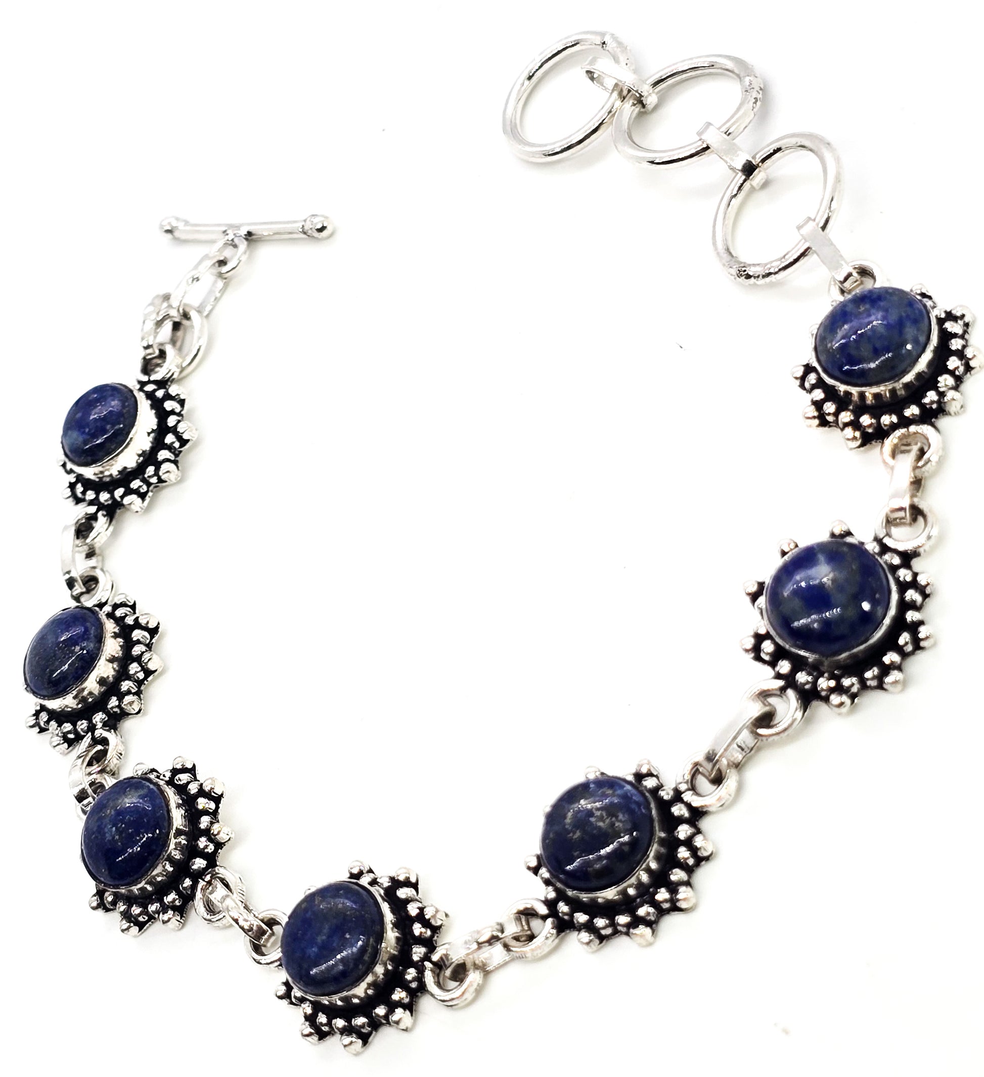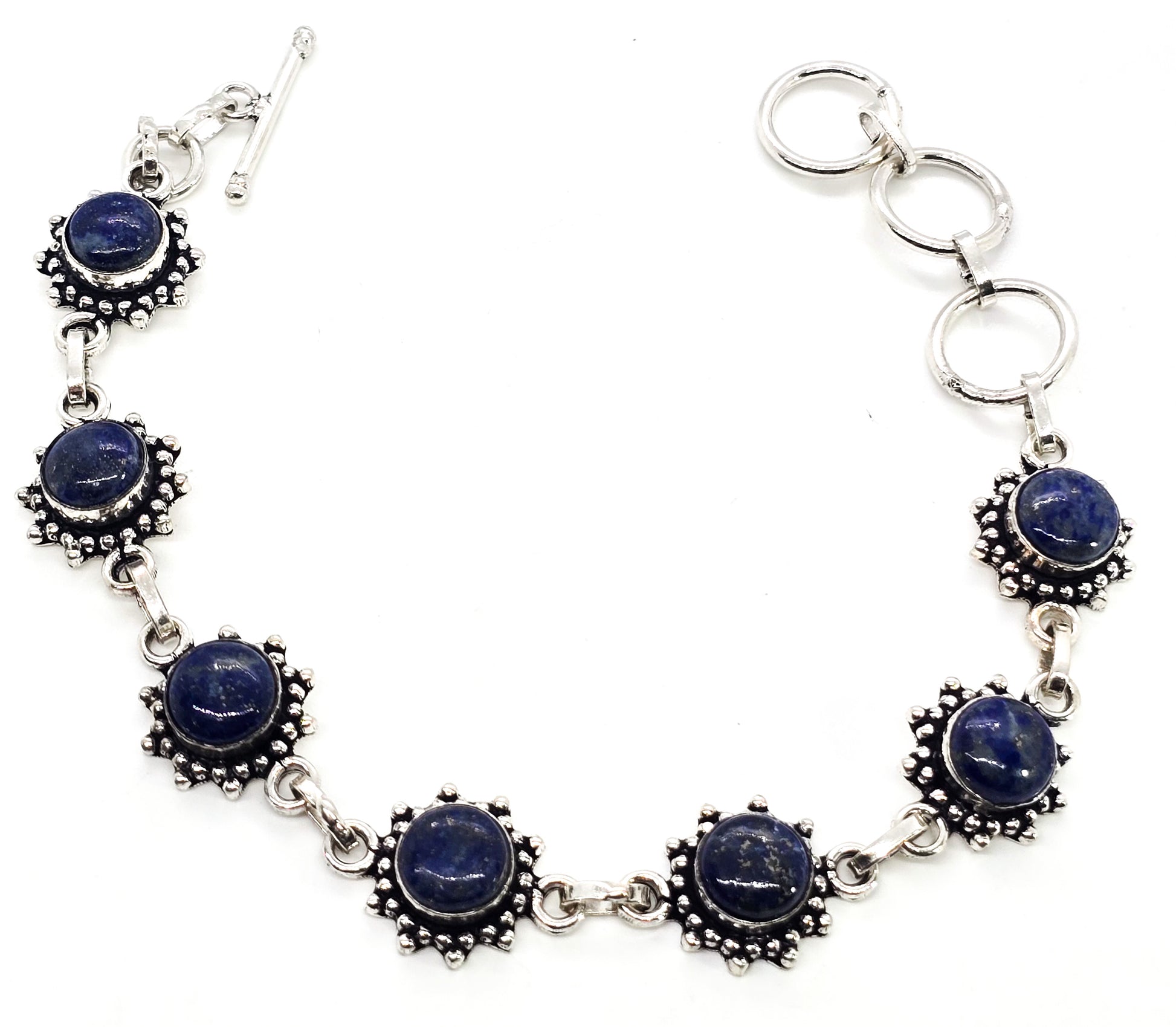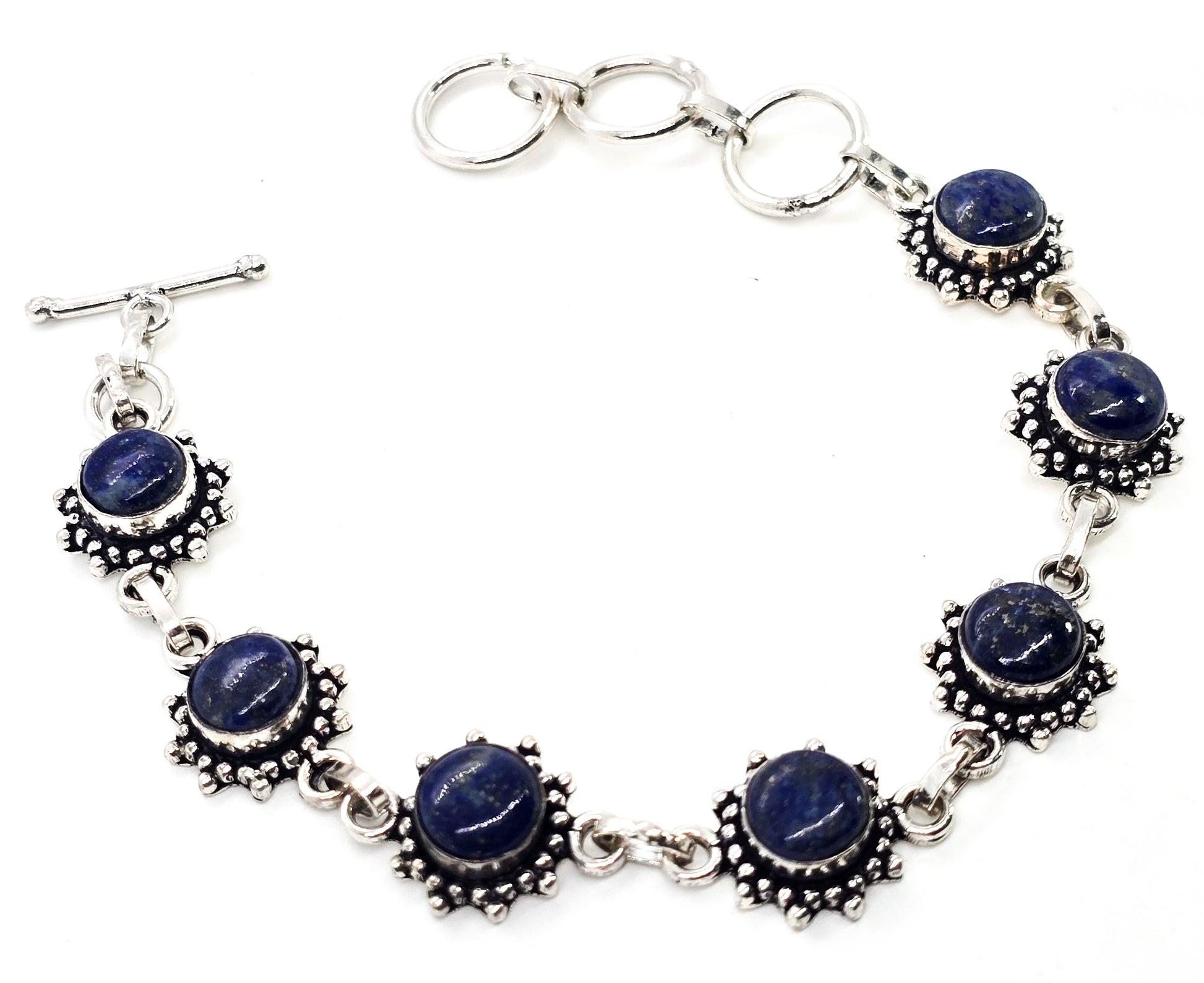 Lapis lazuli Bali Balinese tribal sun silver plated tennis bracelet. Good used condition with little to no signs of normal wear. Adjustable toggle clasp.