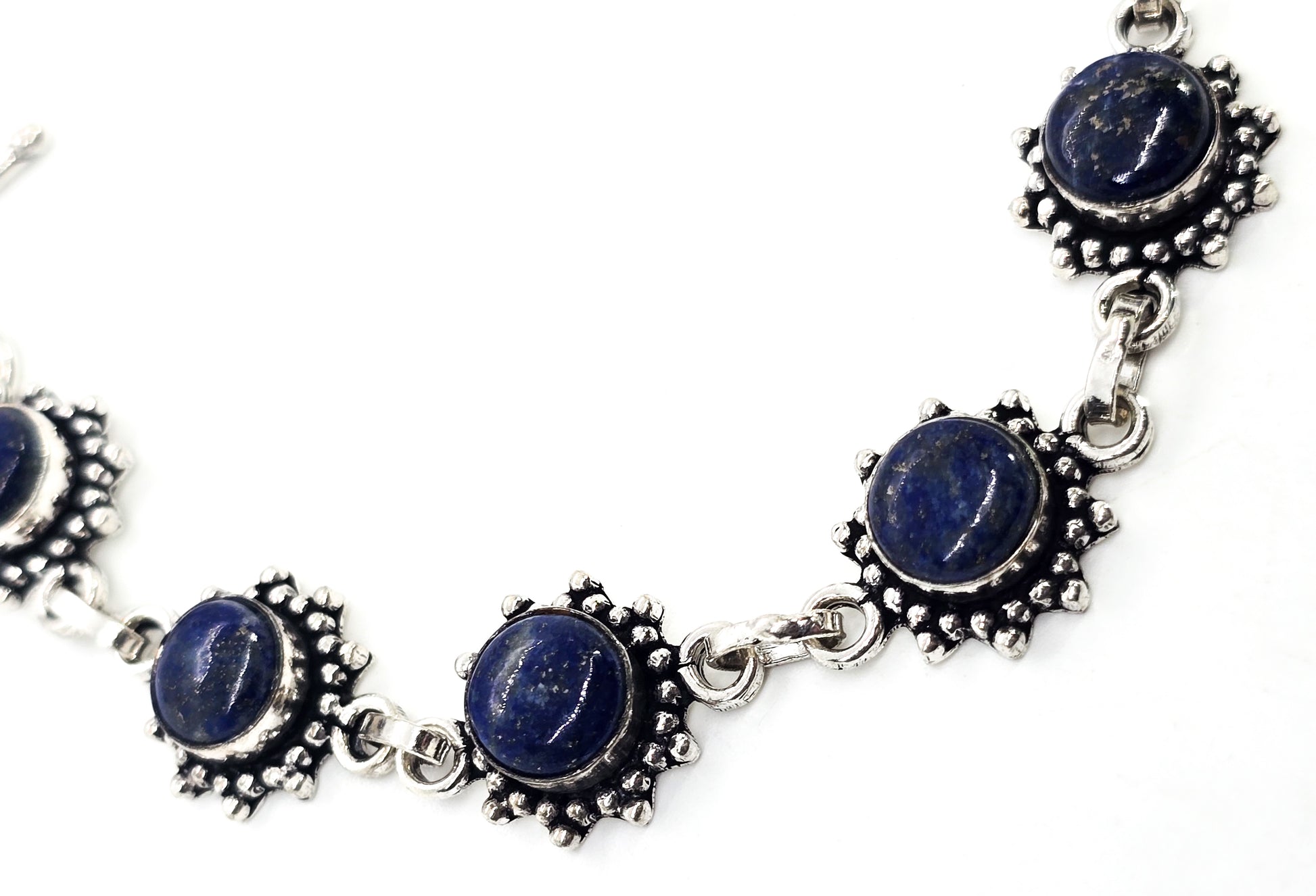 Lapis lazuli Bali Balinese tribal sun silver plated tennis bracelet