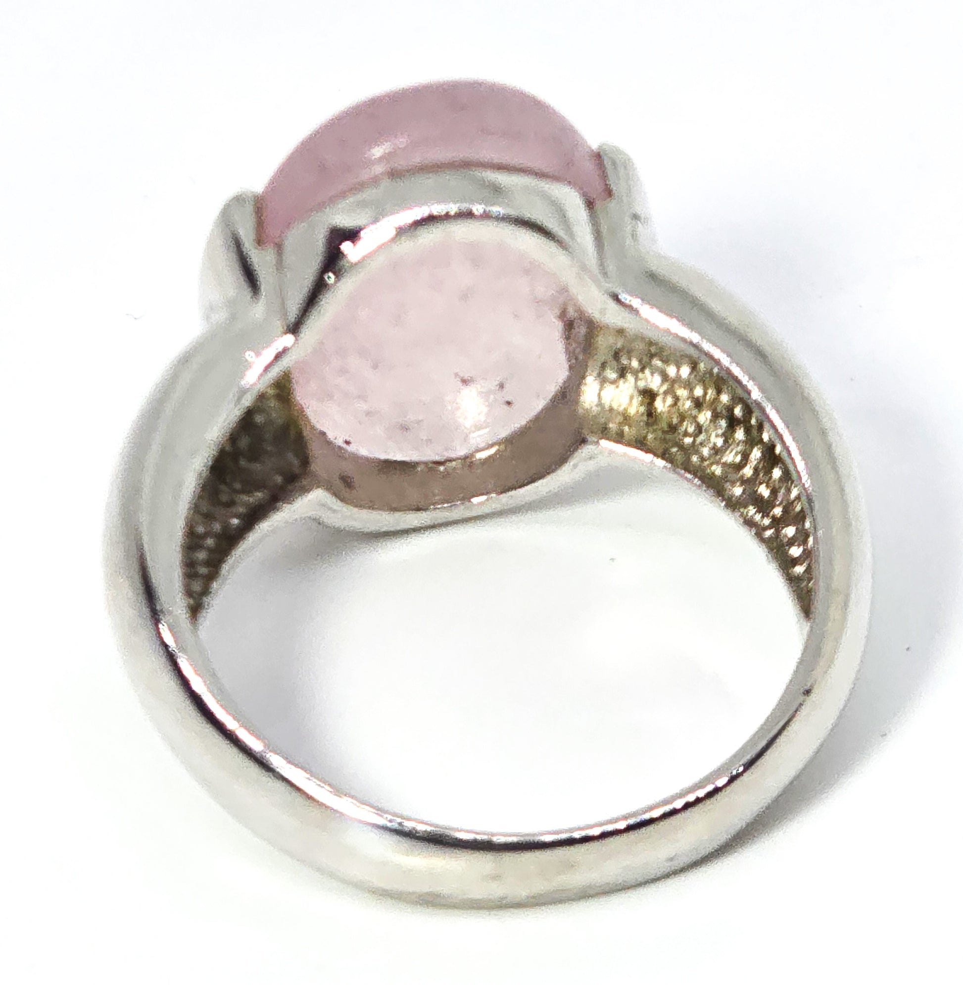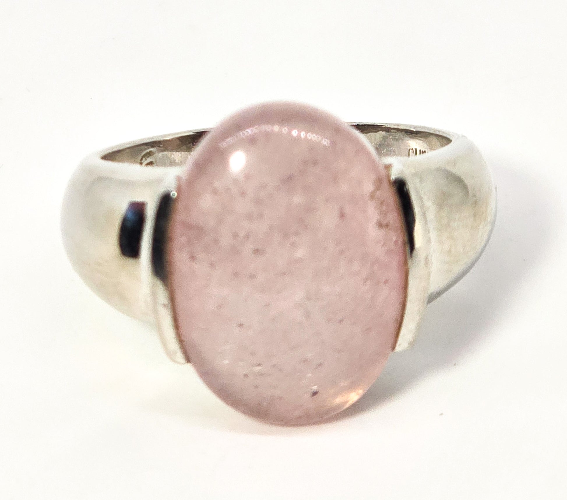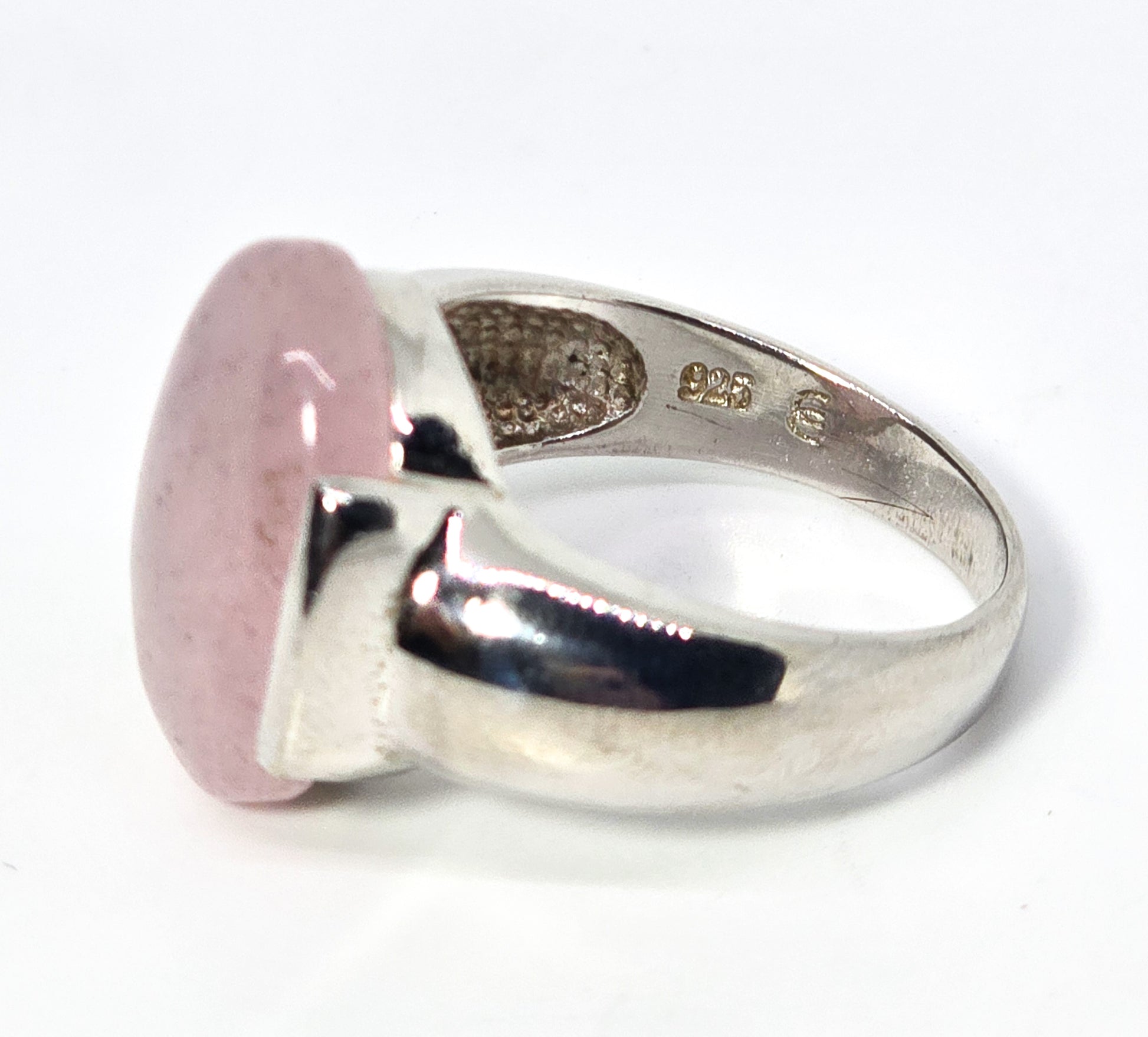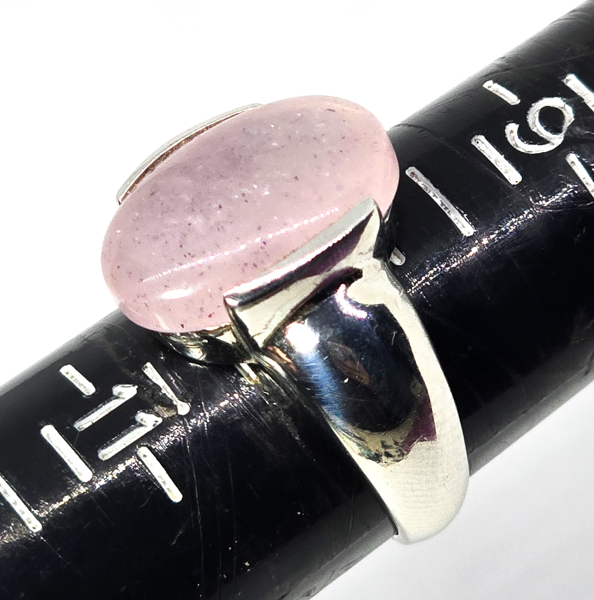 Large Rose quartz pink gemstone thick solid sterling silver hallmarked ring size 10