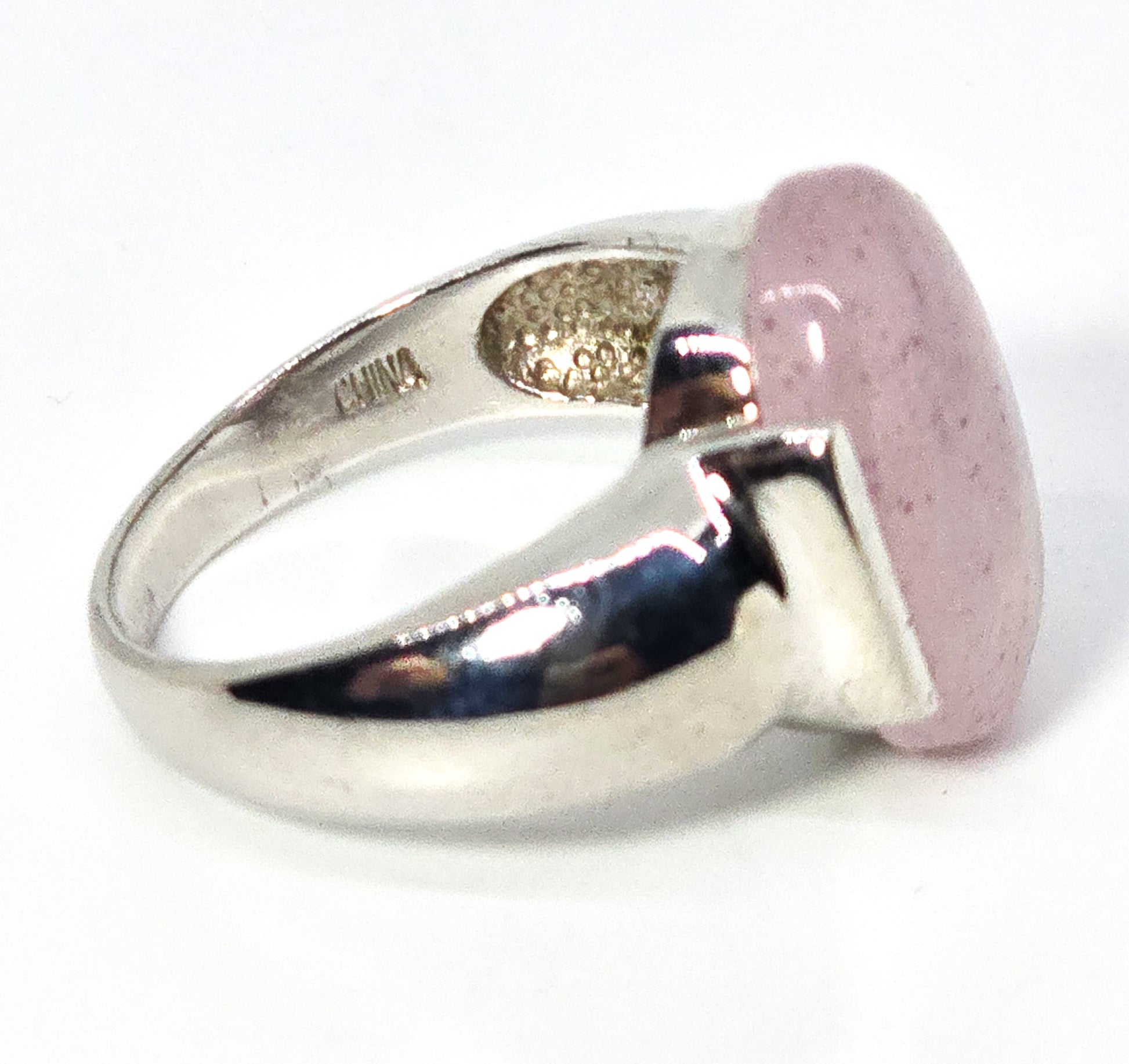 Large Rose quartz pink gemstone sterling silver ring Good used condition with little to no signs of normal wear. Great vintage patina present. Stamped on the inside of the band 925 and an E hallmark and China.