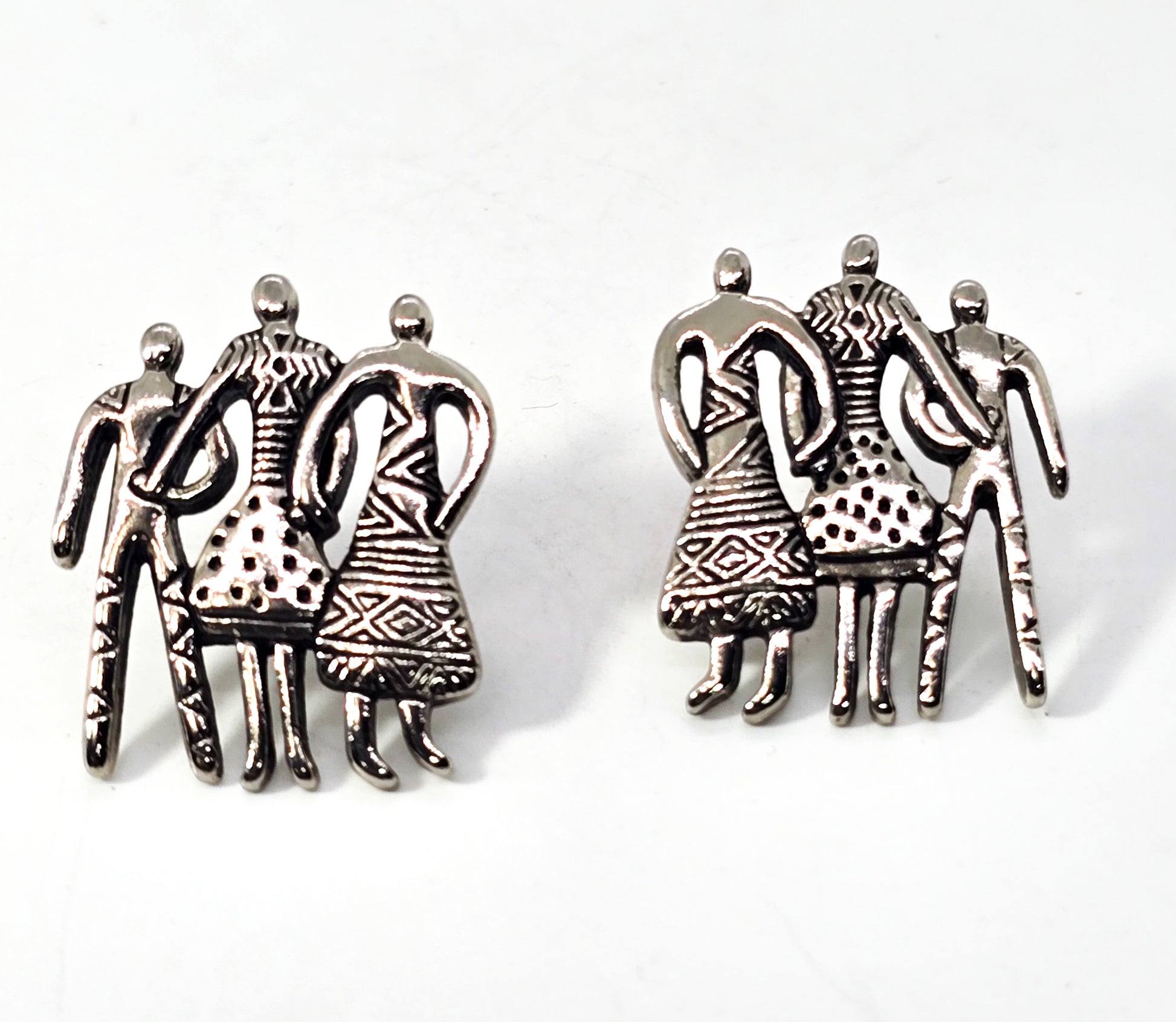 Laurel Burch Human Being Collection vintage signed Post Earrings. Good used condition with little to no signs of normal wear. Signed on the back Laurel Birch. All post earrings come with new sterling silver butterfly backings.