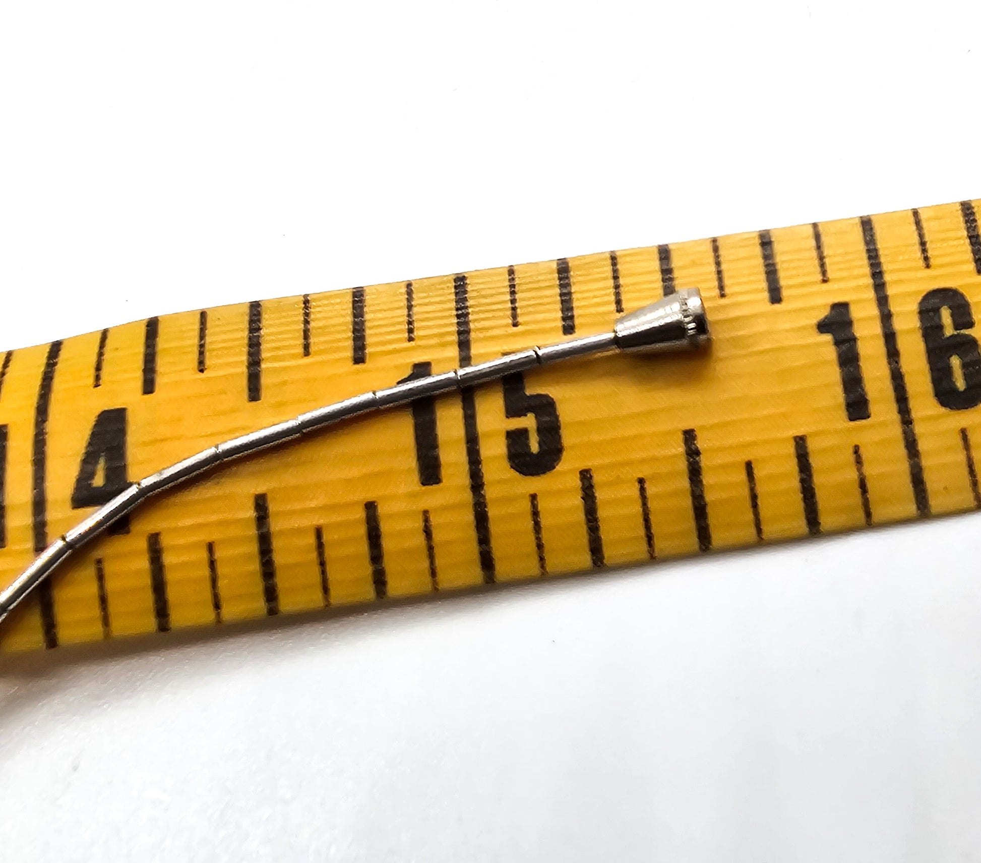 Necklace measures 15 and 3/4ths of an inch long.
