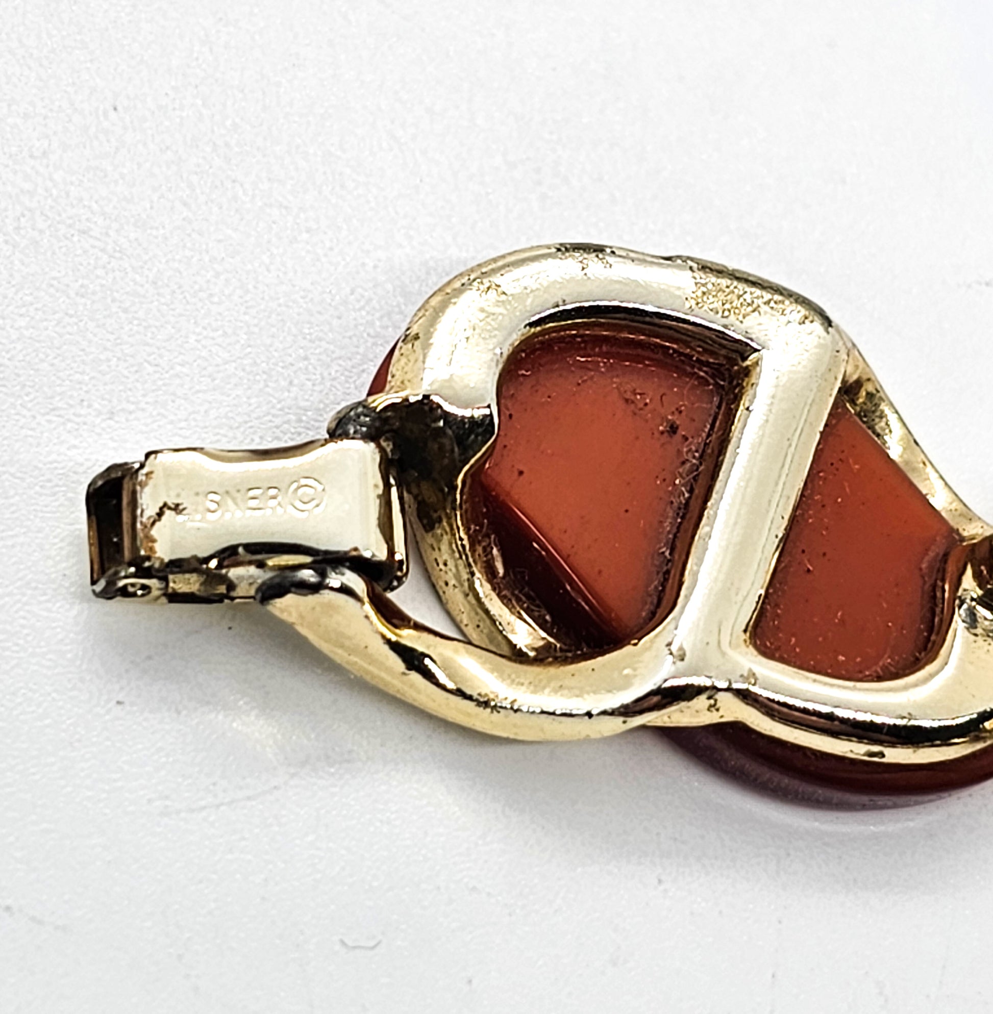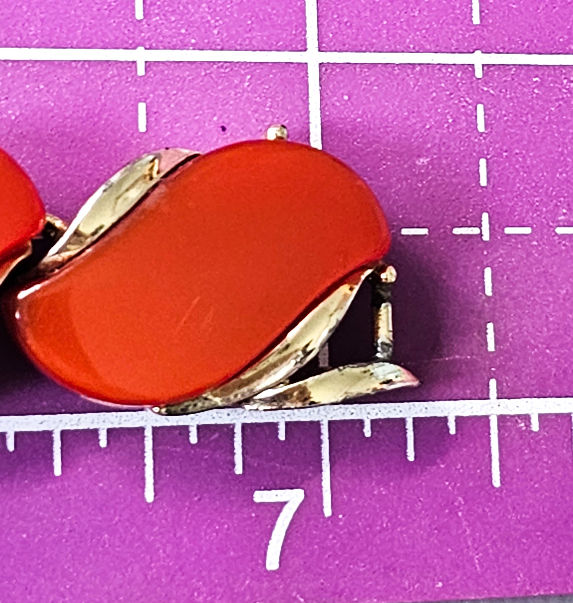 Lisner Thermoset gold toned vintage signed mid century bracelet. Good vintage condition with little to no signs of normal wear. Stamped Lisner with a copywrite symbol on the fold over clasp.
