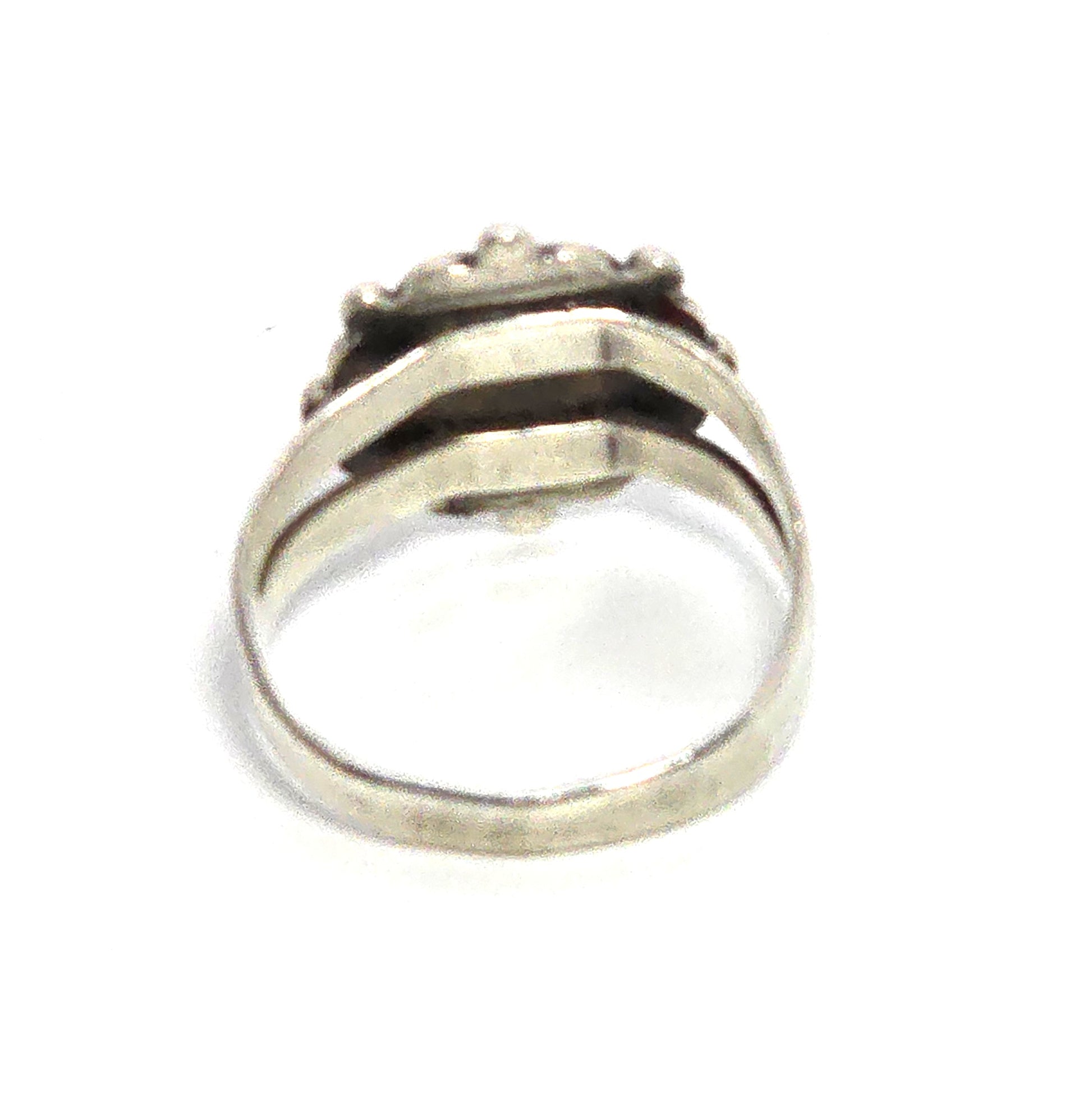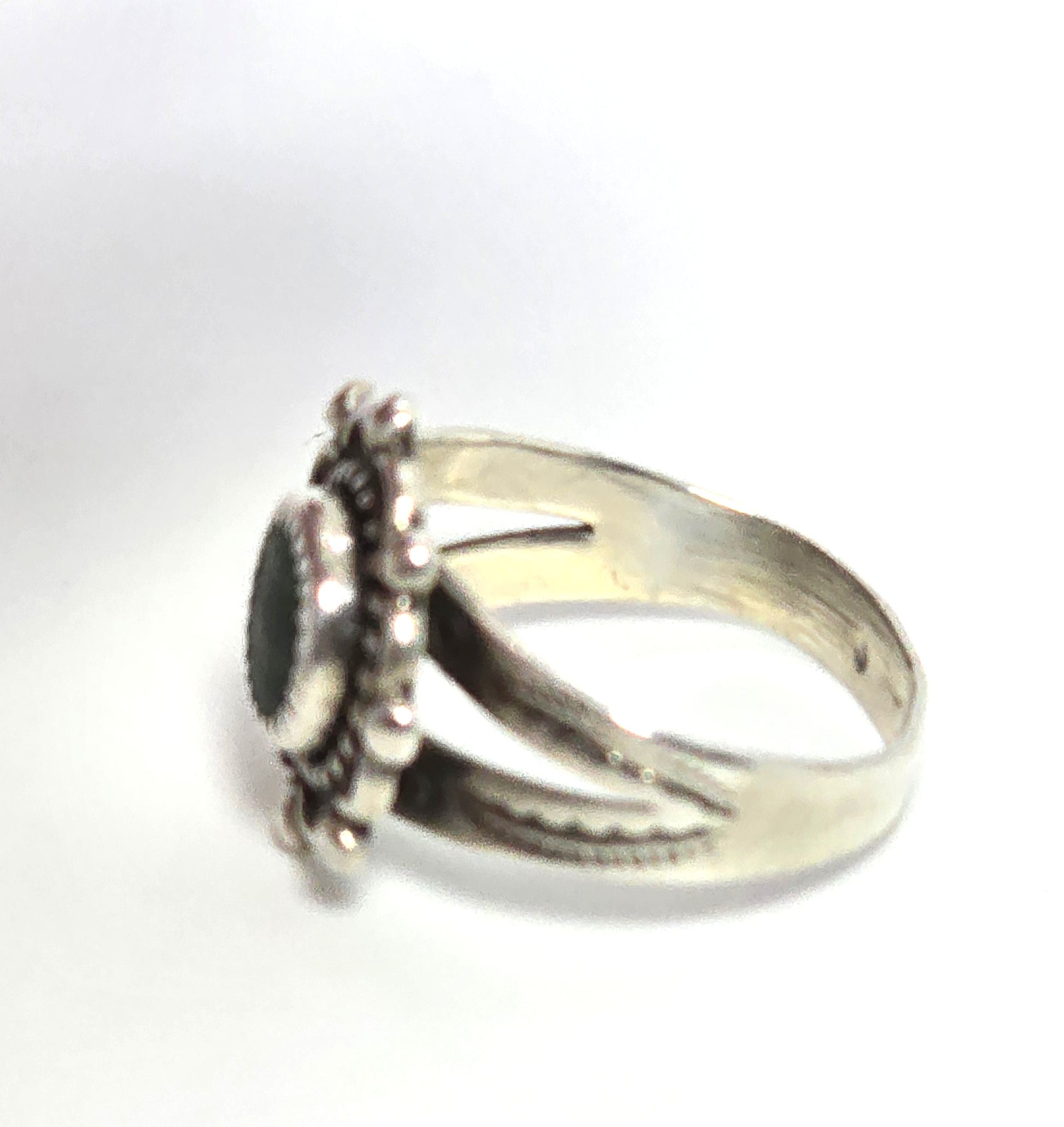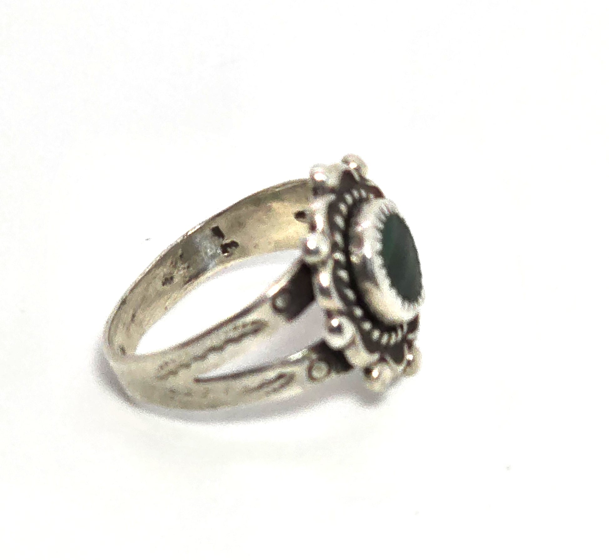 Malachite concho stamped Southwestern split shank sterling silver ring size 5.5