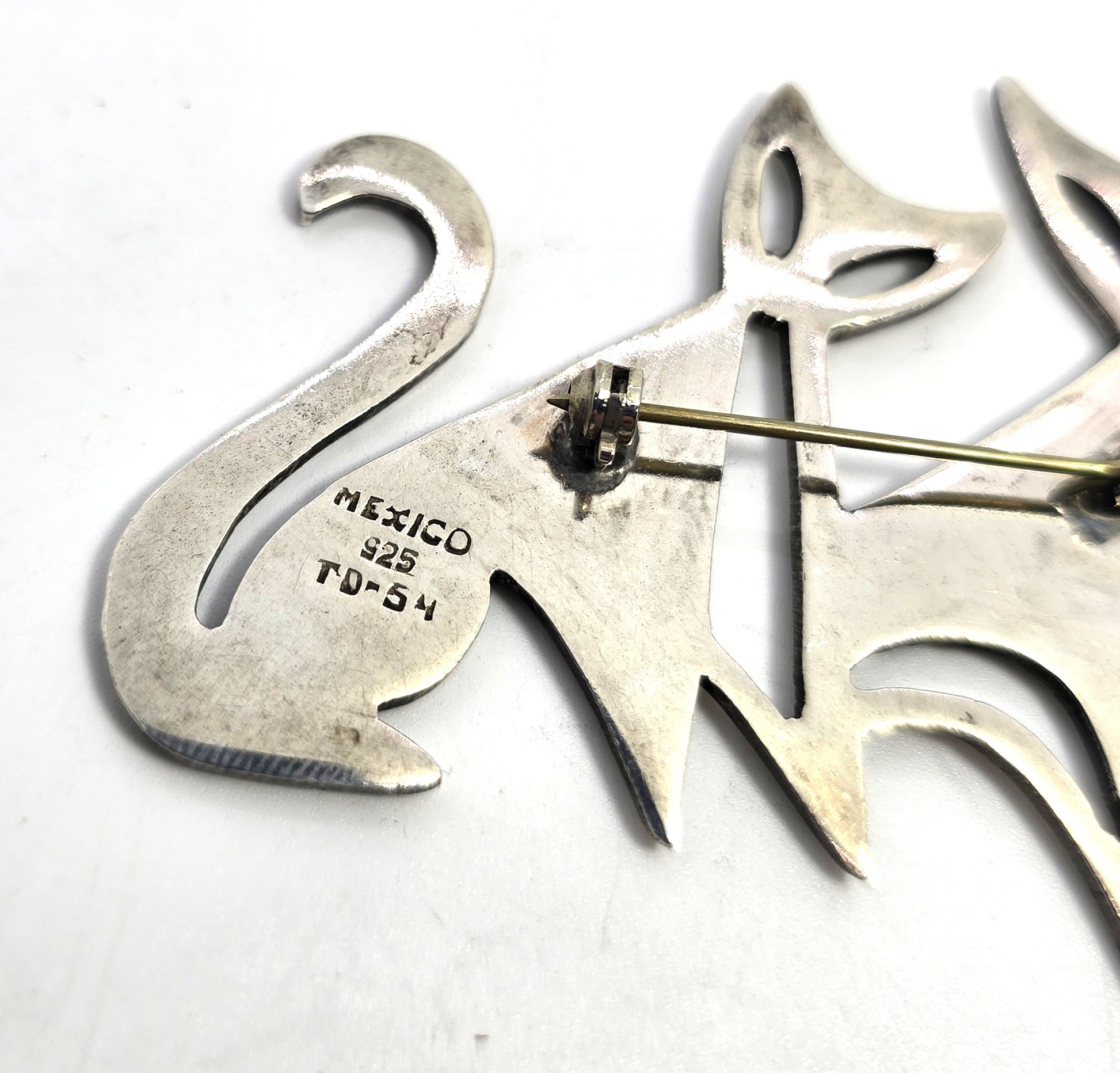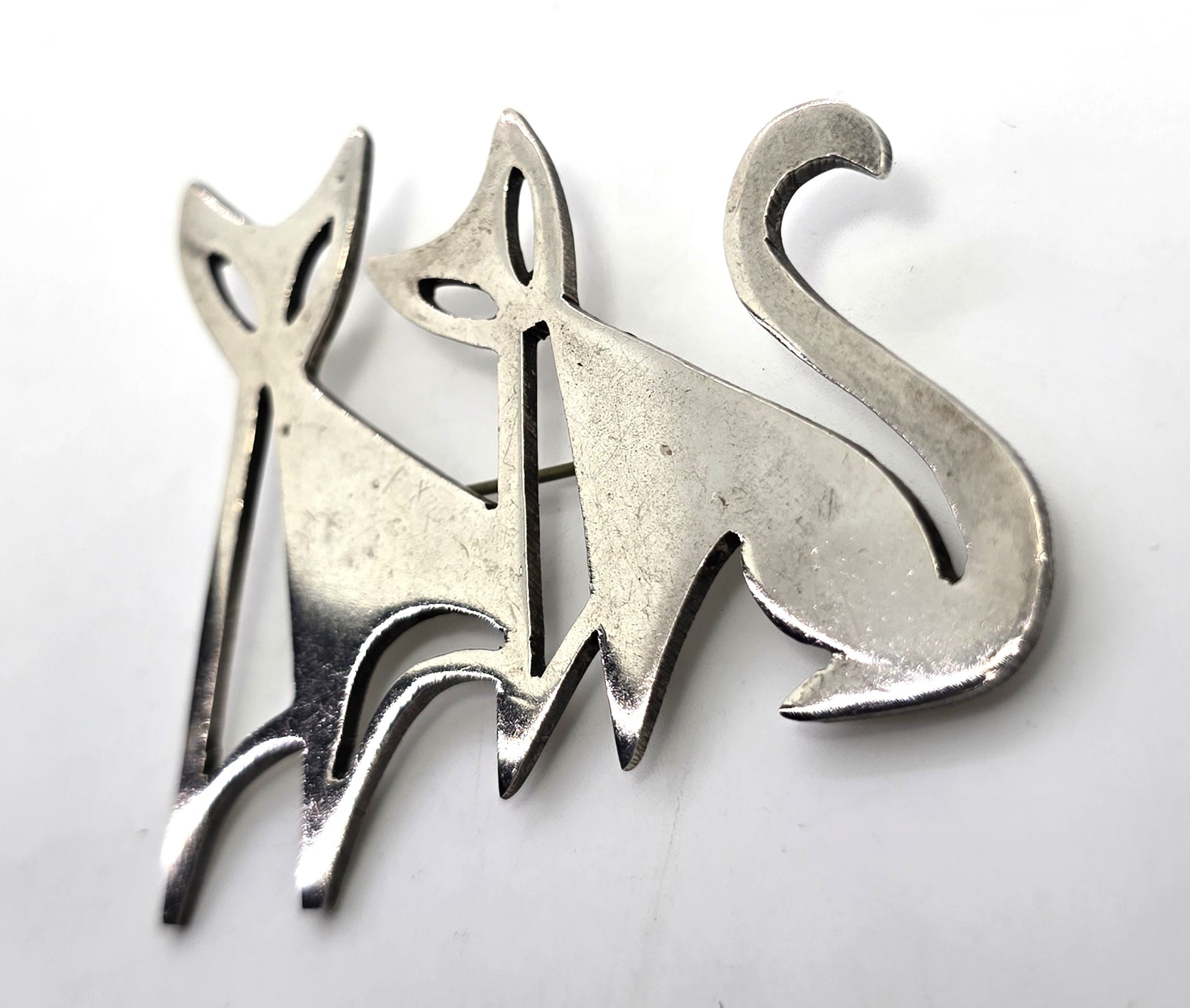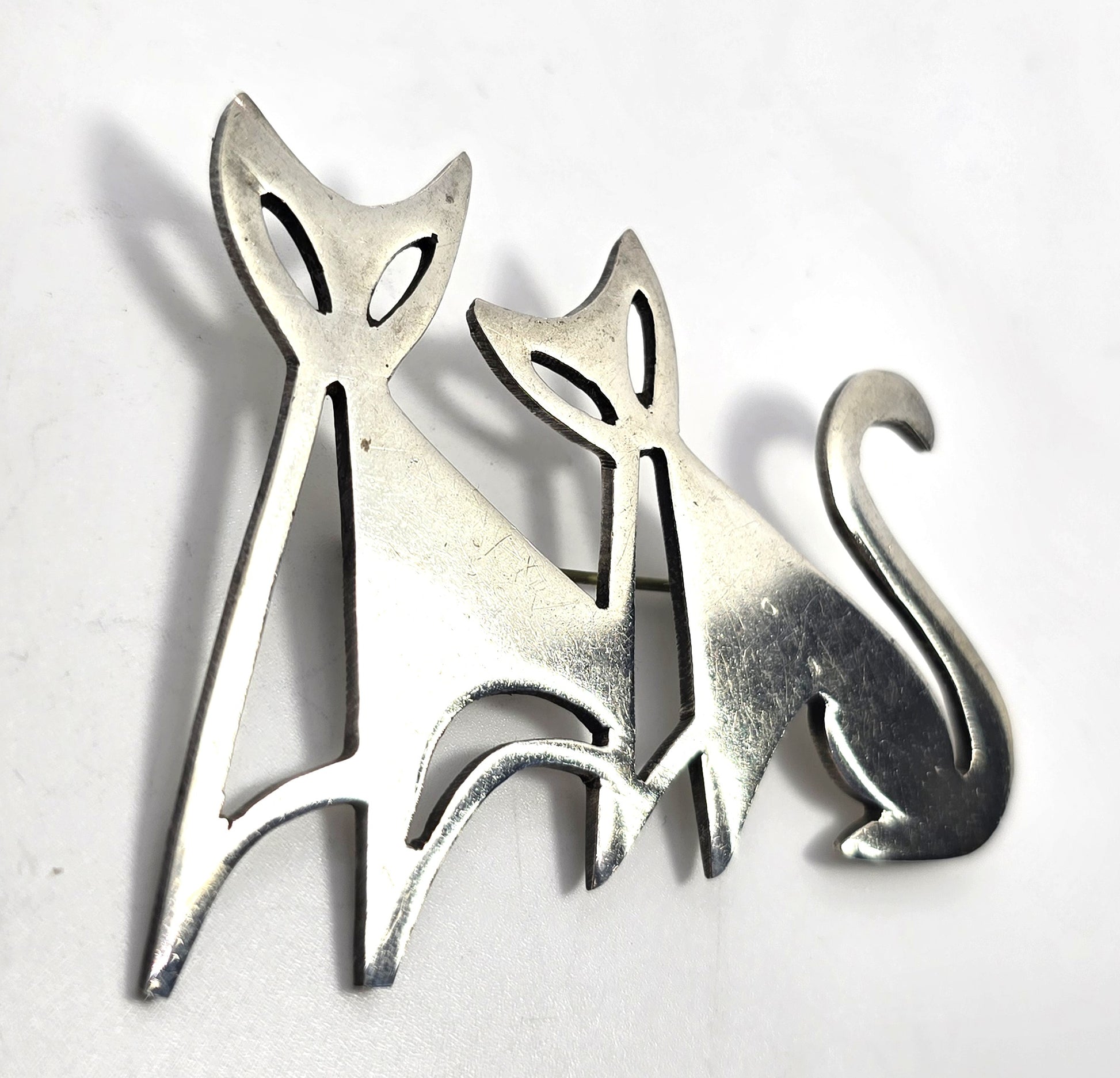 Taxco Mexican Double Kitty Cat Large vintage signed sterling silver feline brooch. Good used condition with little signs of normal wear. Great vintage patina. Stamped Mexico 925 TD-54. Solid sterling silver construction.