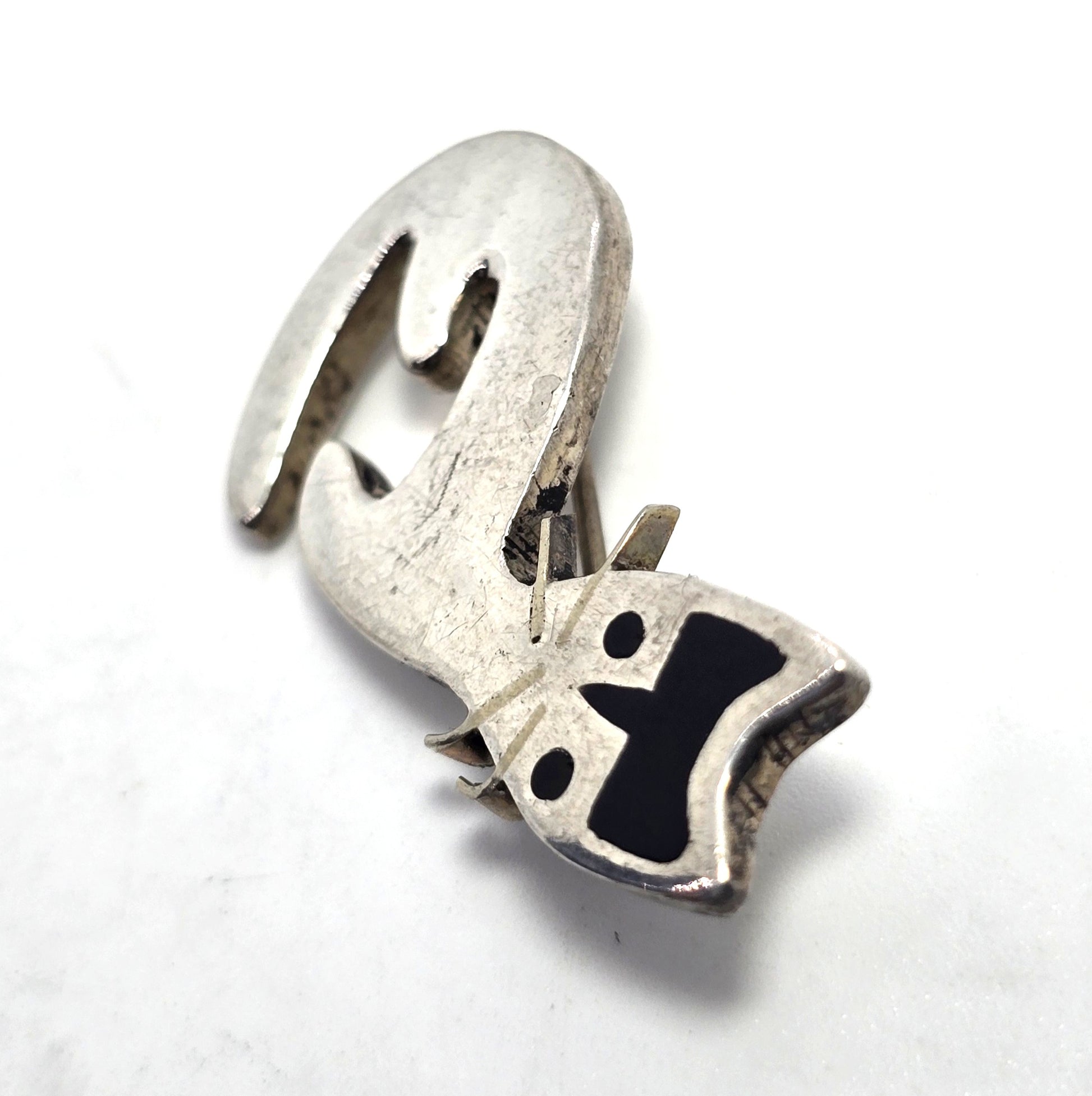 Mexico Taxco Black Enamel small Kitty Cat vintage sterling silver feline brooch