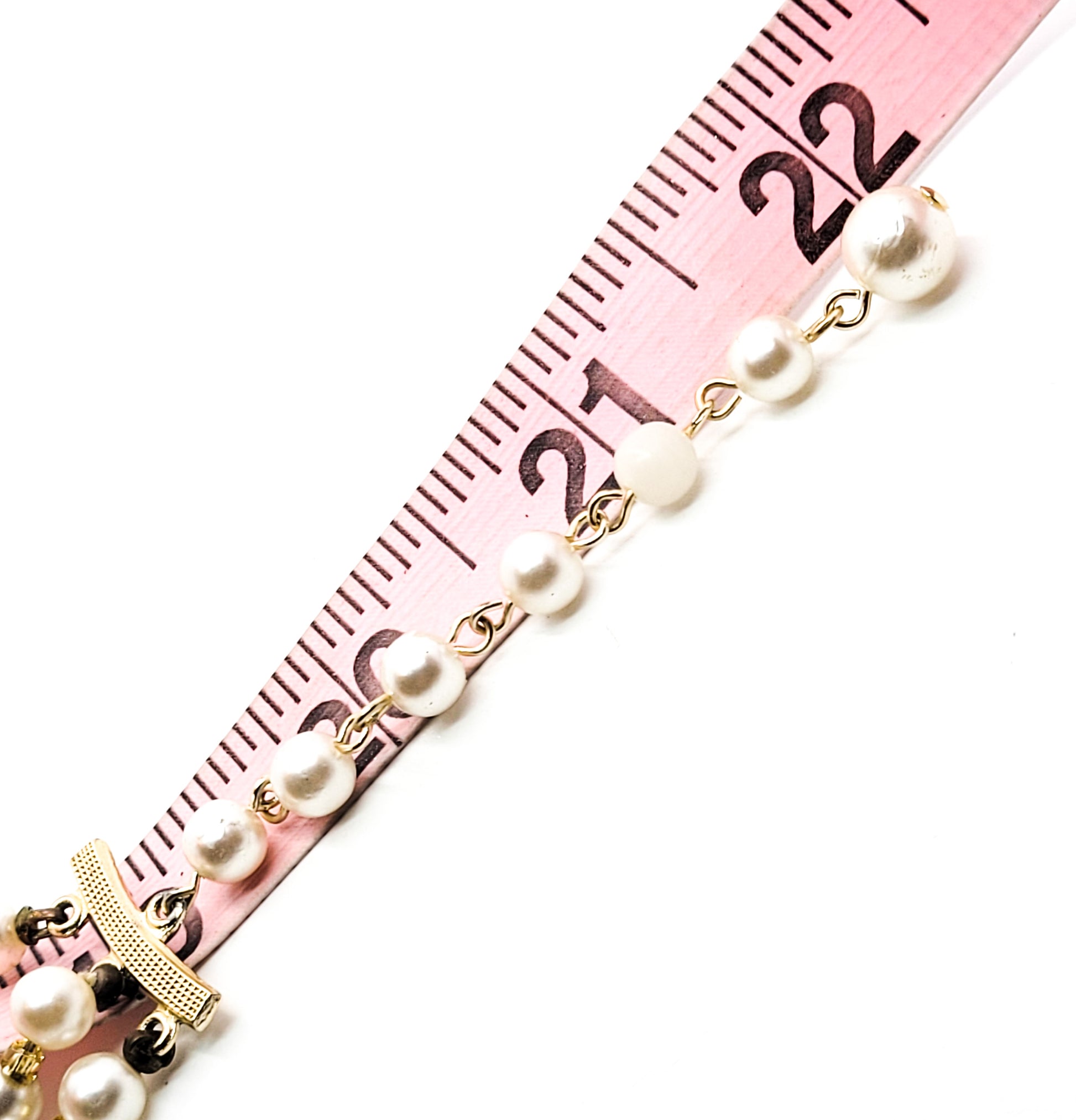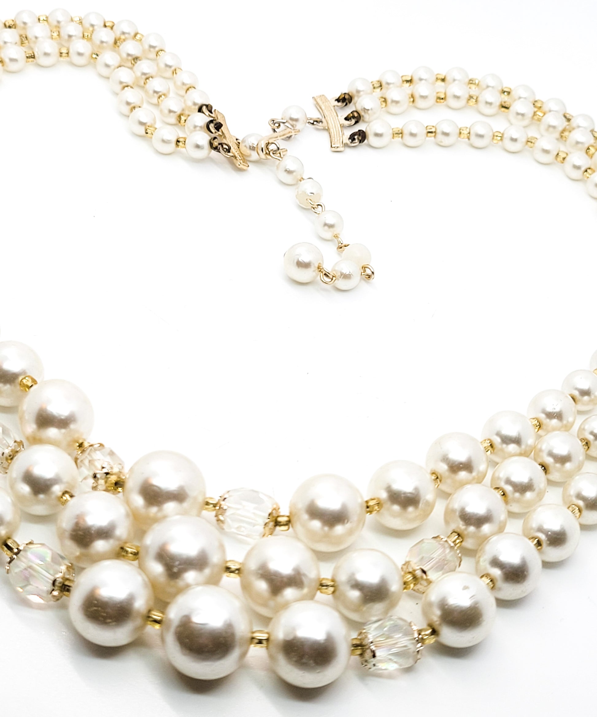 Mid century 3 tiered faux pearl and told Austrian crystal vintage gradutated necklace