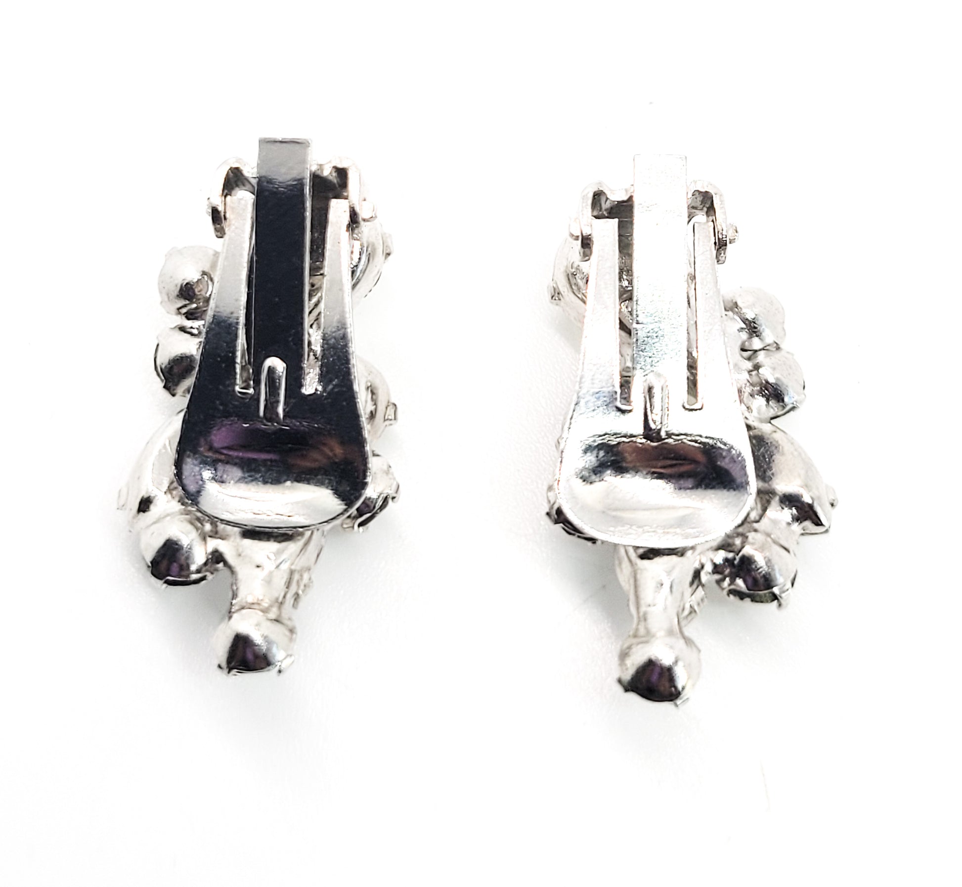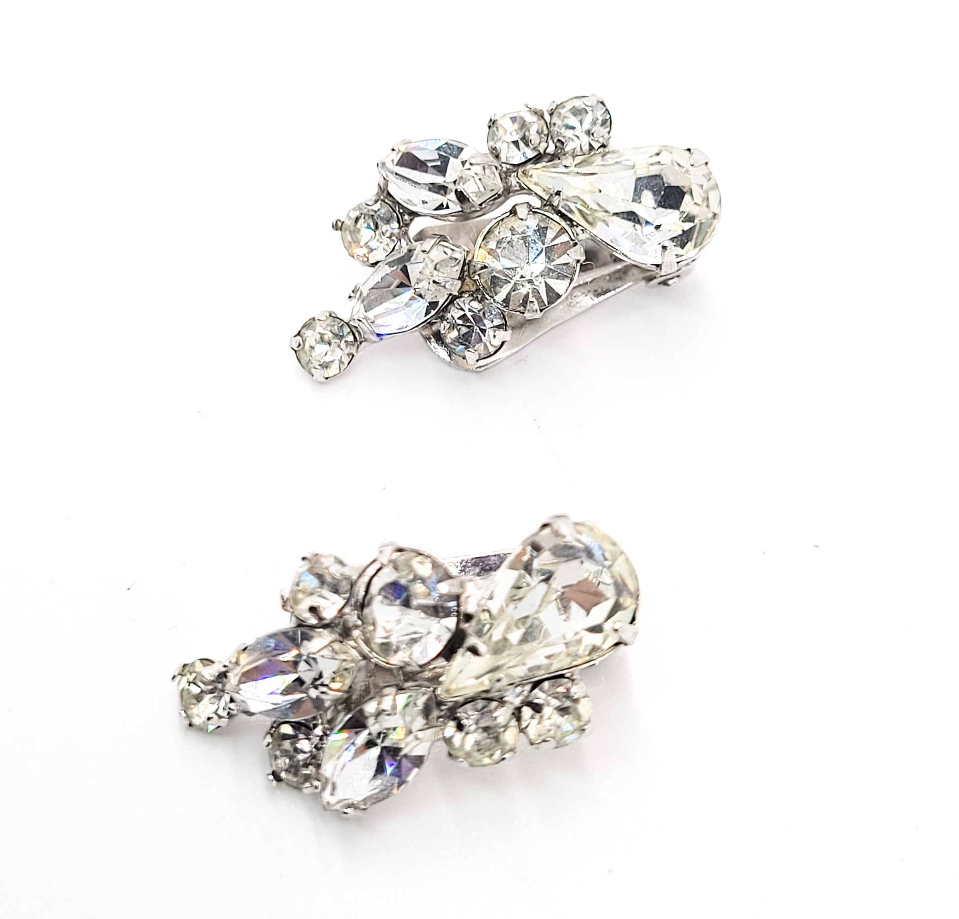 Mid century bright clear and silver crystal vintage rhinestone clip on earrings