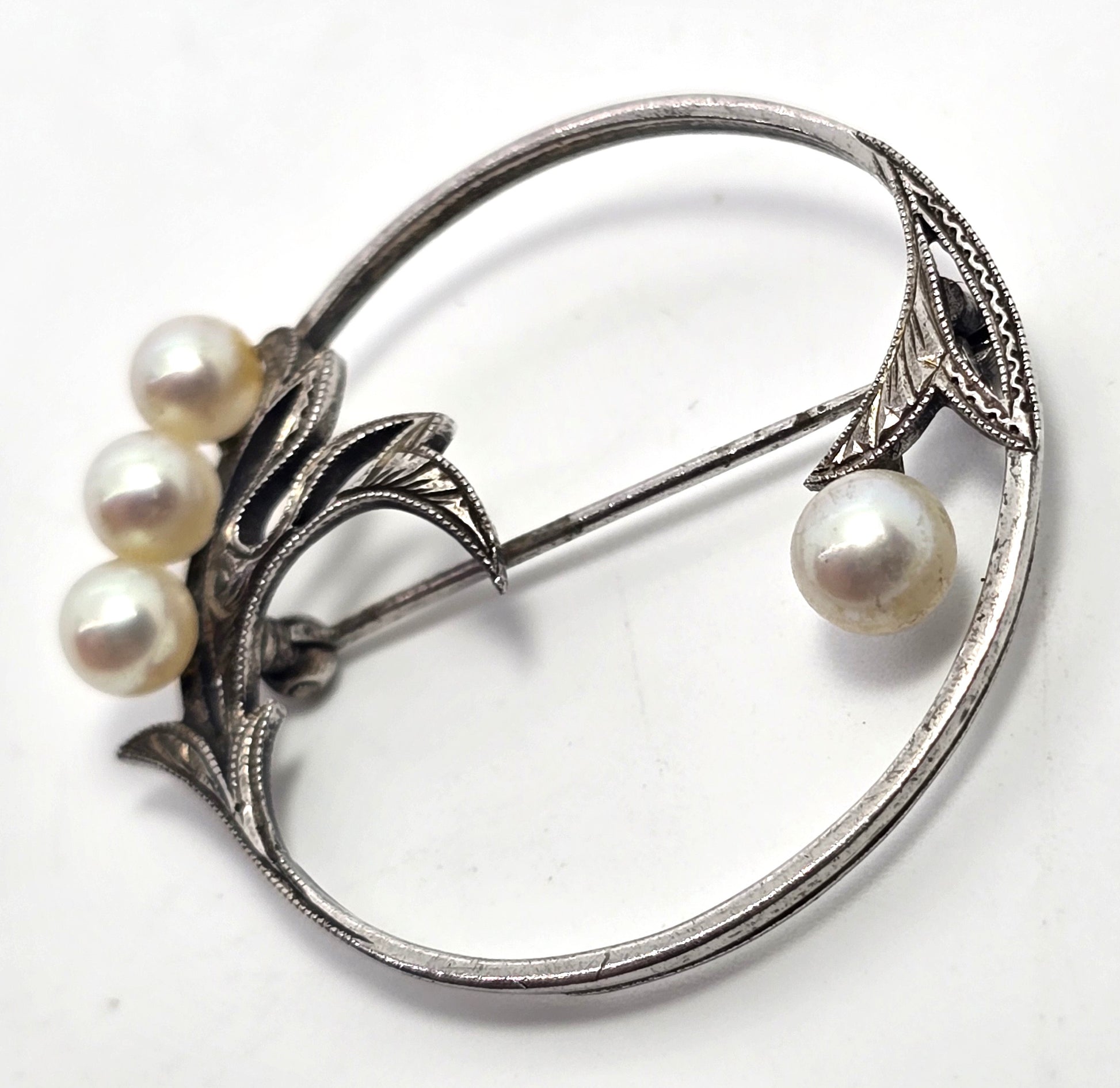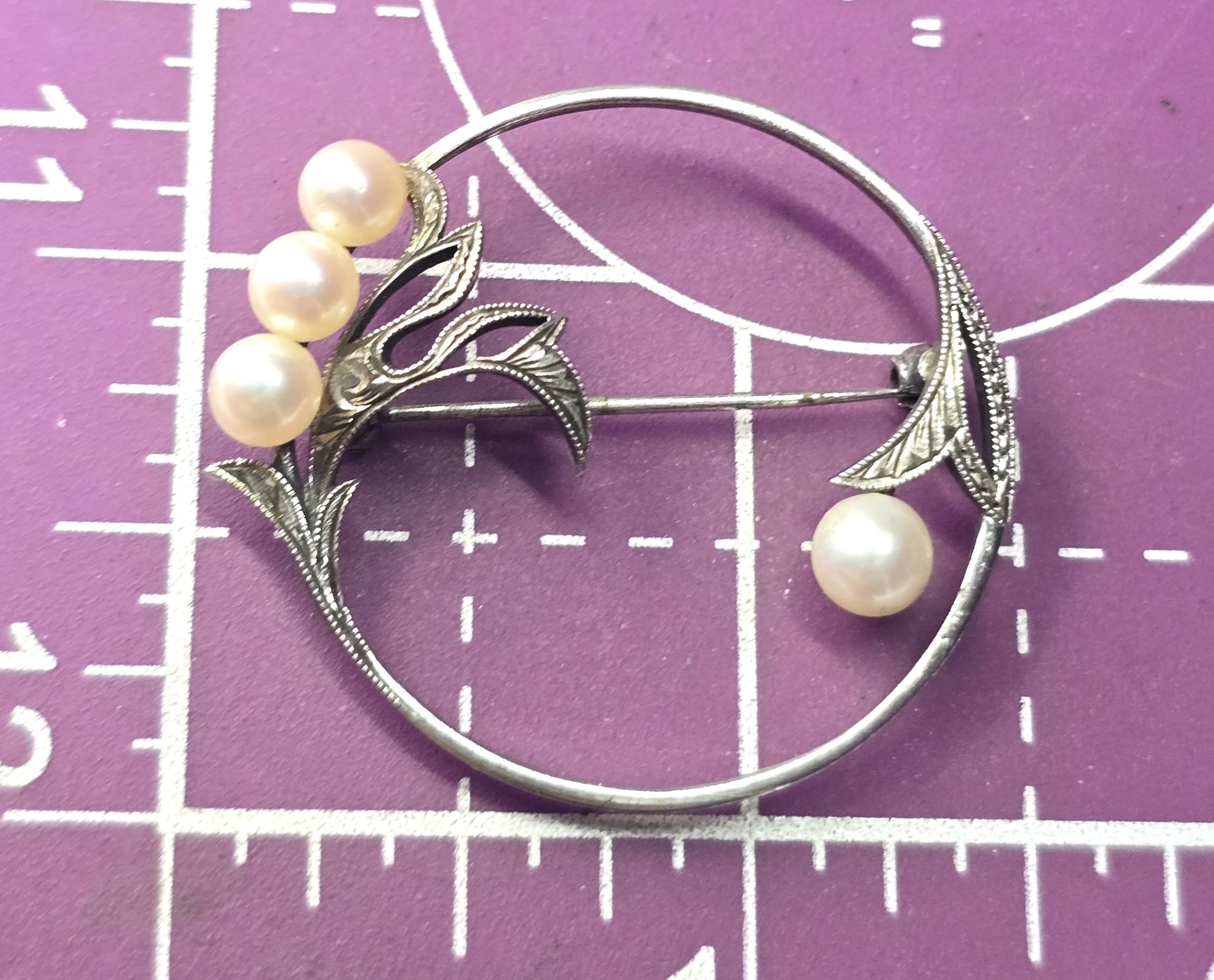 Mikimoto 4 Akoya Cultured Pearl flower vintage mid century sterling silver brooch