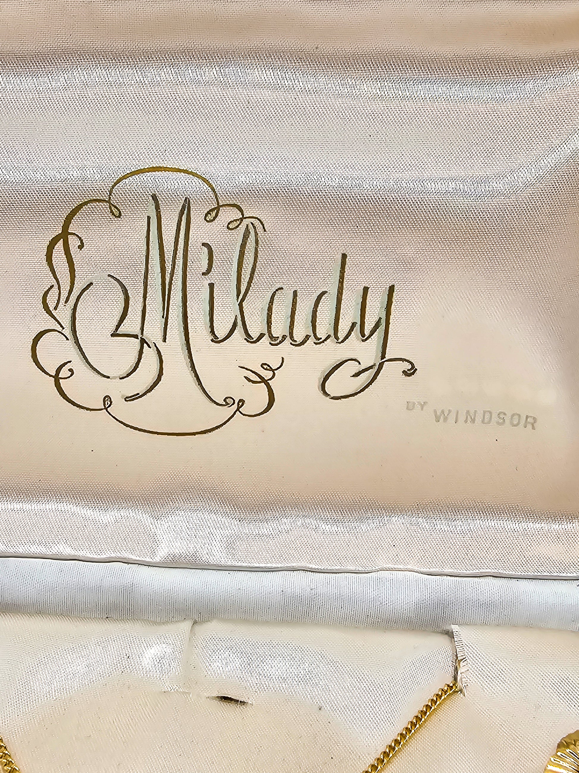 Milady Boxed gold Aurora Borealis vintage rhinestone earrings and necklace demi parure set