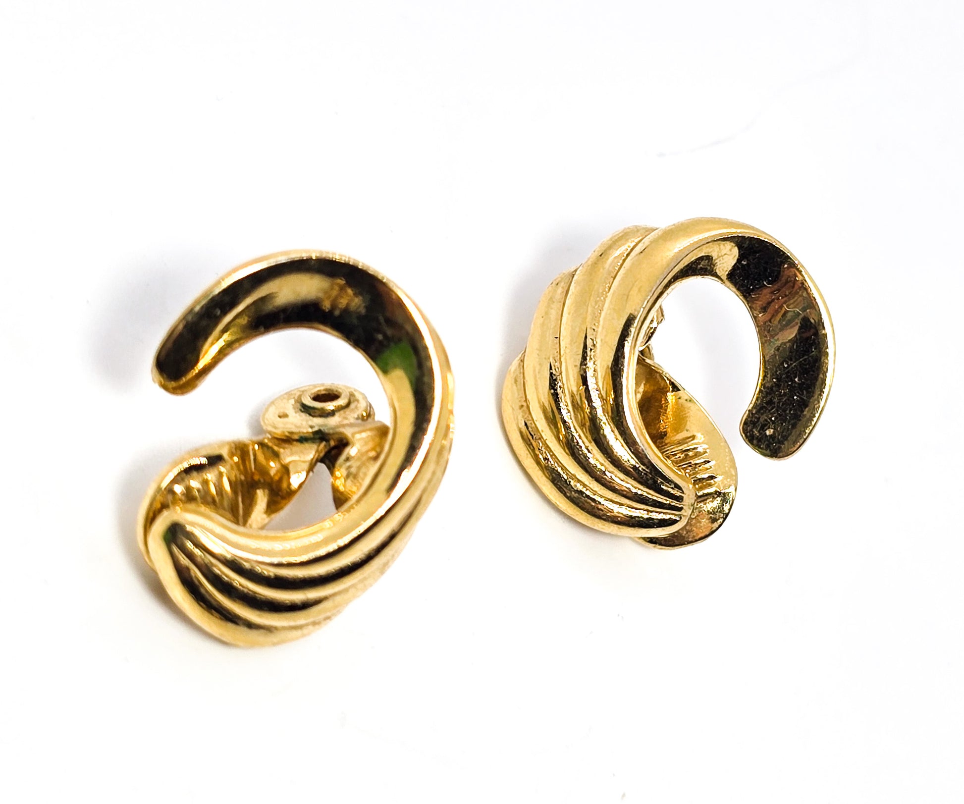 Monet gold toned vintage swirl 1980's retro clip on earrings
