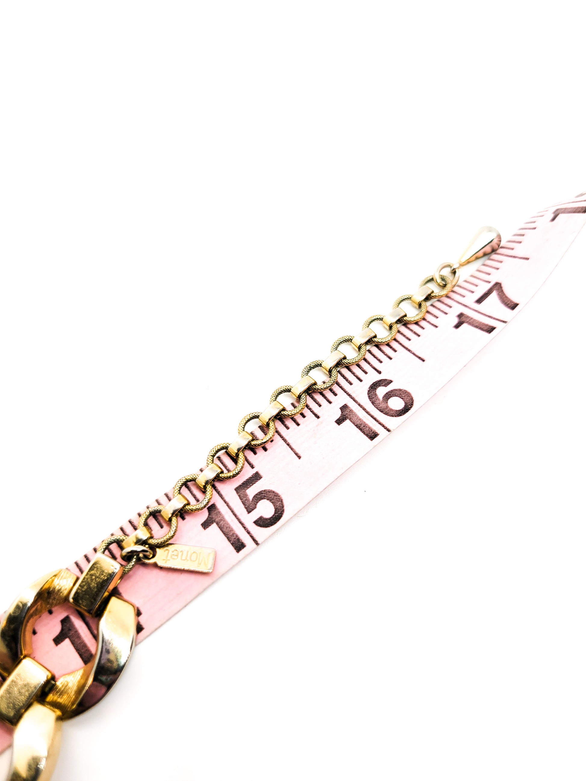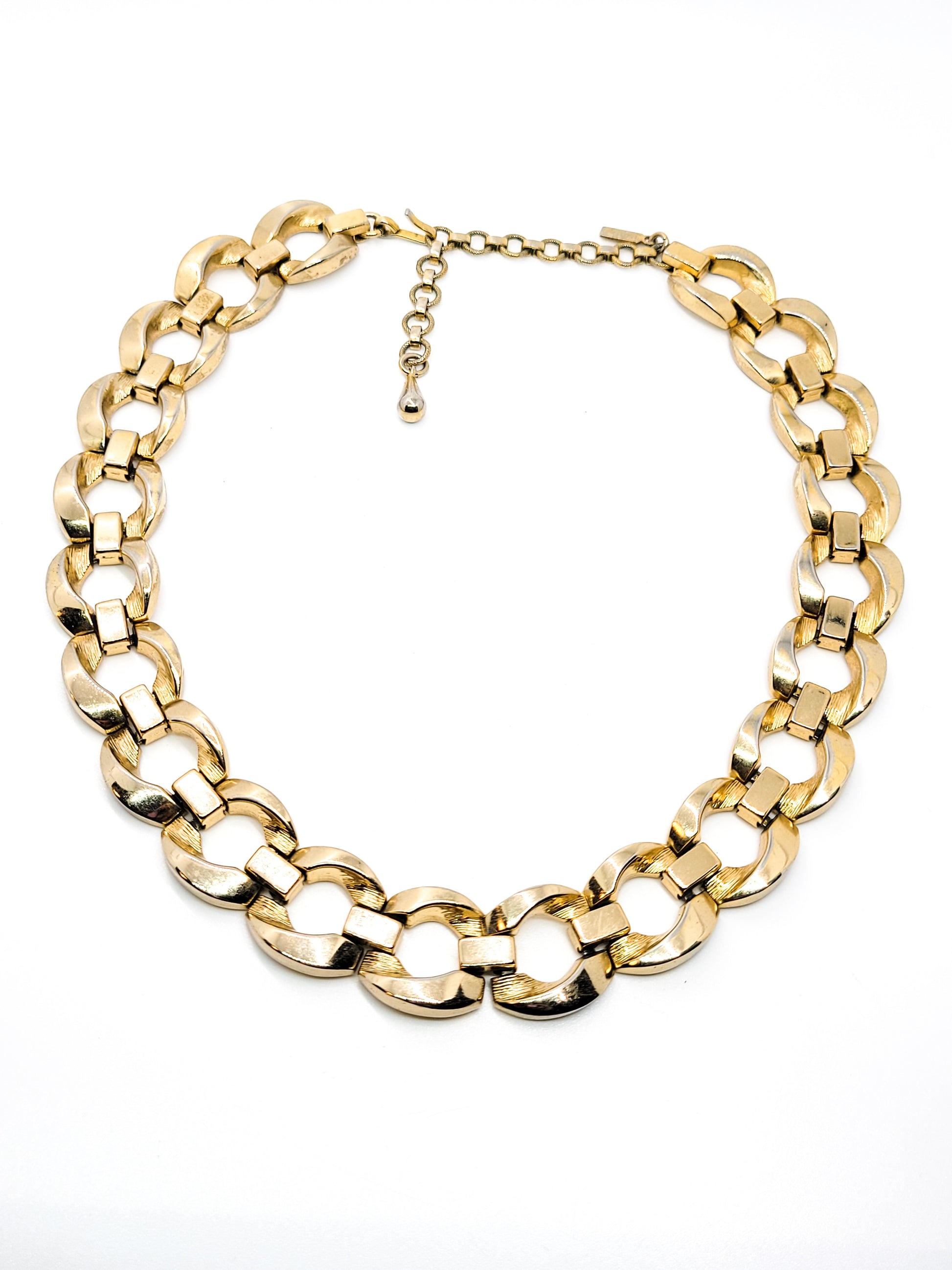 Monet signed vintage gold toned book chain linked necklace. Good vintage condition with little signs of normal vinage wear. Small hang tag signed Monet near the end. Adjustable hook fastening.