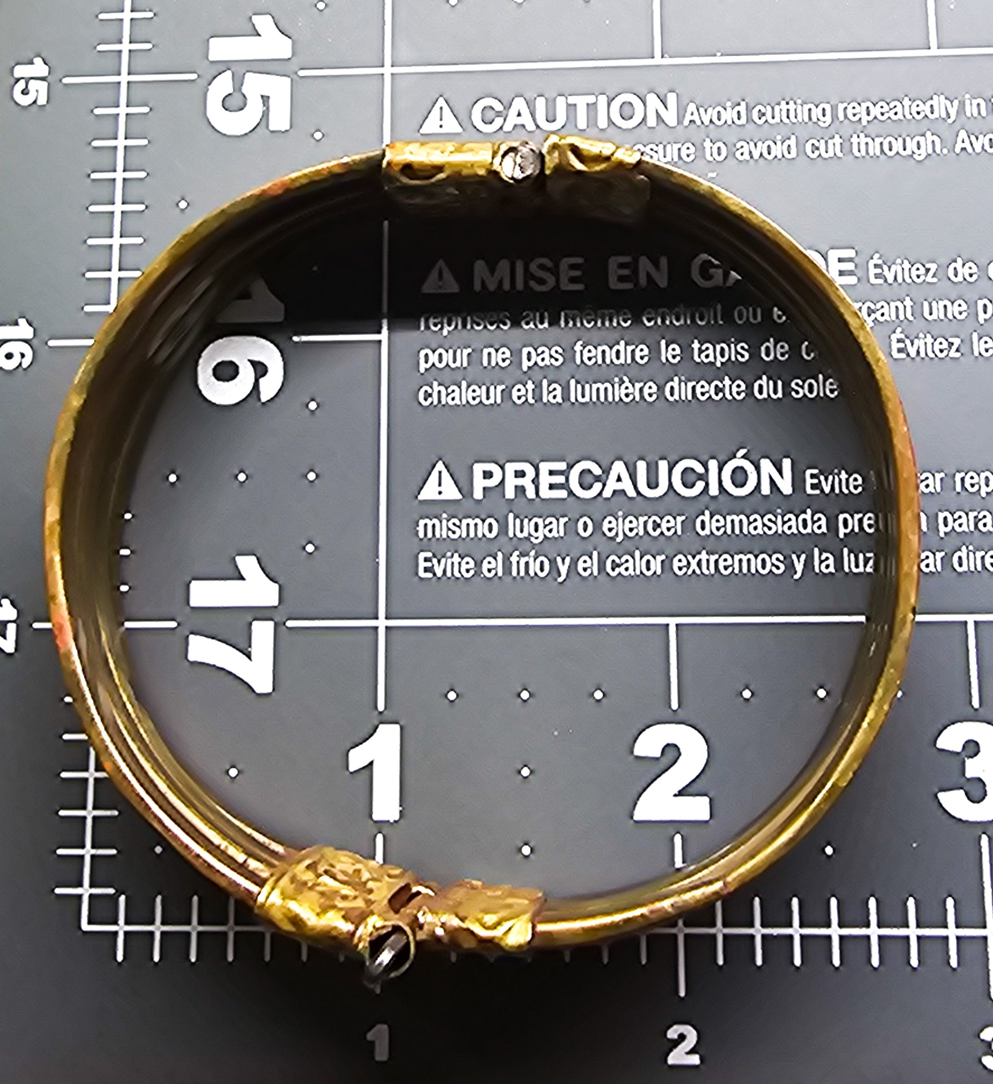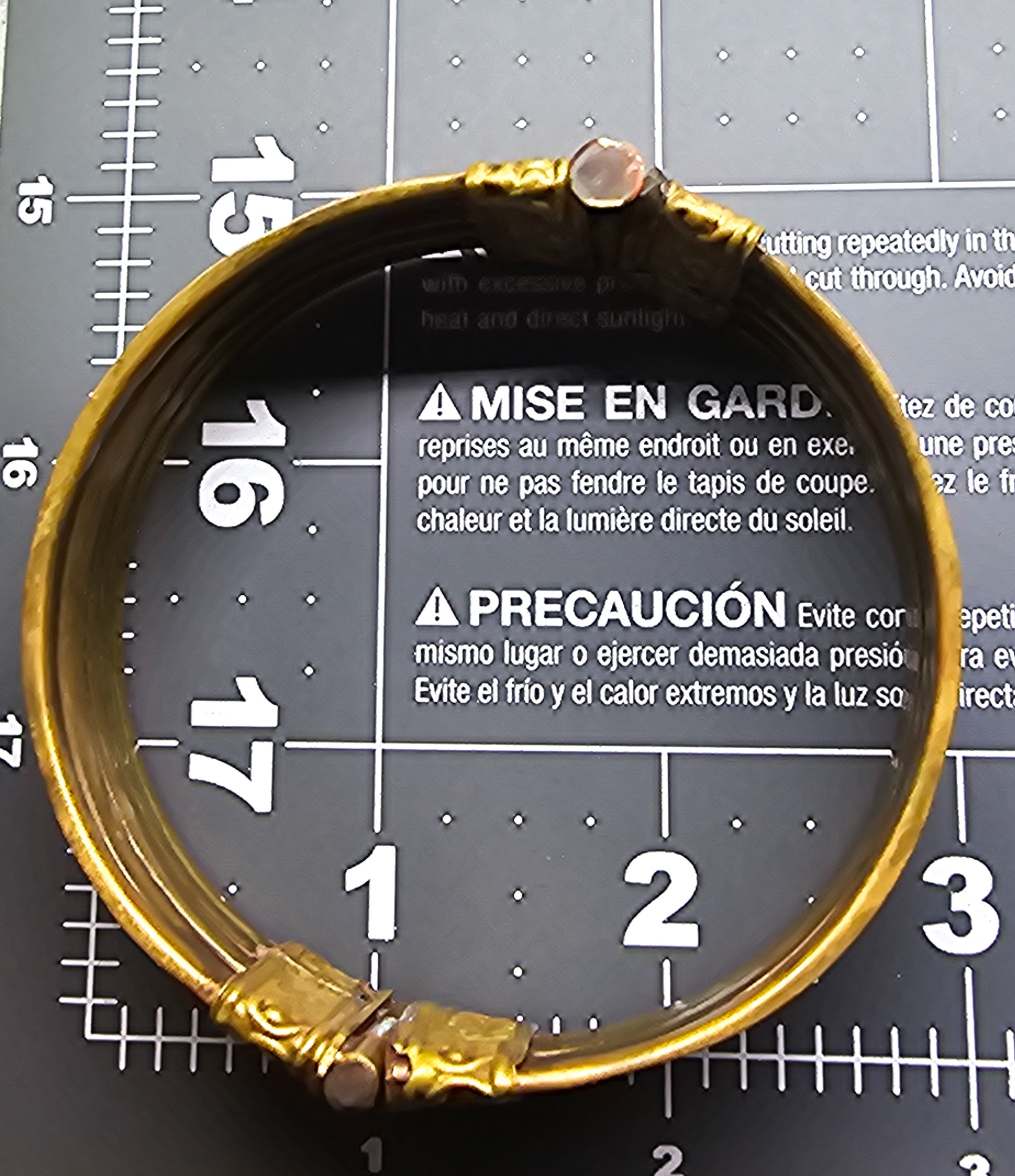 Small bracelet measures 3/4ths of an inch wide and 7 and 1/2 of an inch long