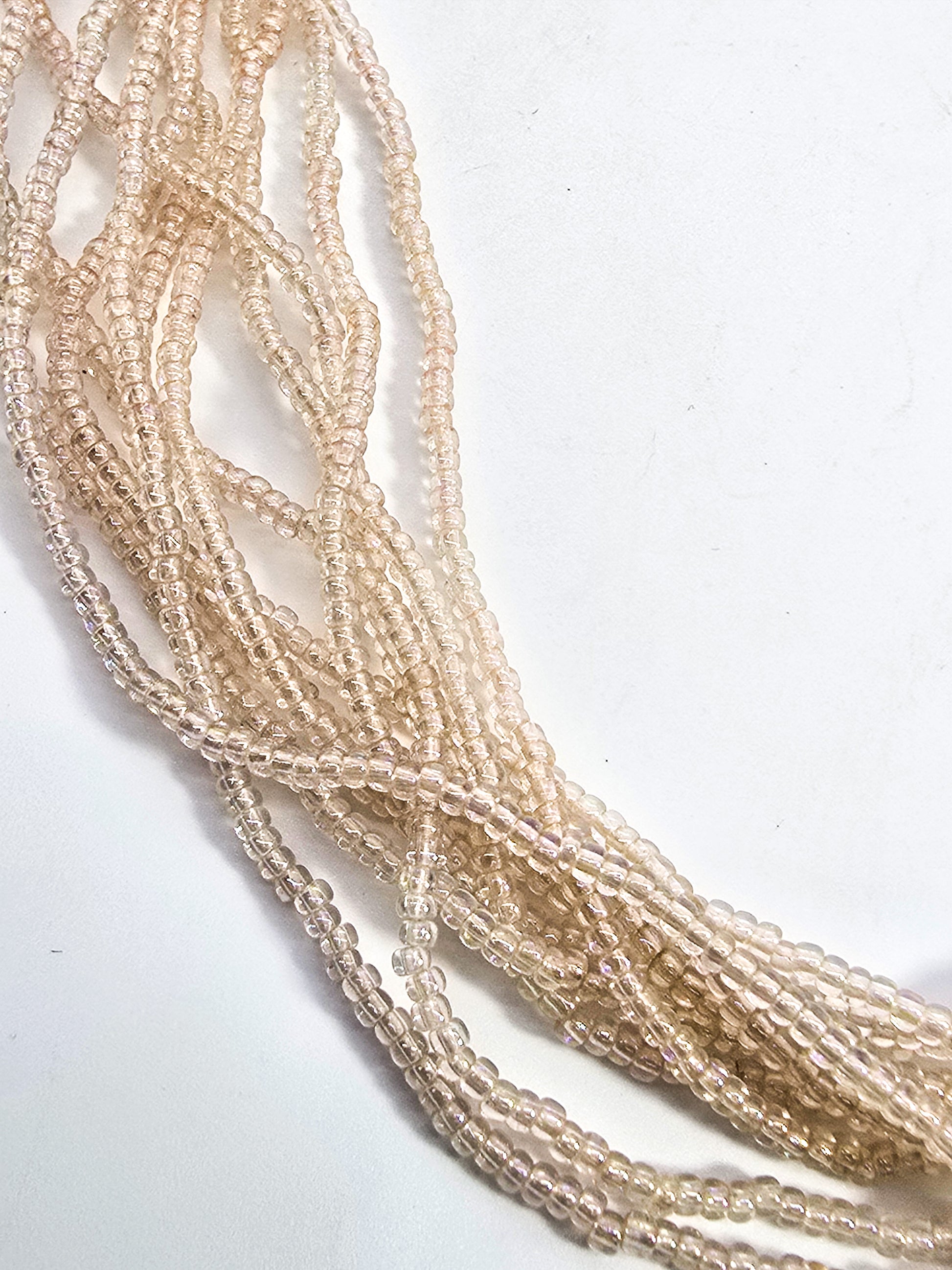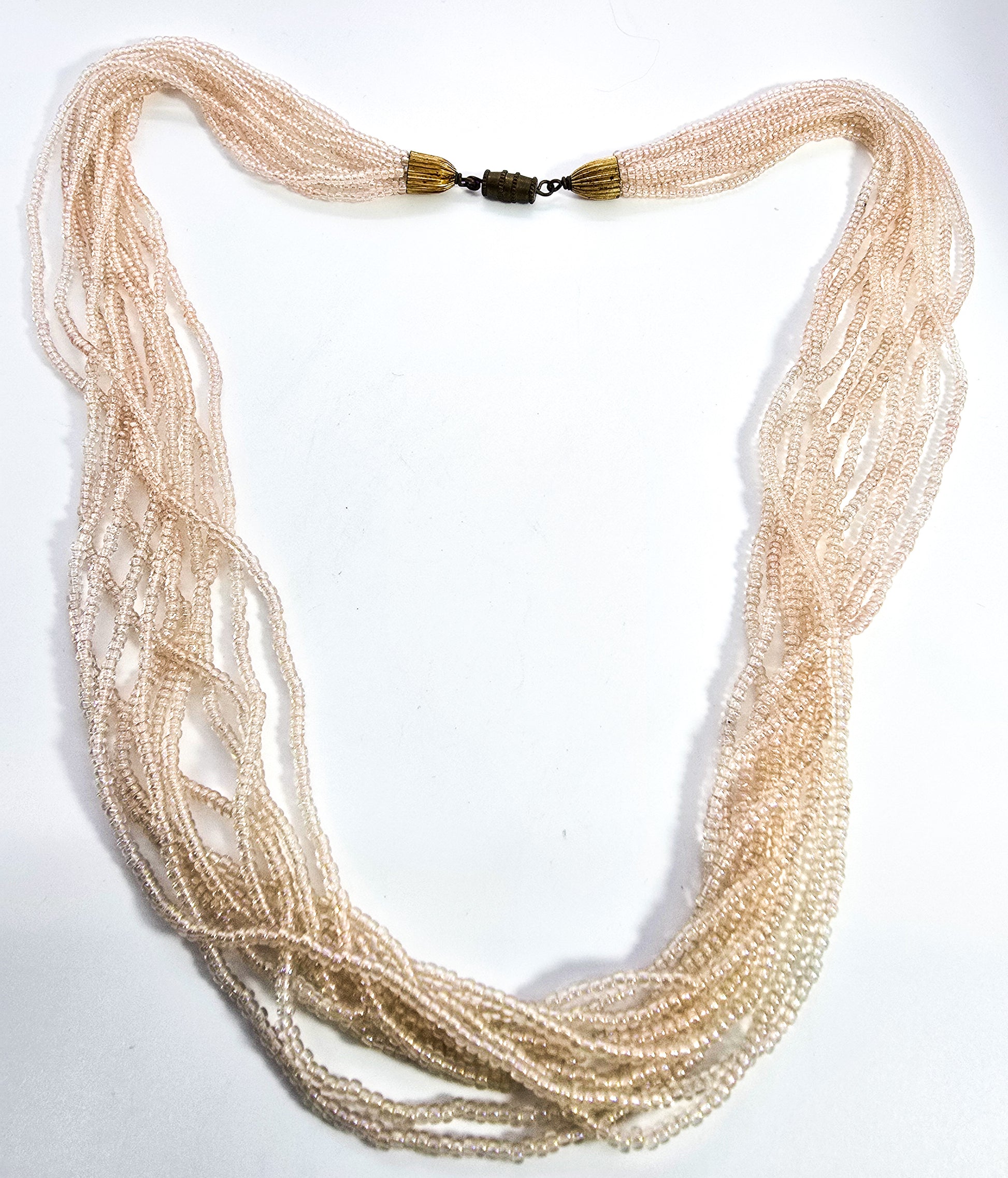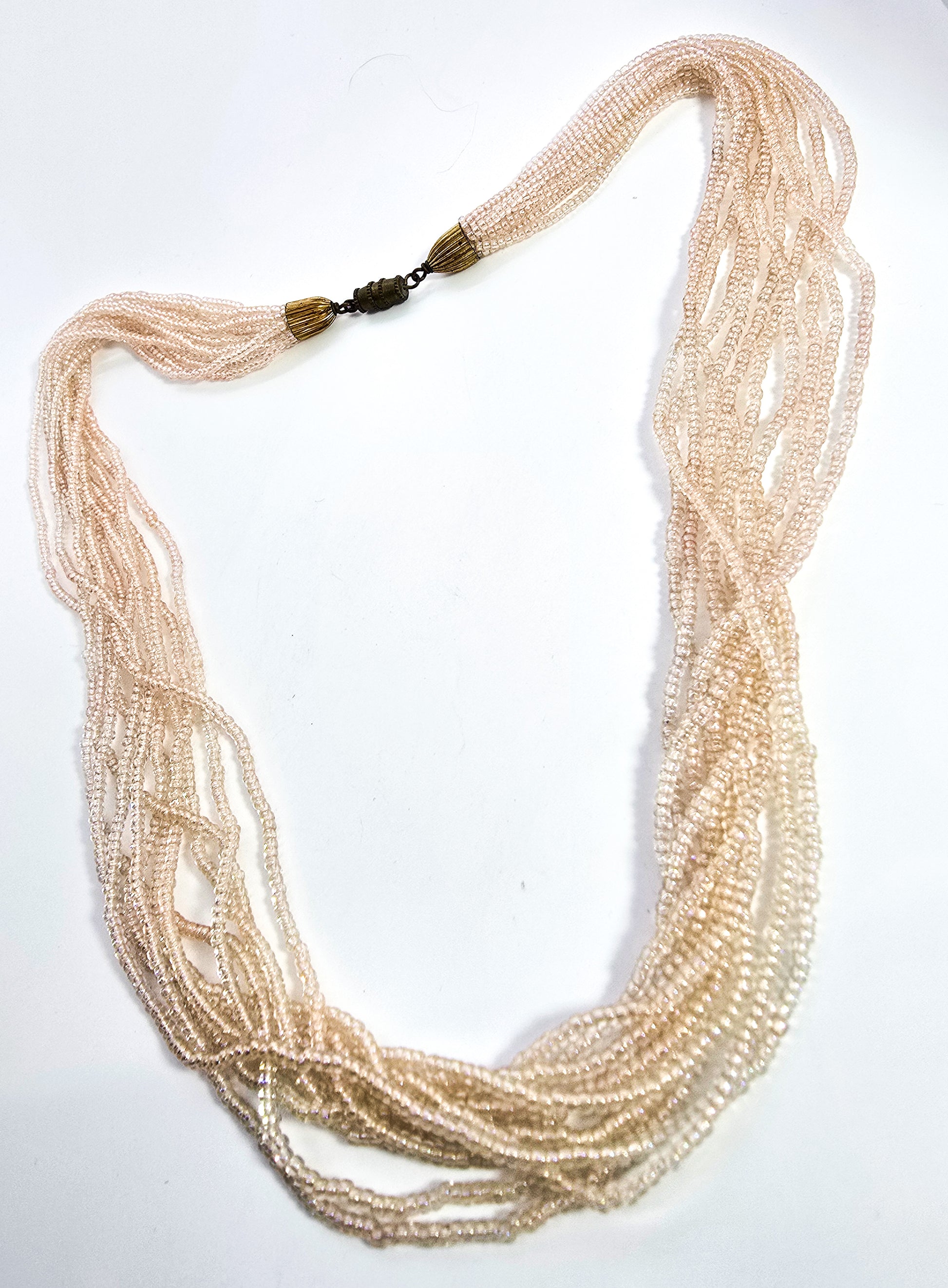 Multistrand Aurora Borealis cream seed bead 11 strand torsade necklace