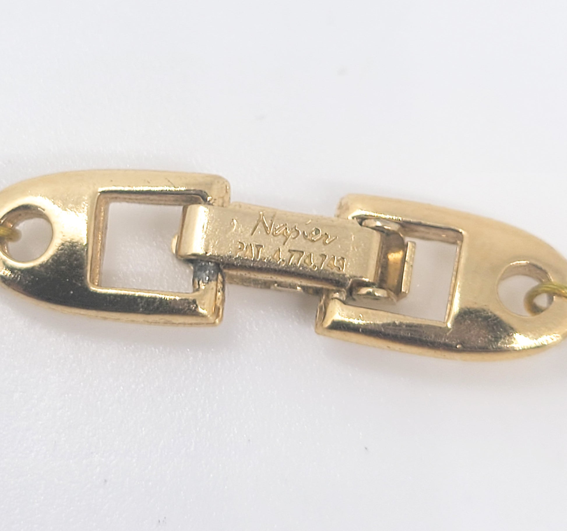 Napier Faux white pearl and Rose quartz vintage beaded necklace Great vintage condition with little to no signs of normal vintage wear. Faux white pearl necklace with graduated rose quartz beads and gold toned accents. Stamped Napier on the fold over clasp.