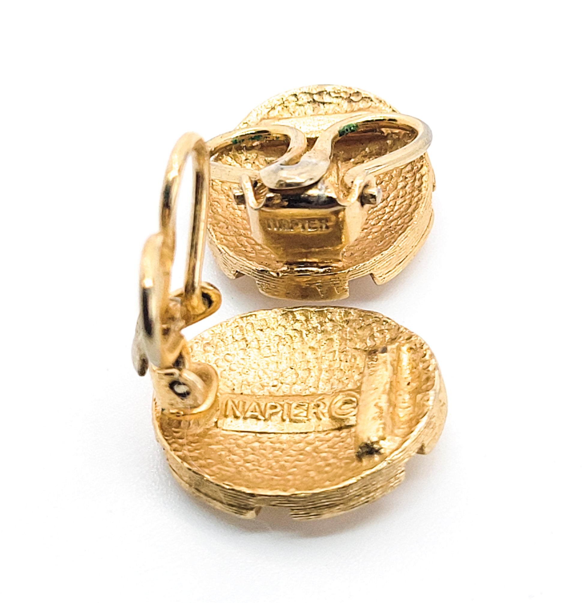 Napier Turtle shell vintage gold toned cluster signed clip on earrings. Good vintage condition with little to no signs of normal vintage wear. These earrings are signed on the reverse, clip and the bottom of the fastening.