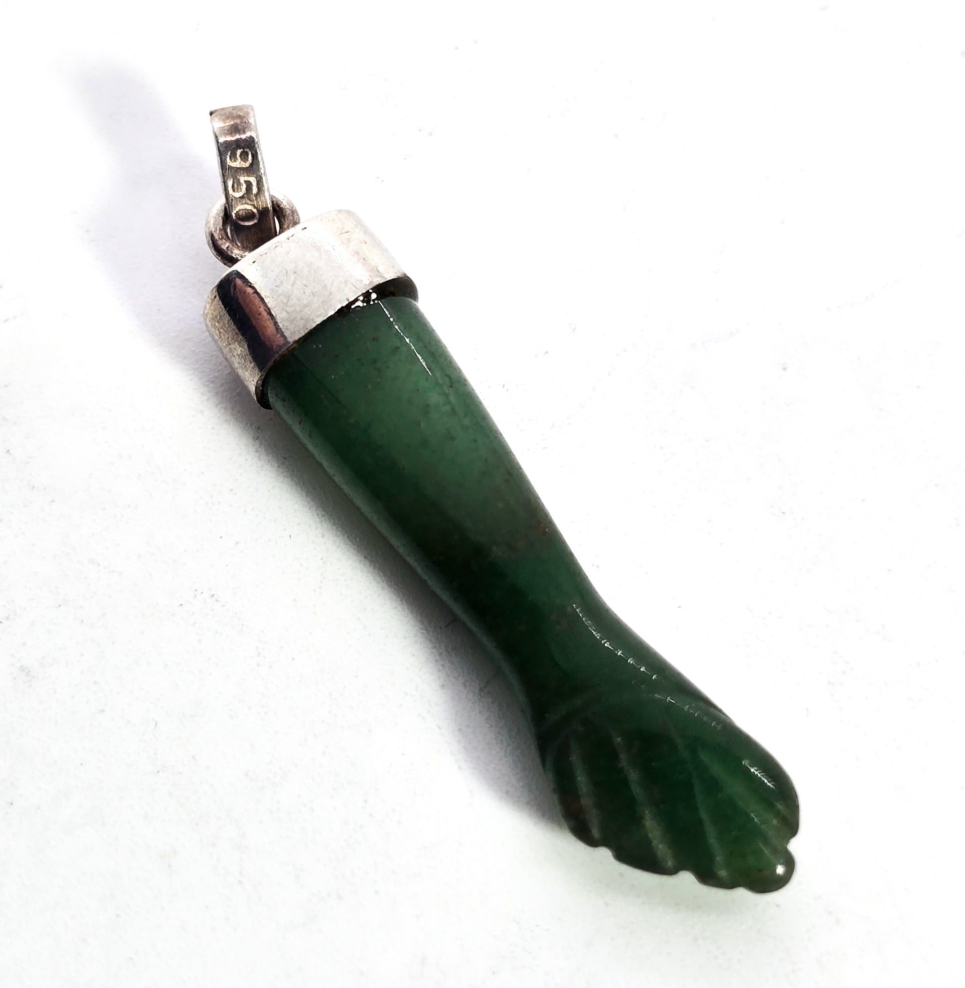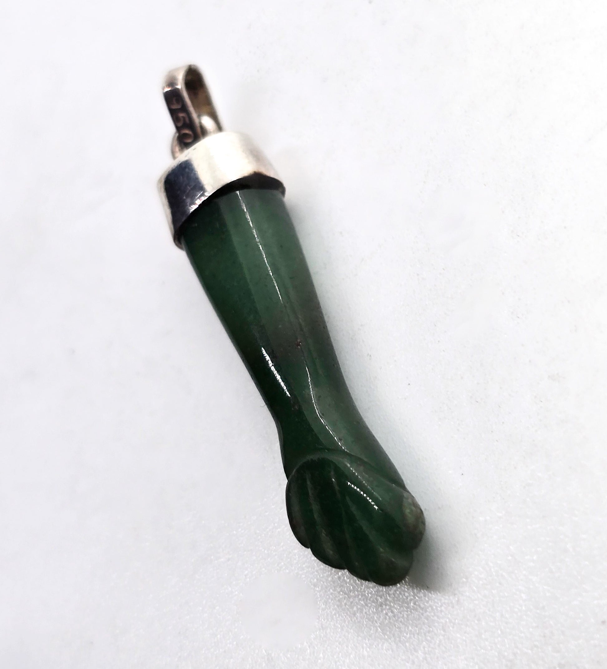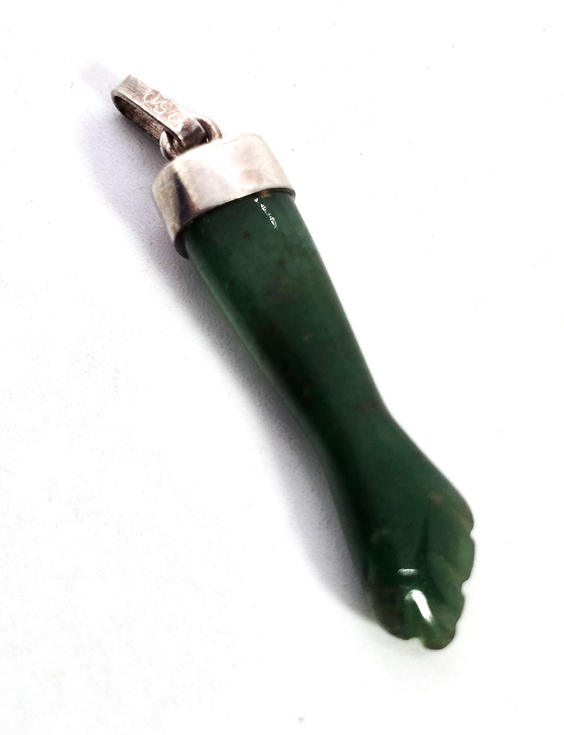 Nephrite Jade green gemstone Mano Figa 950 sterling silver vintage charm