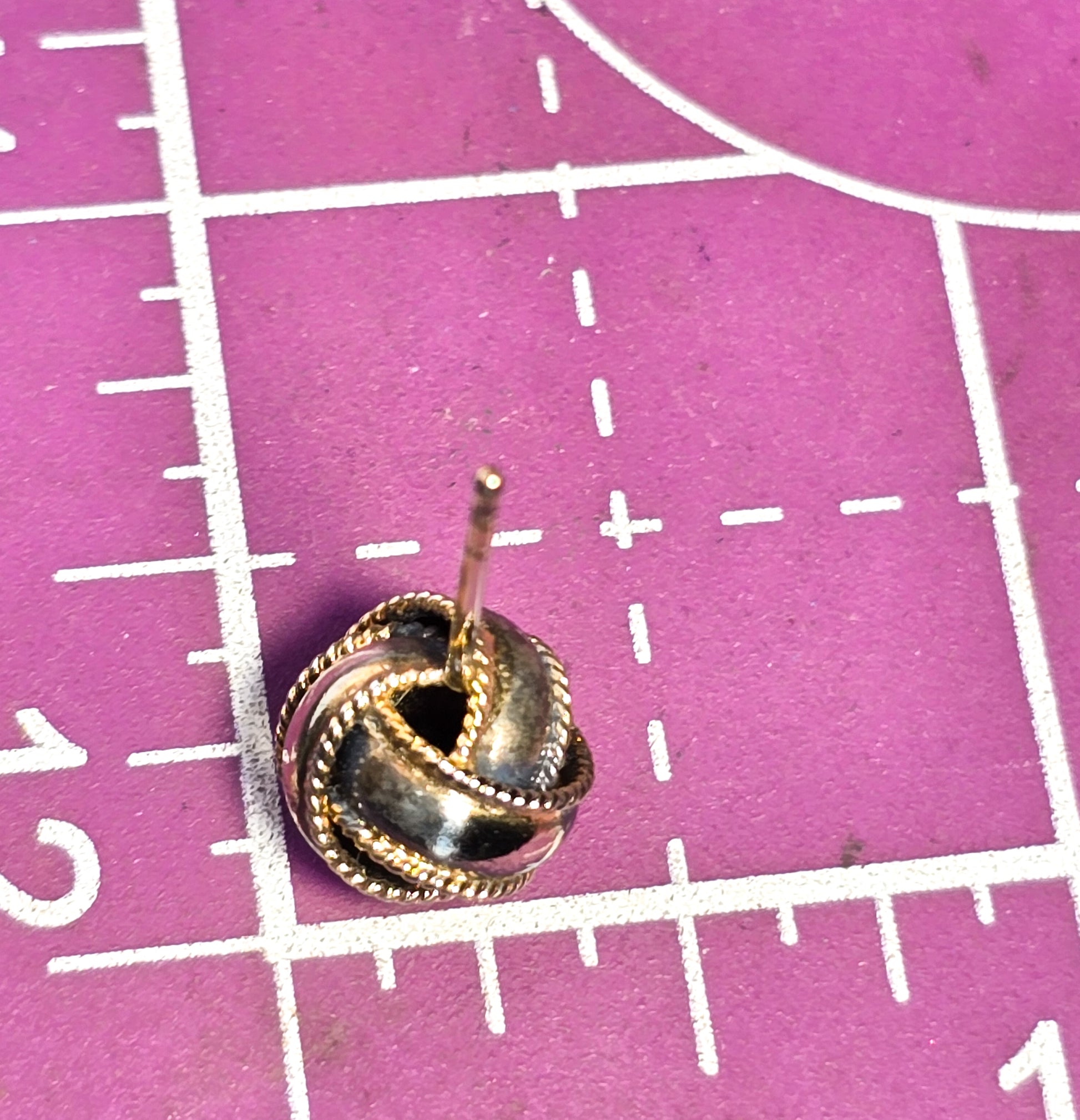 Never ending love knot silver plated etched vintage stud earrings Good used condition with little to no signs of normal wear. There is no beginning or end to the lovers knot. Stud post fastening. All post earrings come with new sterling silver butterfly earring backings.