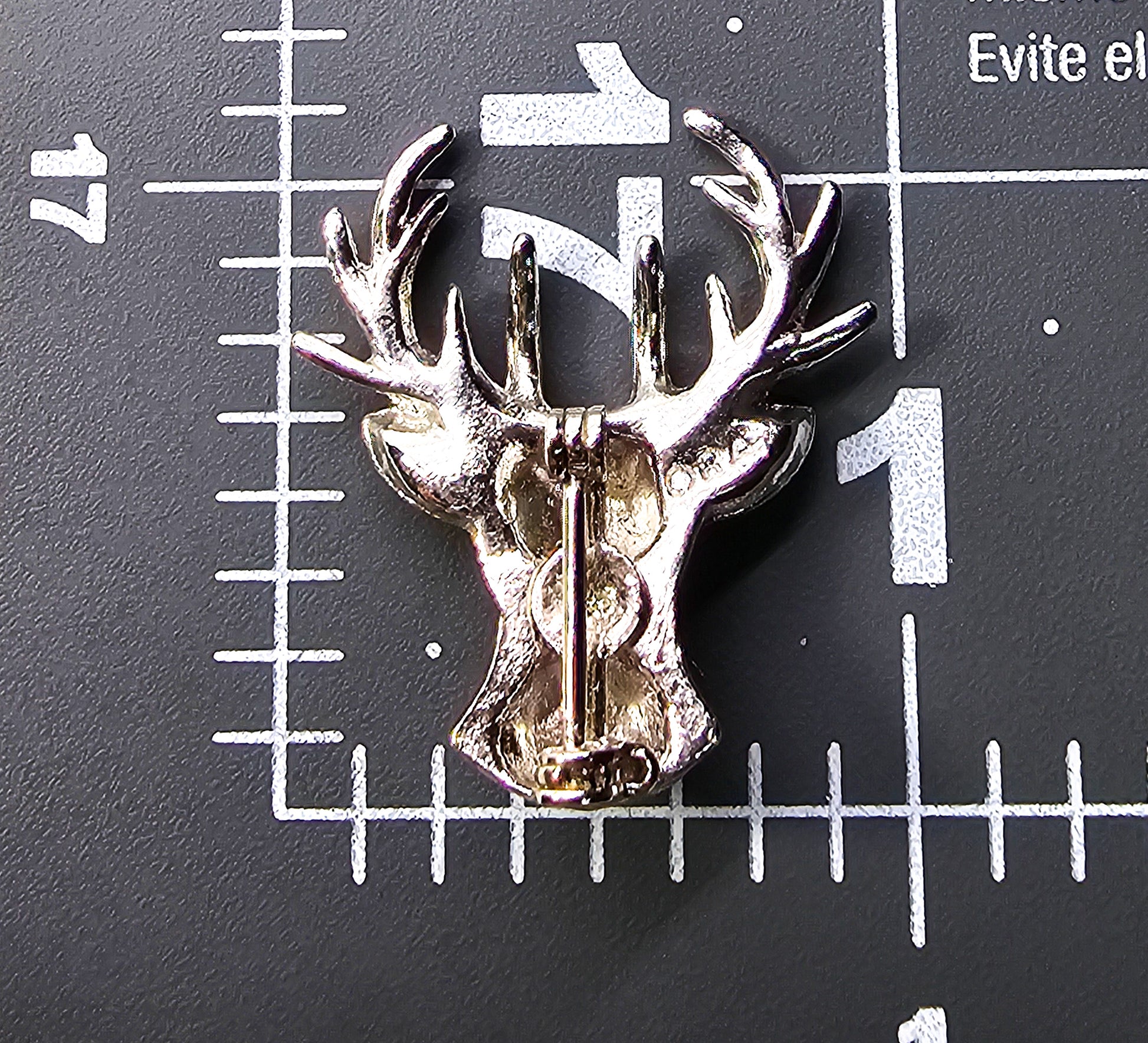 Brooch measures 1 and 1/8th of an inch tall and 15/16ths of an inch wide.