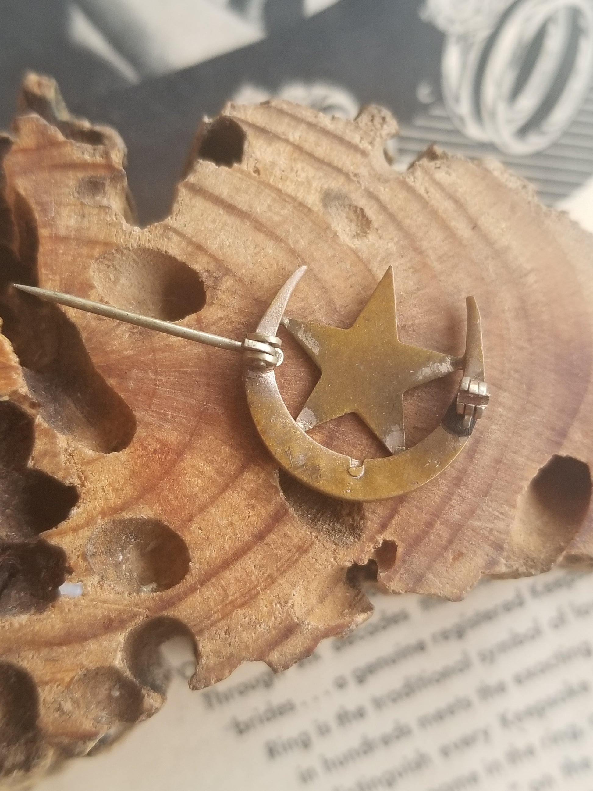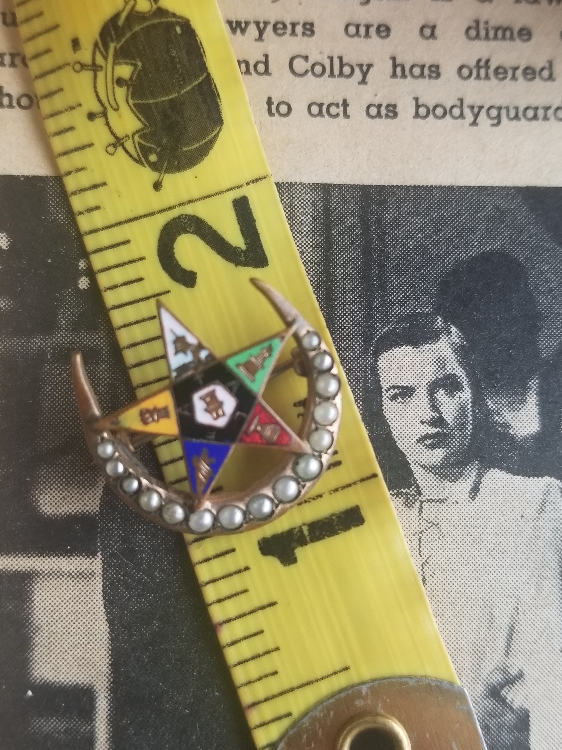 Order of the Eastern star Freemason seed pearl crescent moon gold filled brooch enamel pin