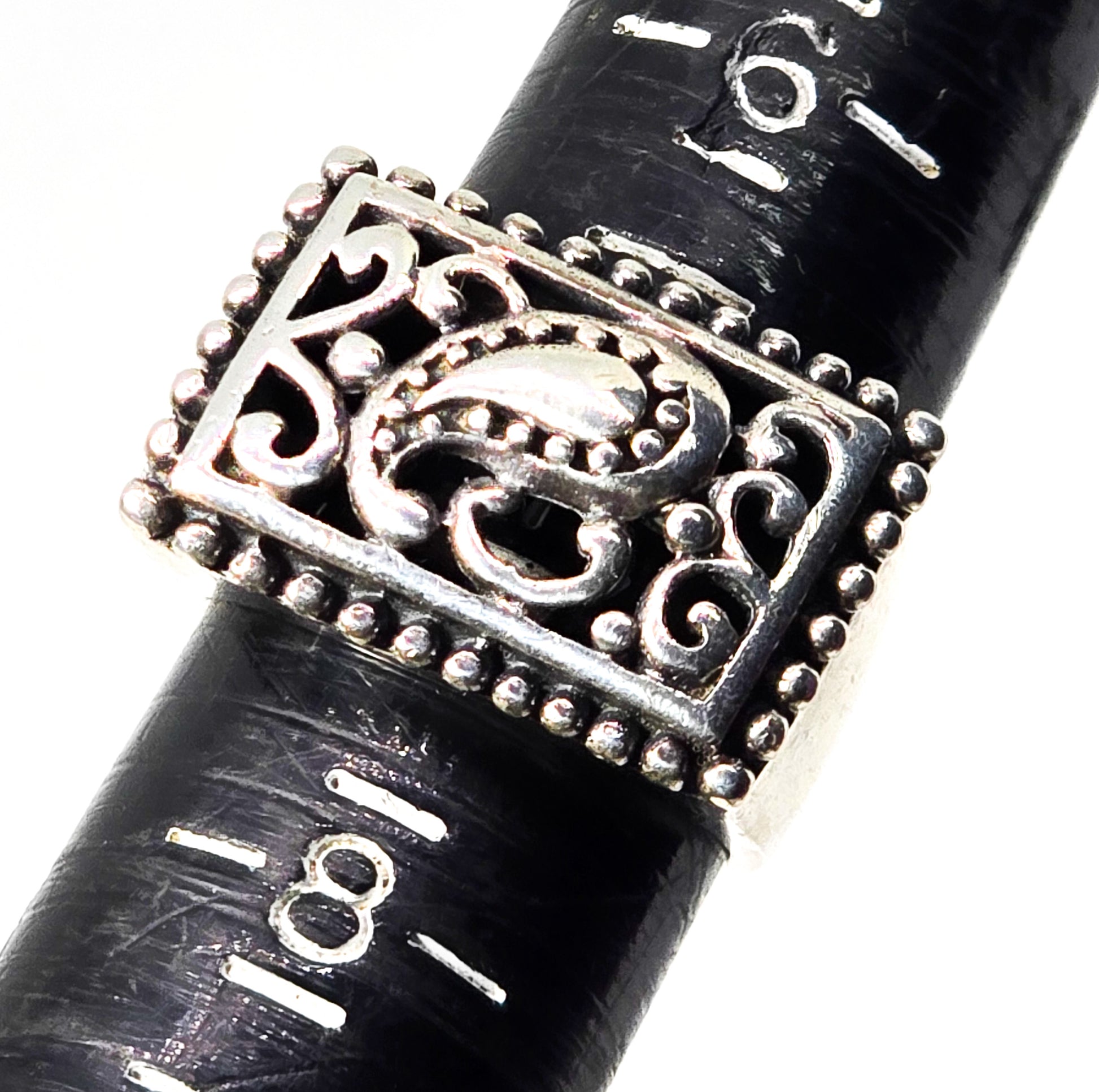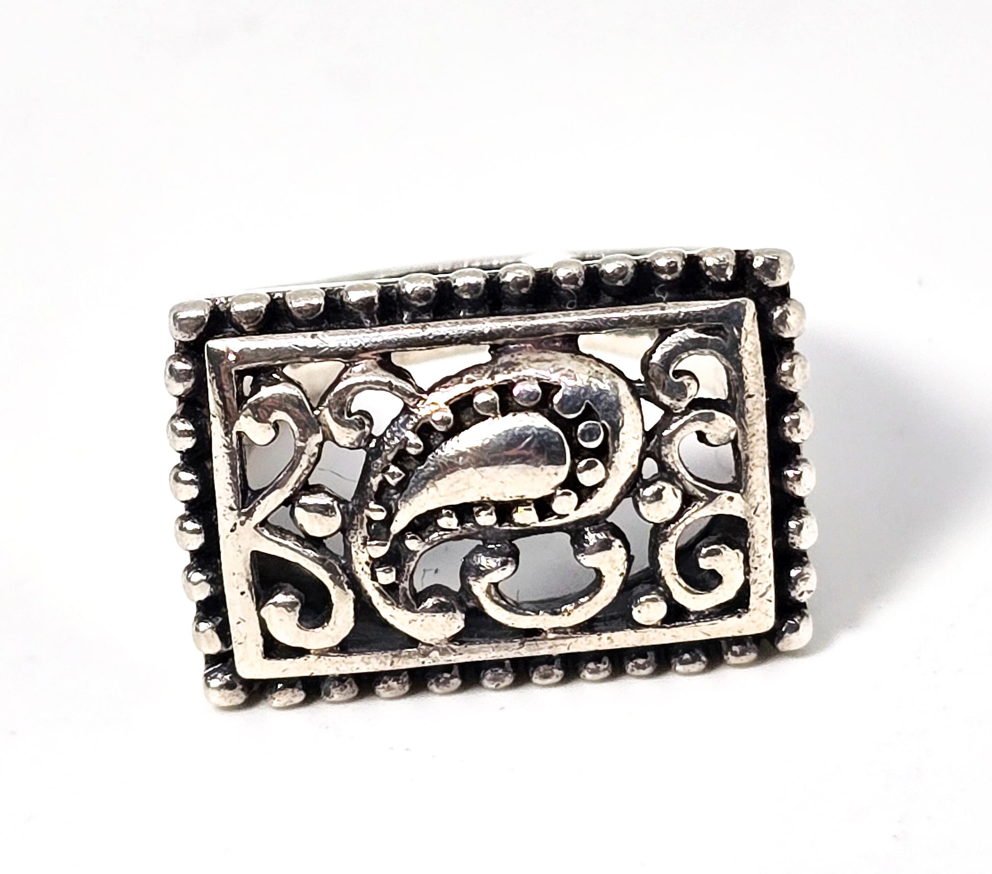 Paisley Scroll Design open large Sterling Silver NF Plaque Ring Size 7