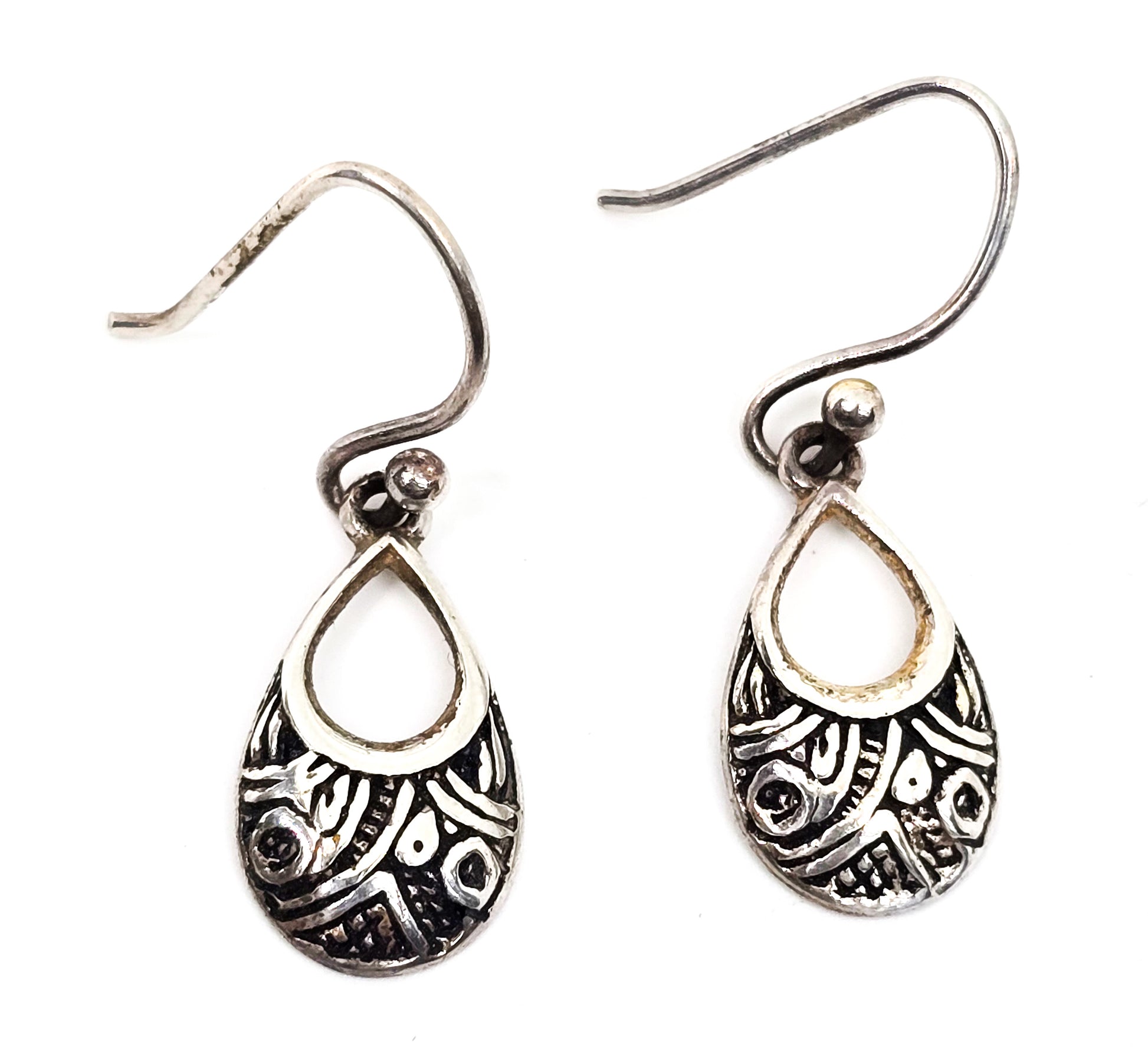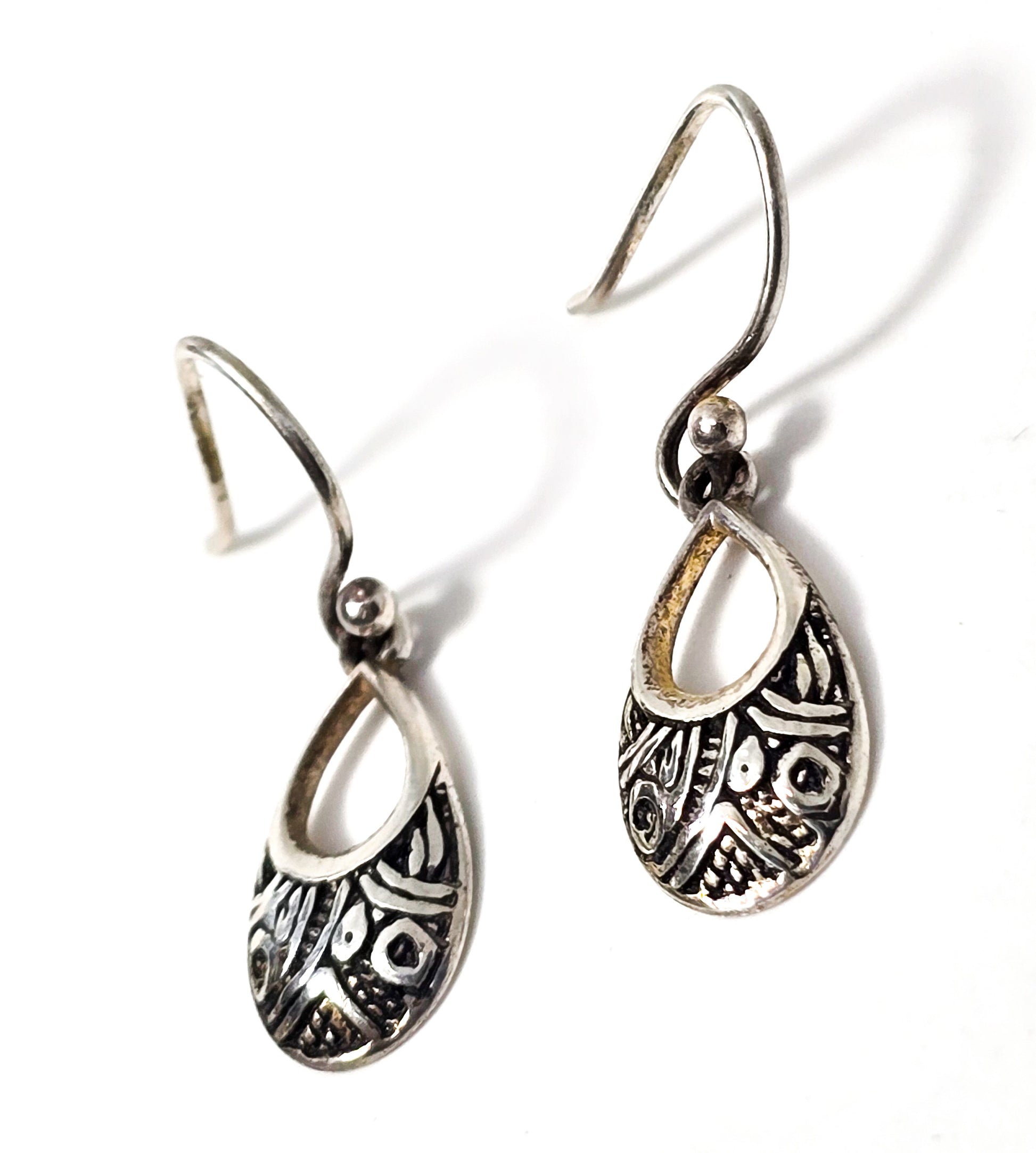 Petite small Balinese Tribal LA vintage sterling silver signed drop earrings. Good vintage condition with little to no signs of normal vintage wear. Stamped on the reverse 925 LA.