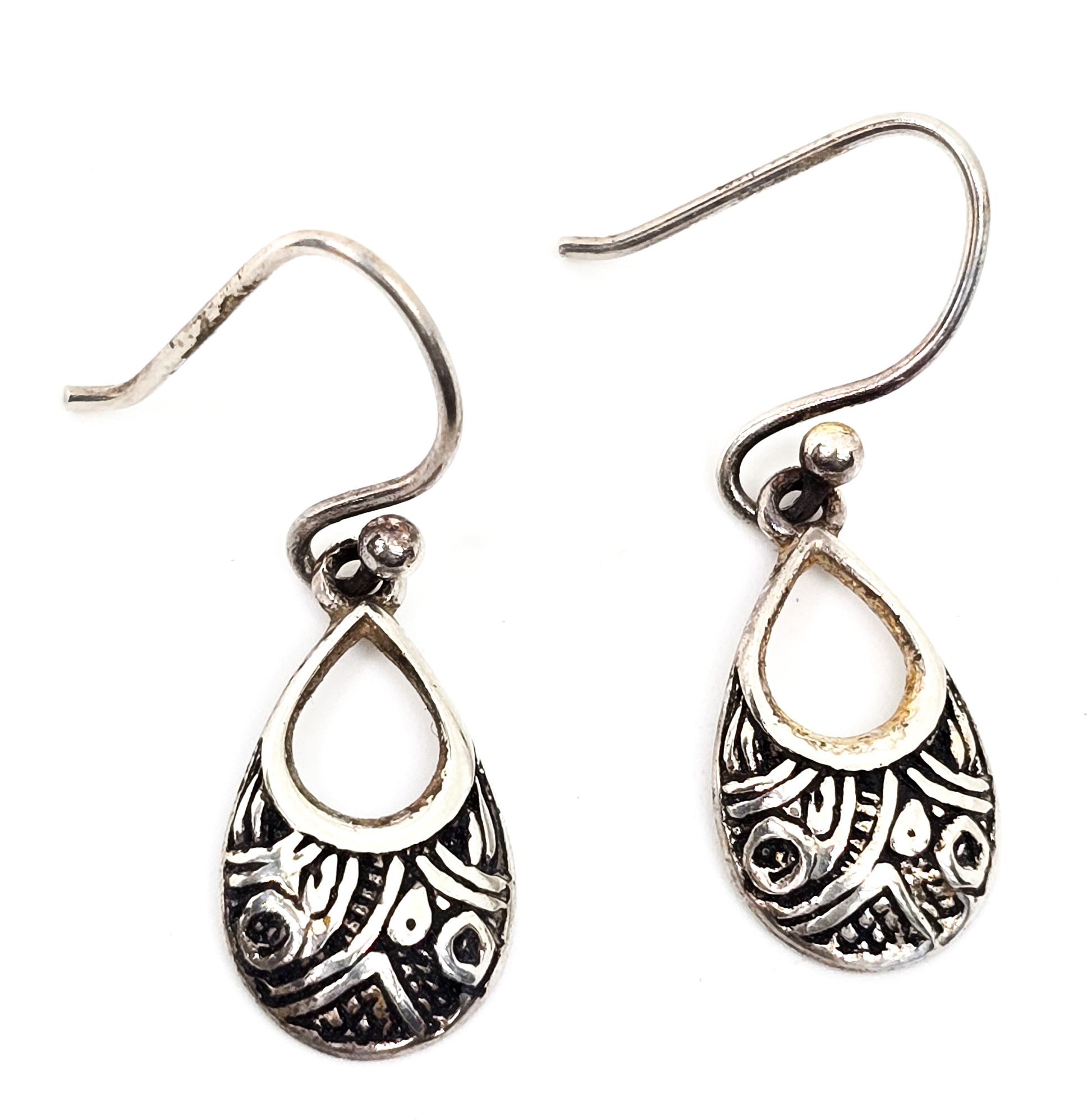 Petite small Balinese Tribal LA vintage sterling silver signed drop earrings