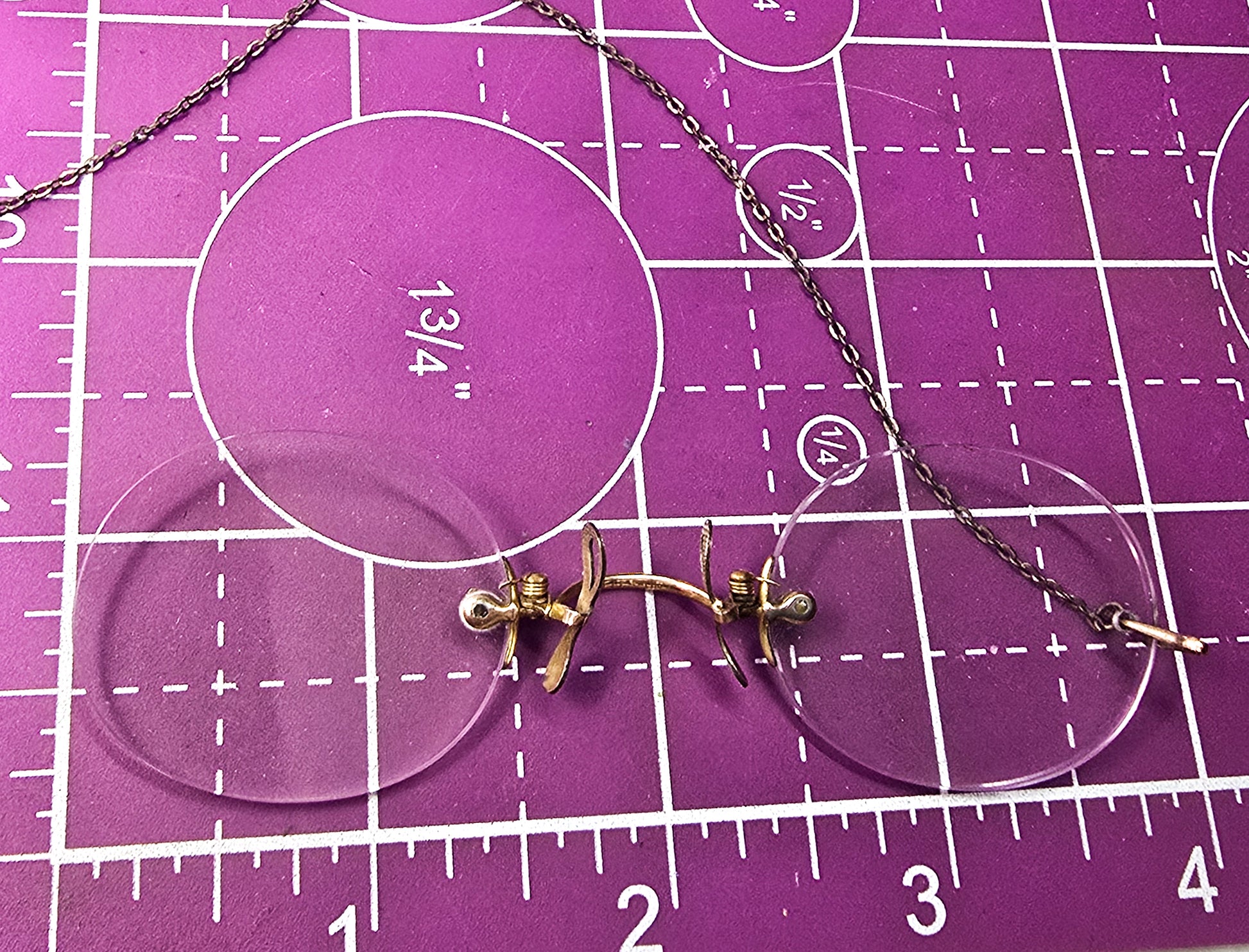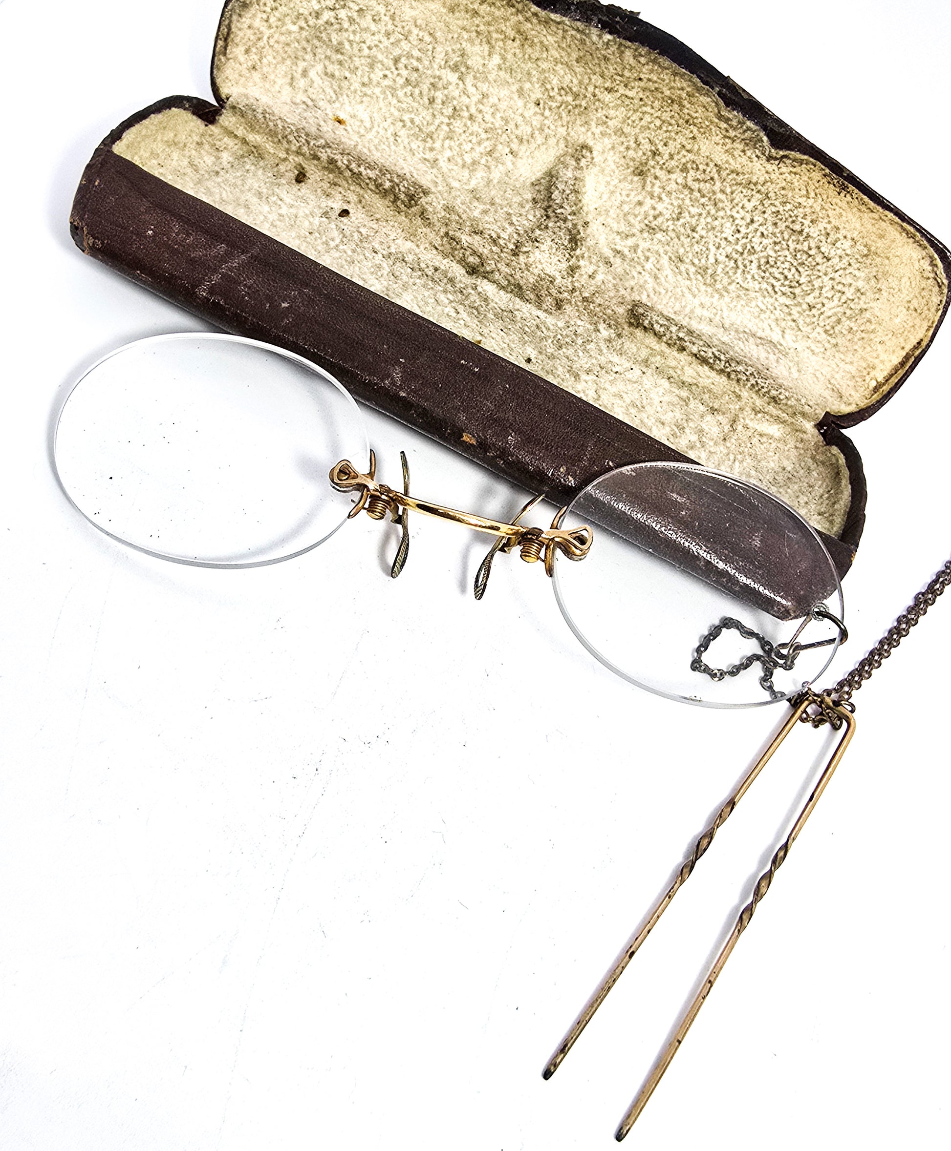 Pince-nez Victorian 1800's glasses "Fits U" gold filled with hair pick and metal case