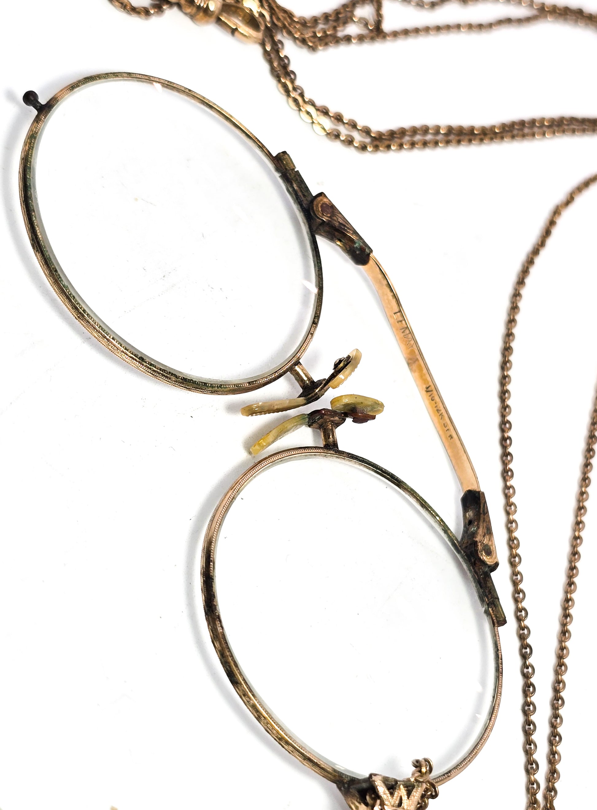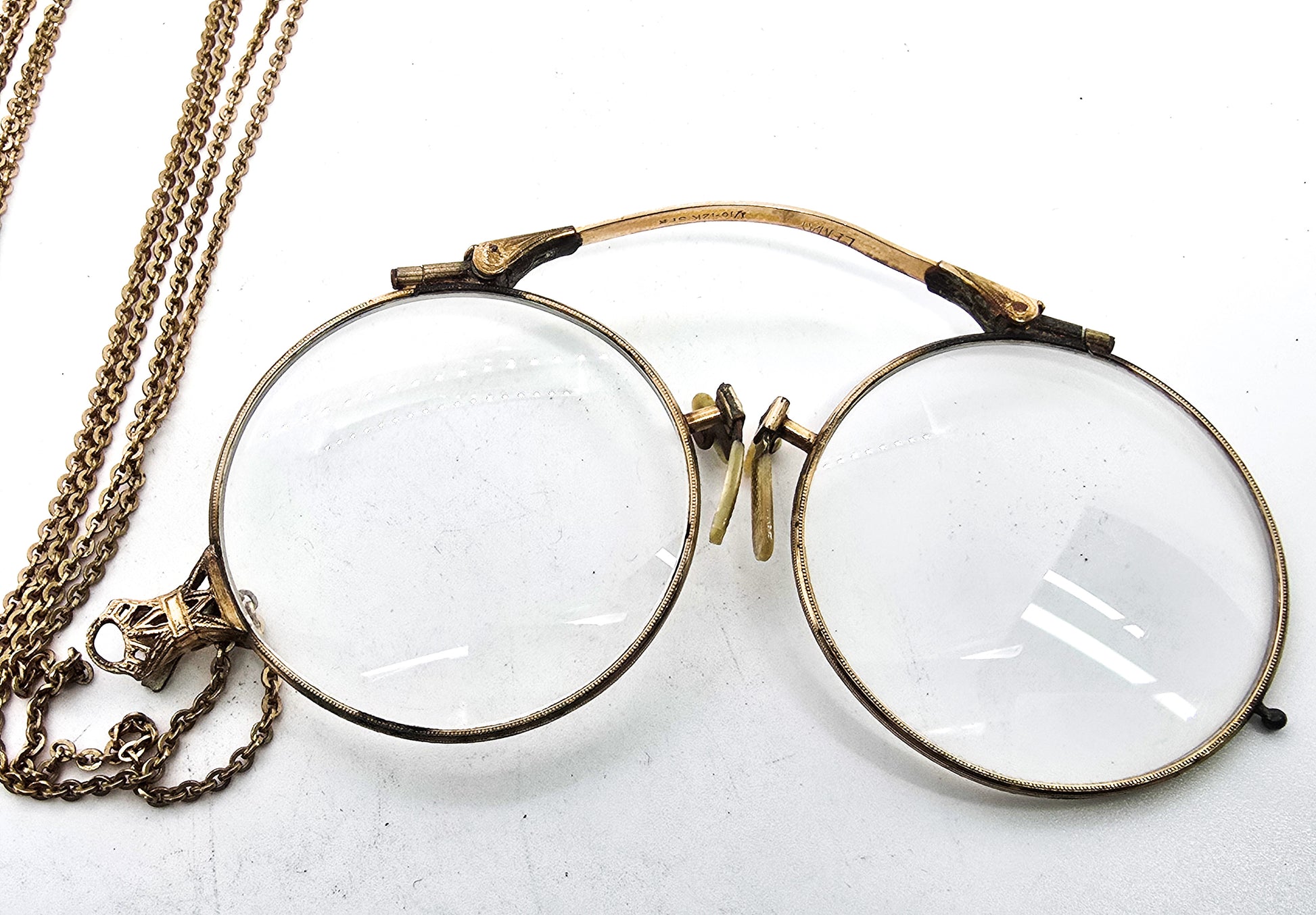 Suzy Lemay Pince-nez Victorian 1800's glasses 12k gold filled with fob chain