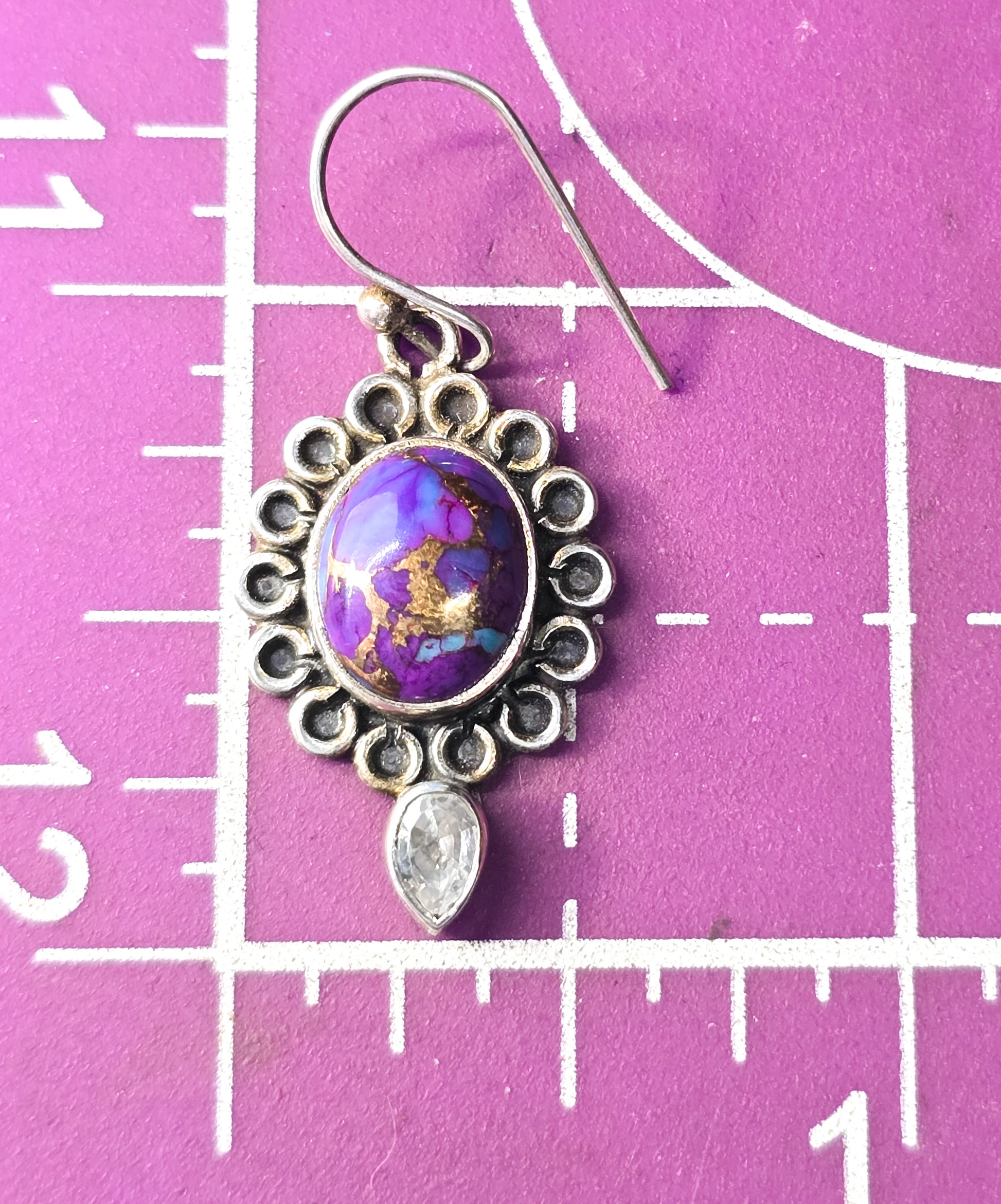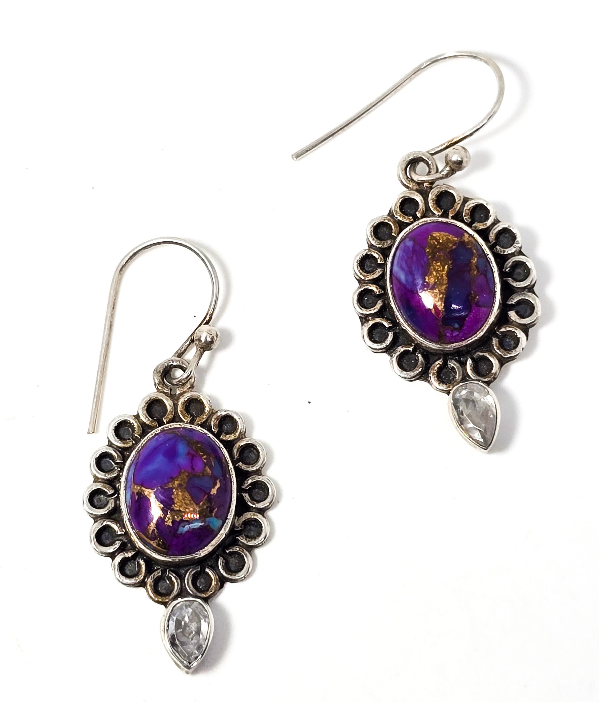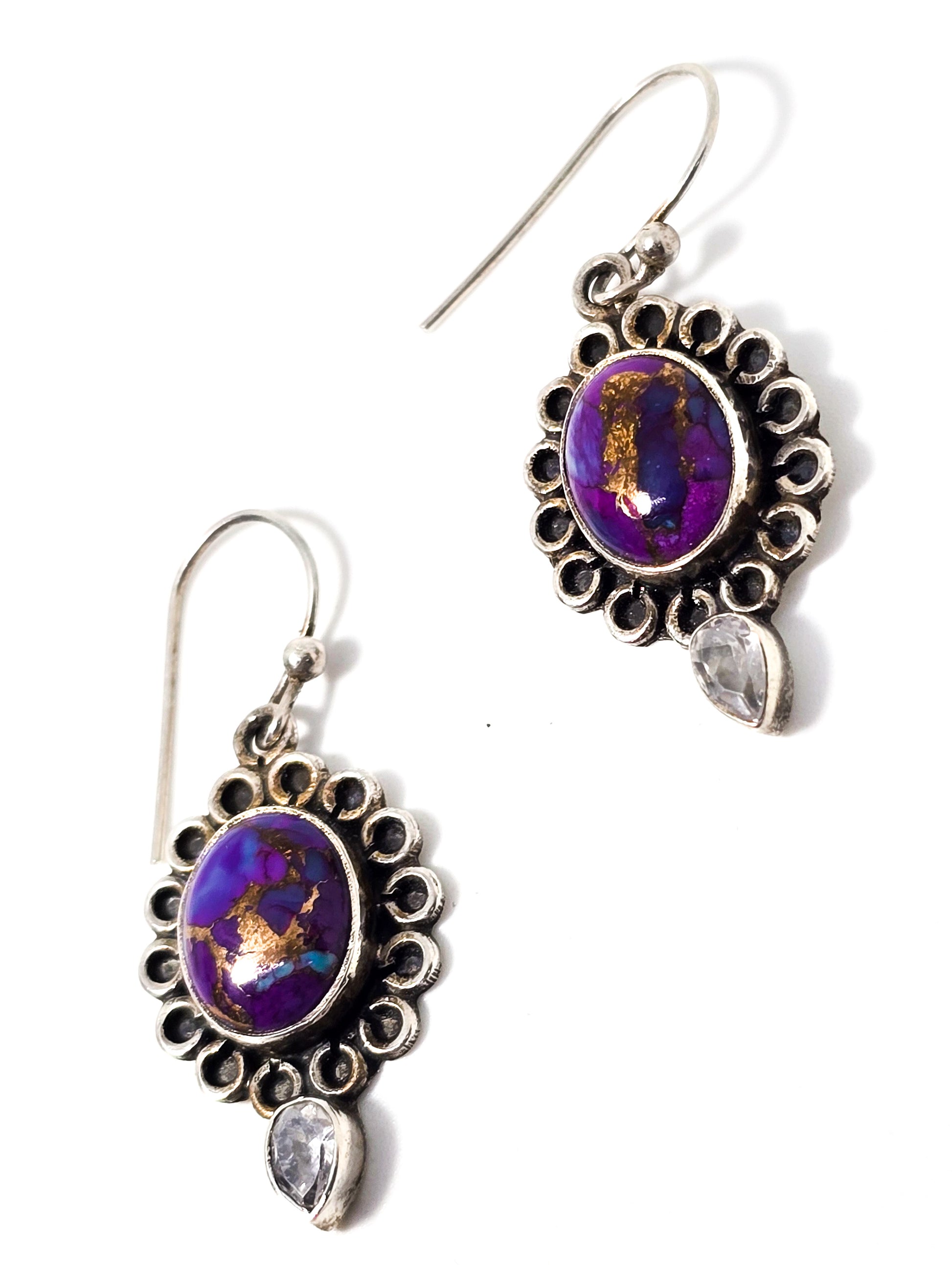 Purple copper mojave turquoise Cubic zirconia CZ gemstone sterling silver earrings . Good used condition with little to no signs of normal vintage wear. Stamped 925 on the back of the earrings.