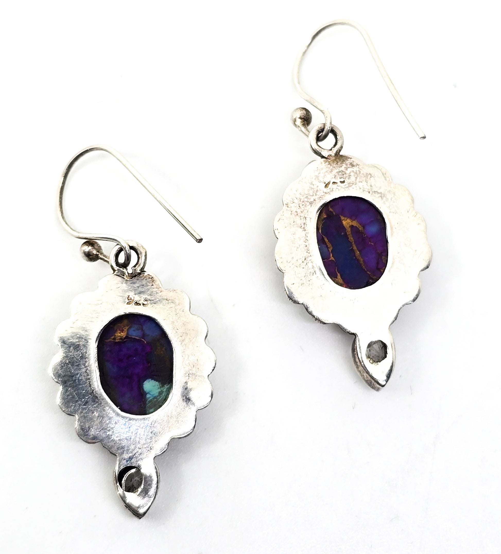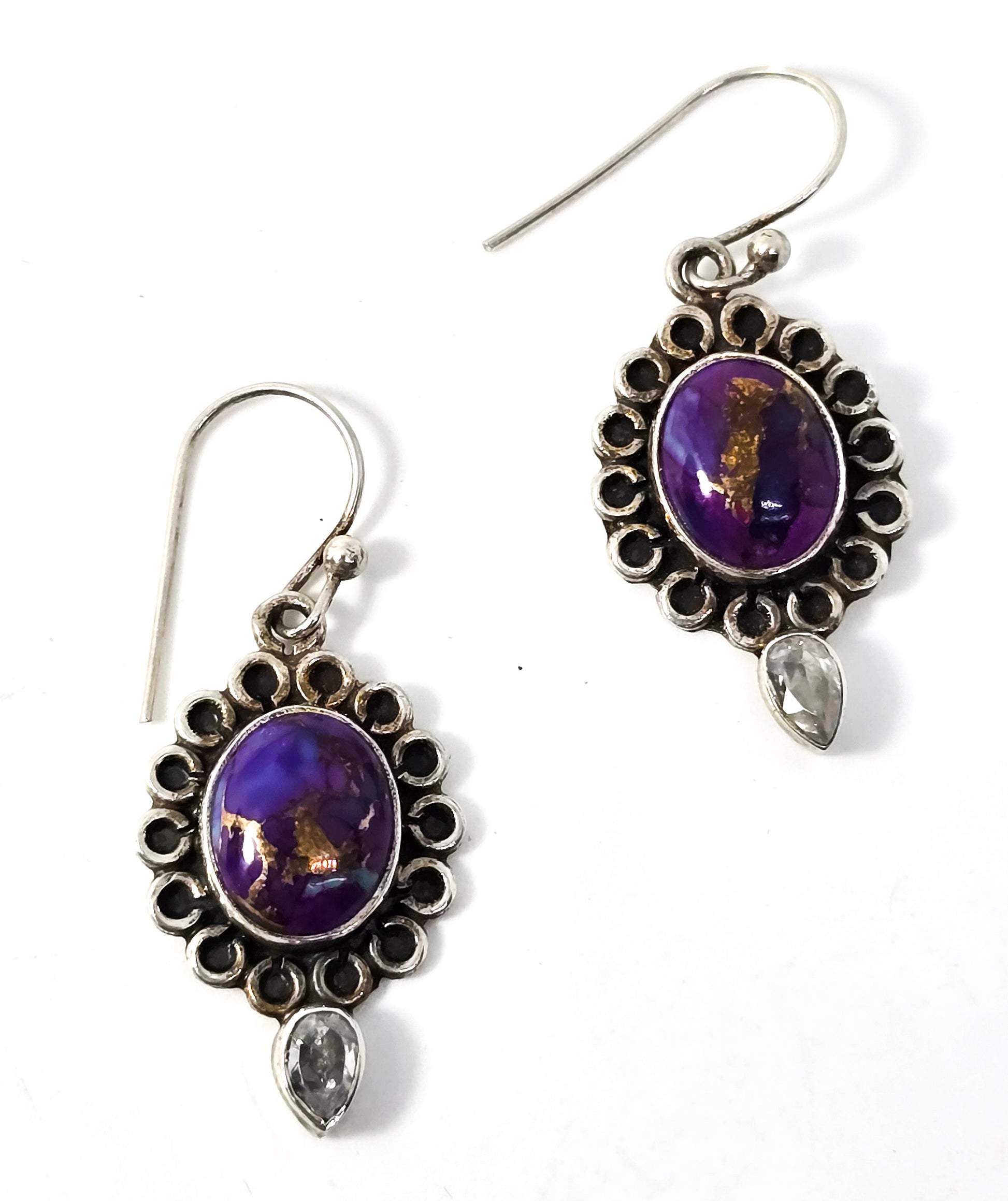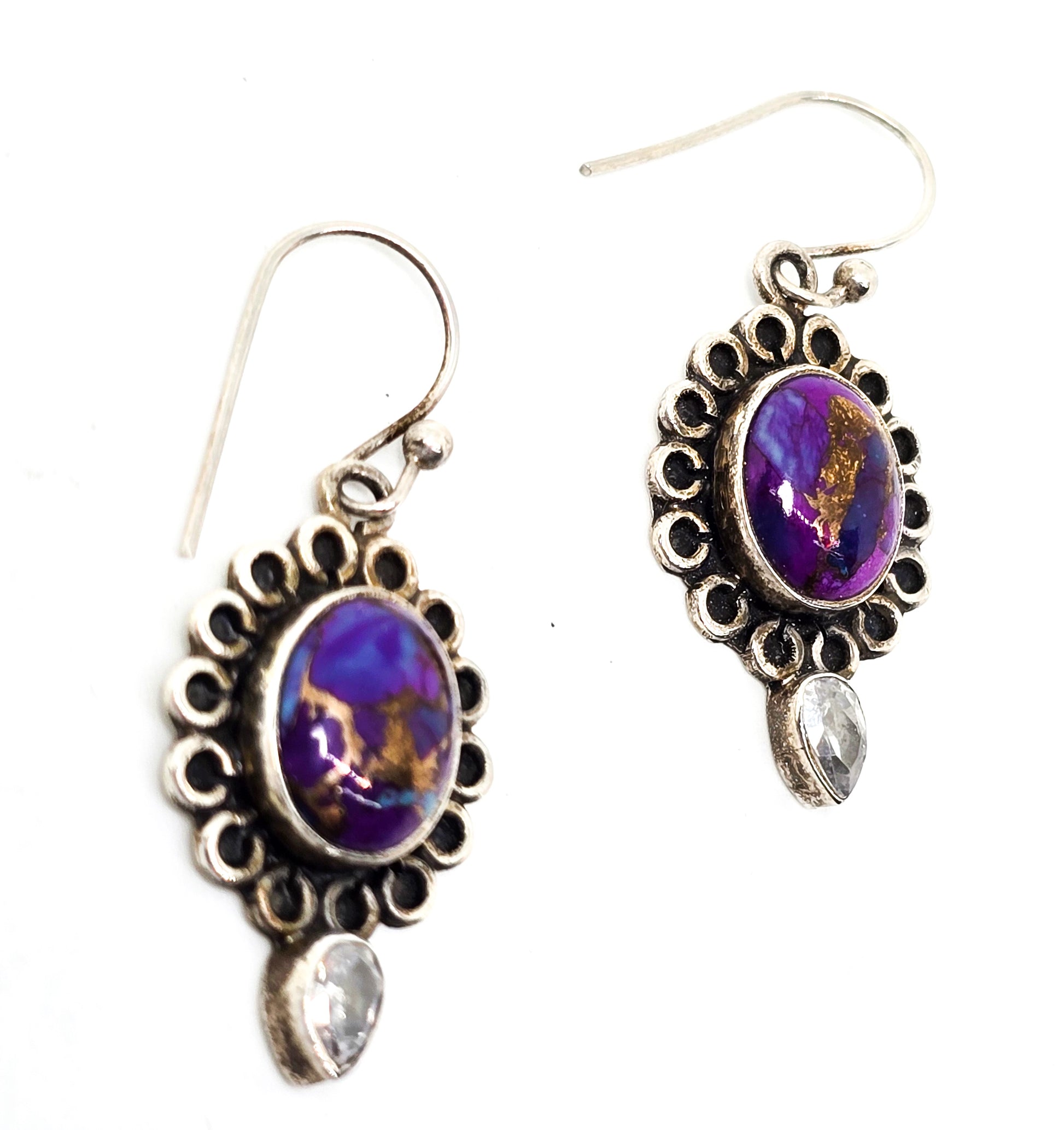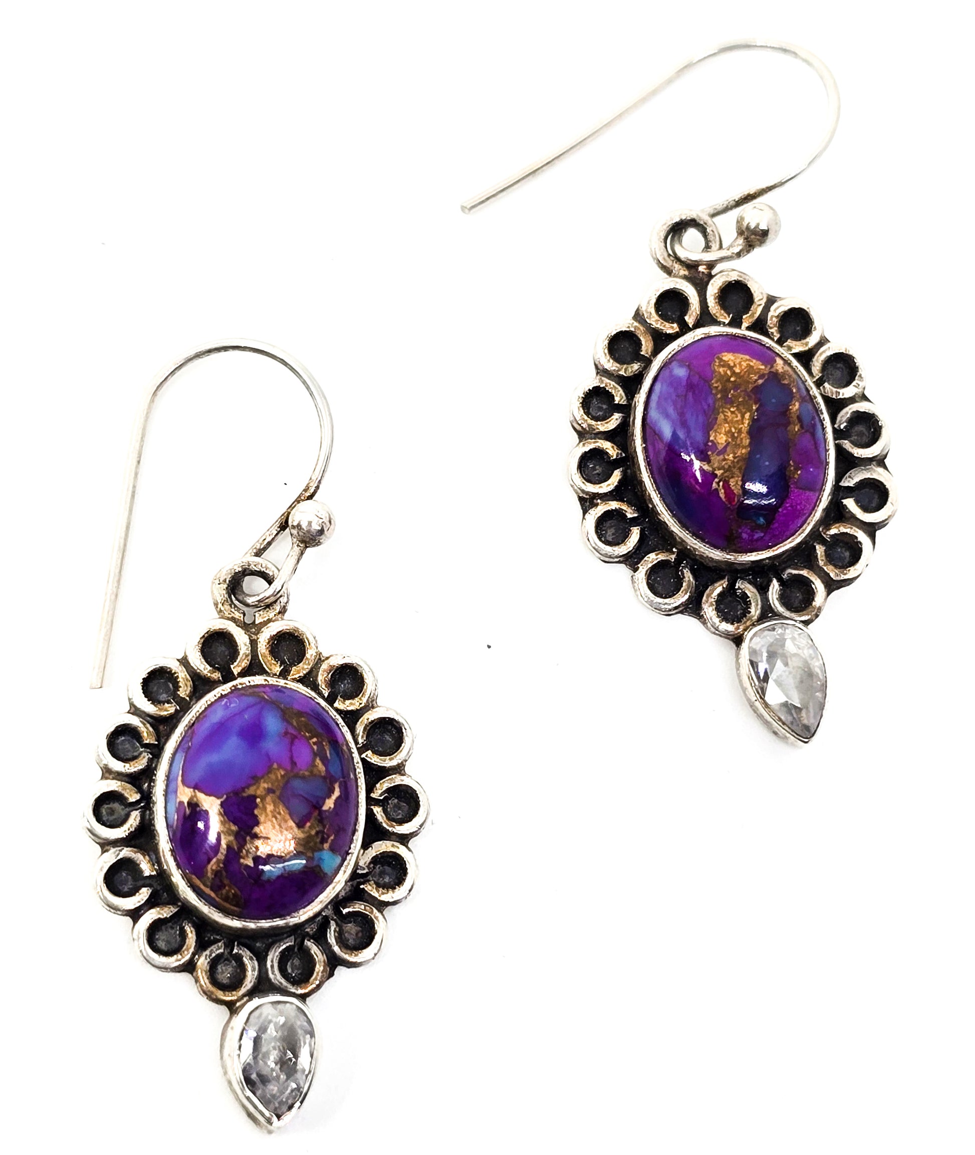 Purple copper mojave turquoise Cubic zirconia CZ gemstone sterling silver earrings . Good used condition with little to no signs of normal vintage wear. Stamped 925 on the back of the earrings.