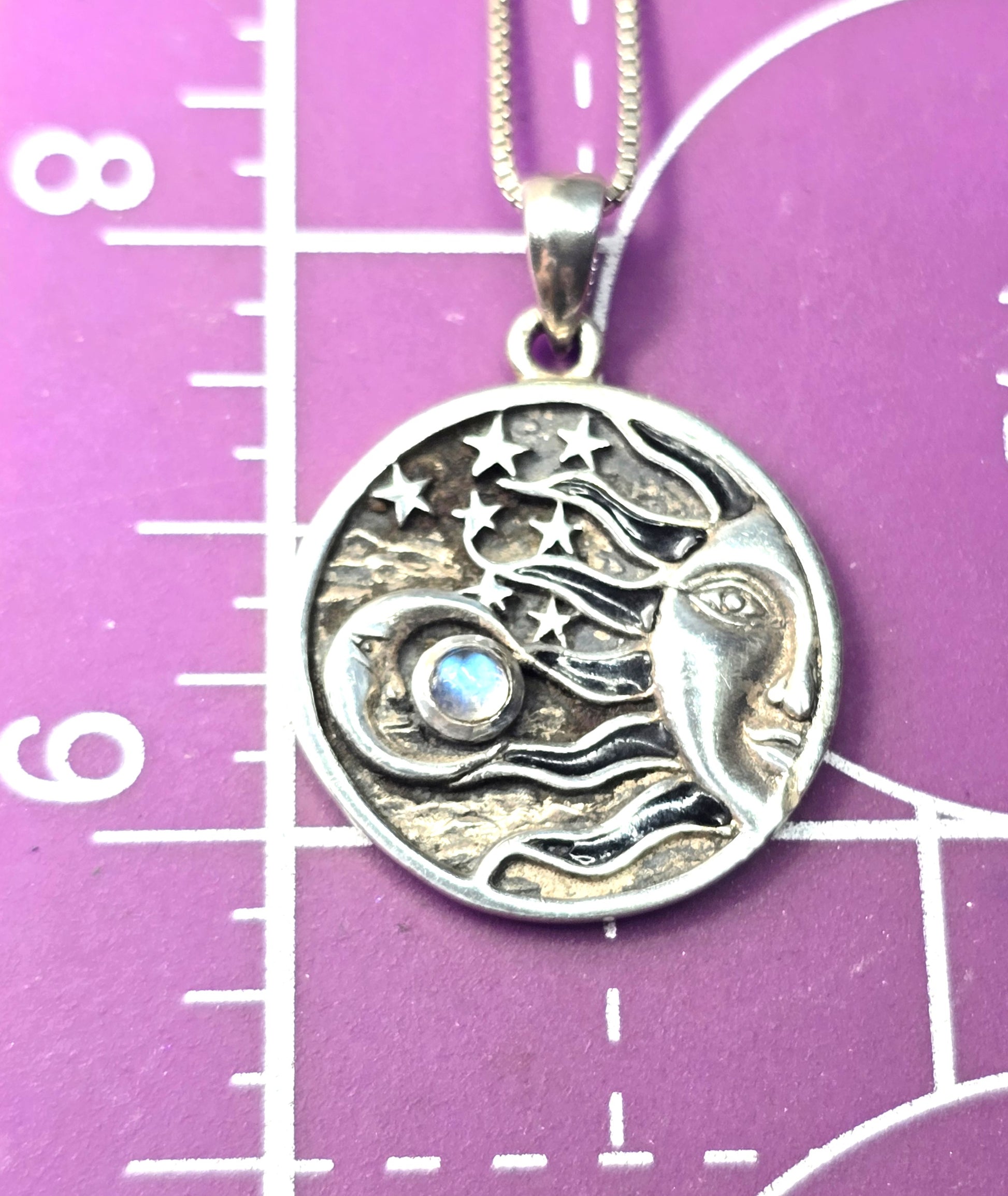 Peter stone sun moon and stars Rainbow Moonstone sterling silver pendant necklace