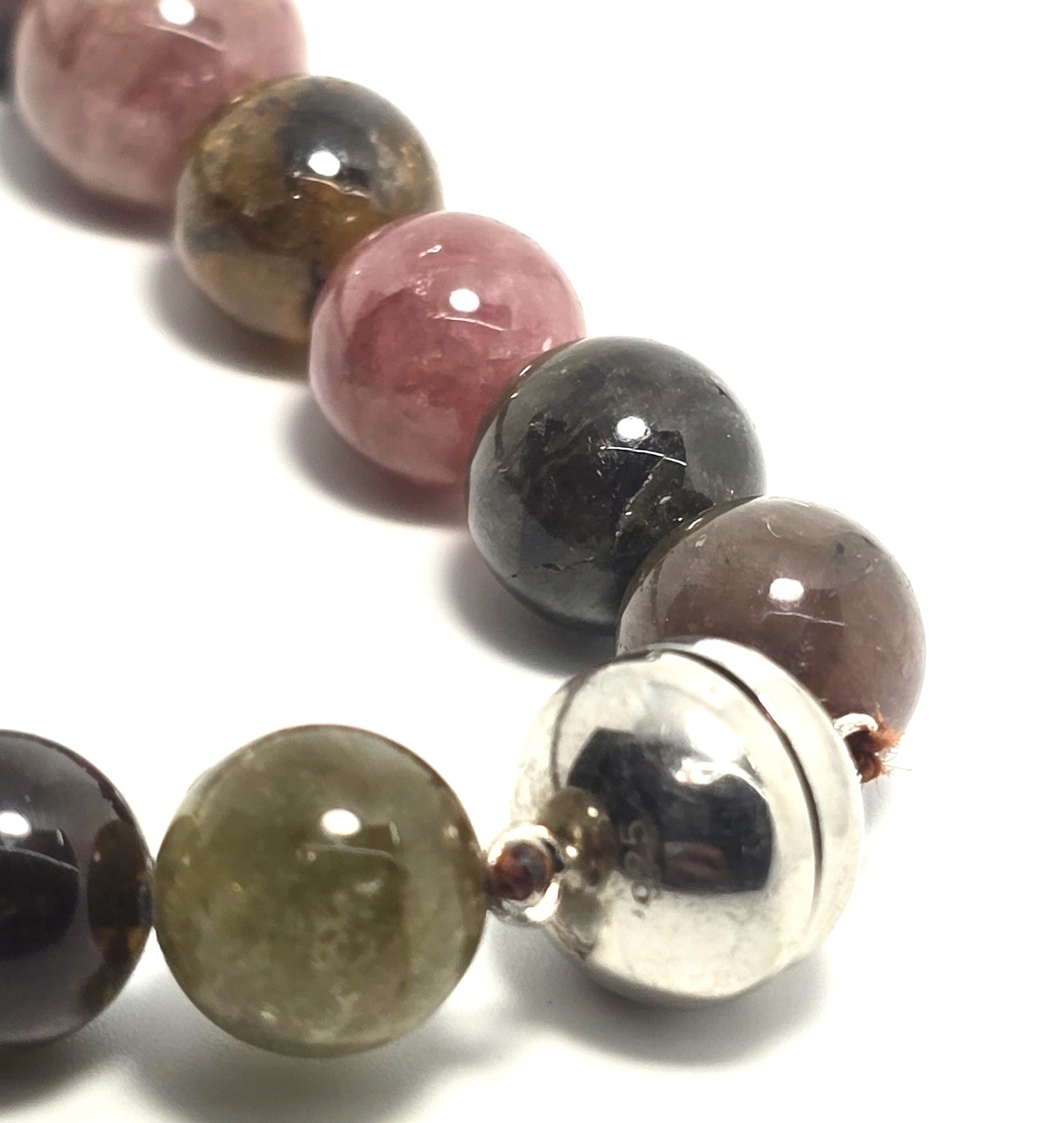 Rainbow Tourmaline graduated beaded gemstone sterling silver necklace magnetic
