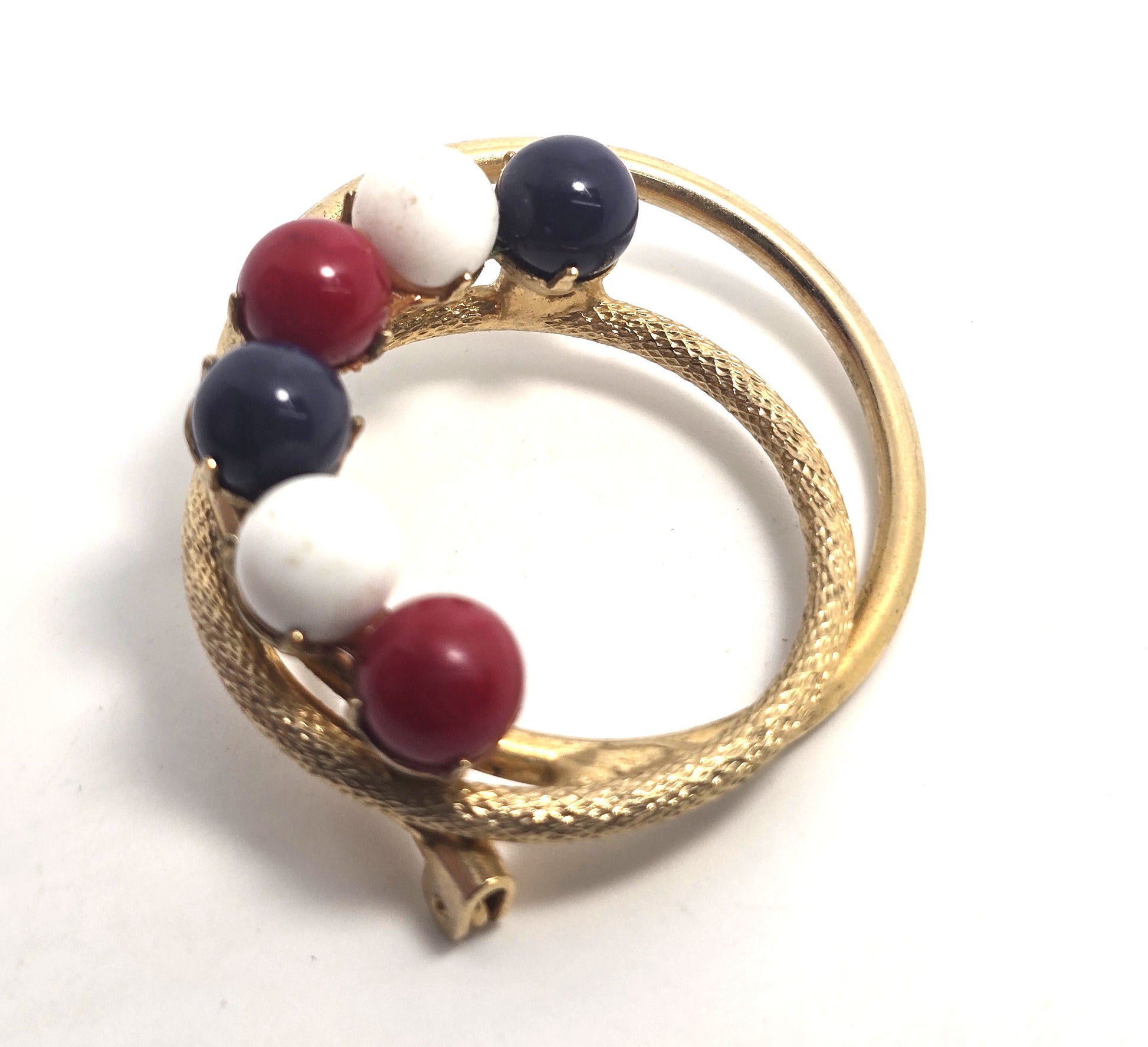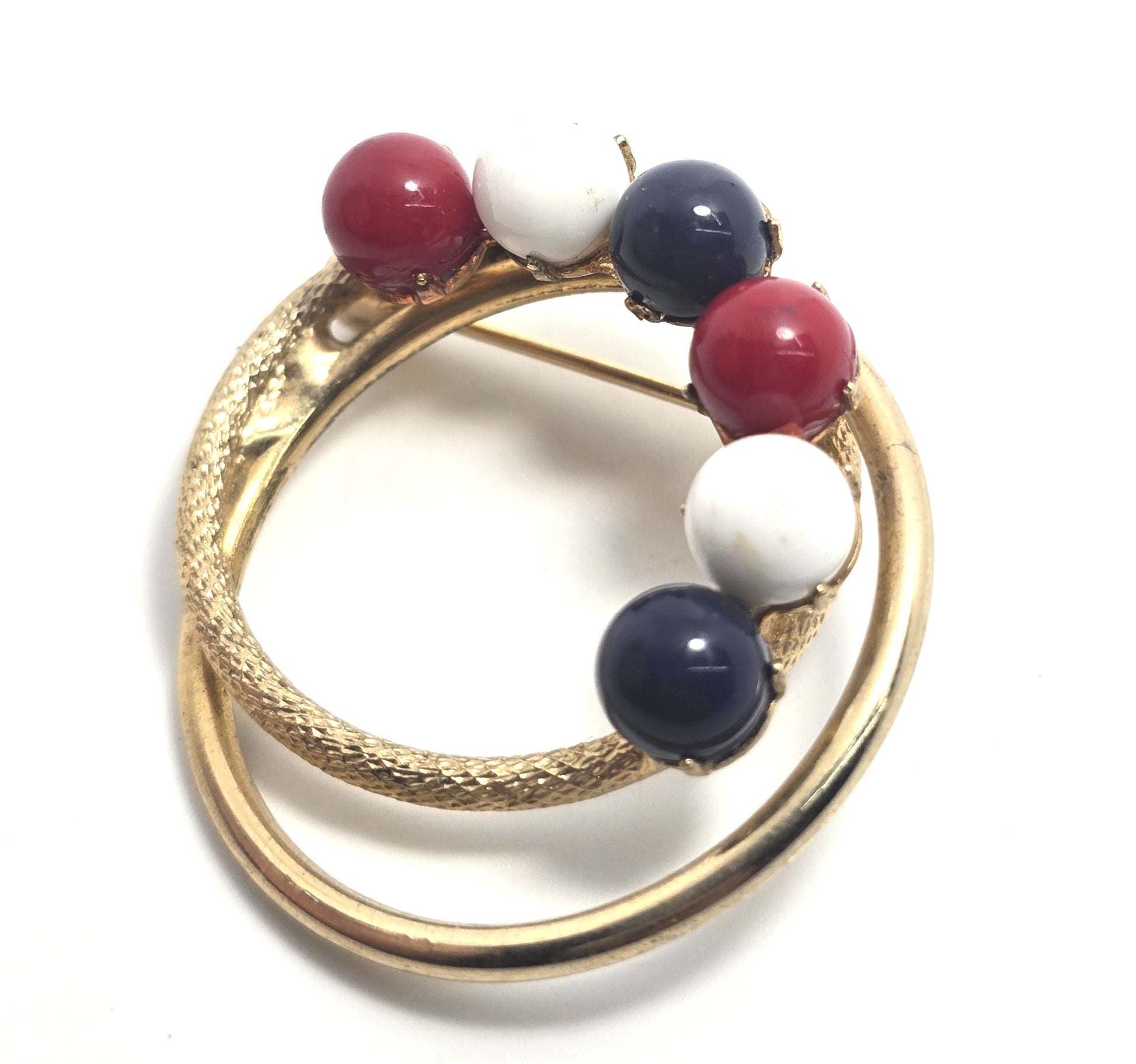 Red white and blue Patriotic Retro mid century gold toned orb brooch 4th of July