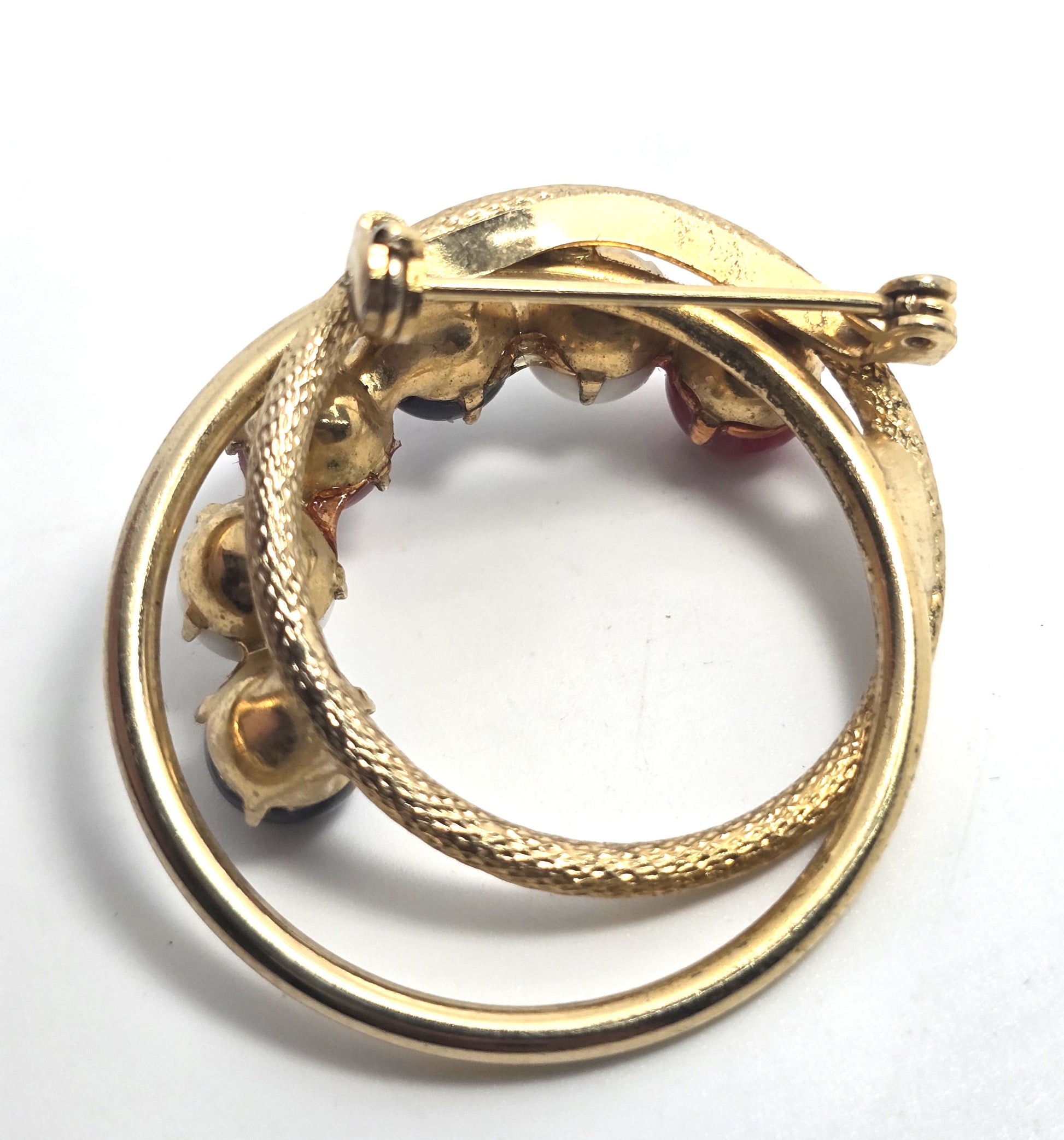 Red white and blue Patriotic Retro mid century gold toned orb brooch 4th of July . Good vintage condition with small signs of normal vintage wear.